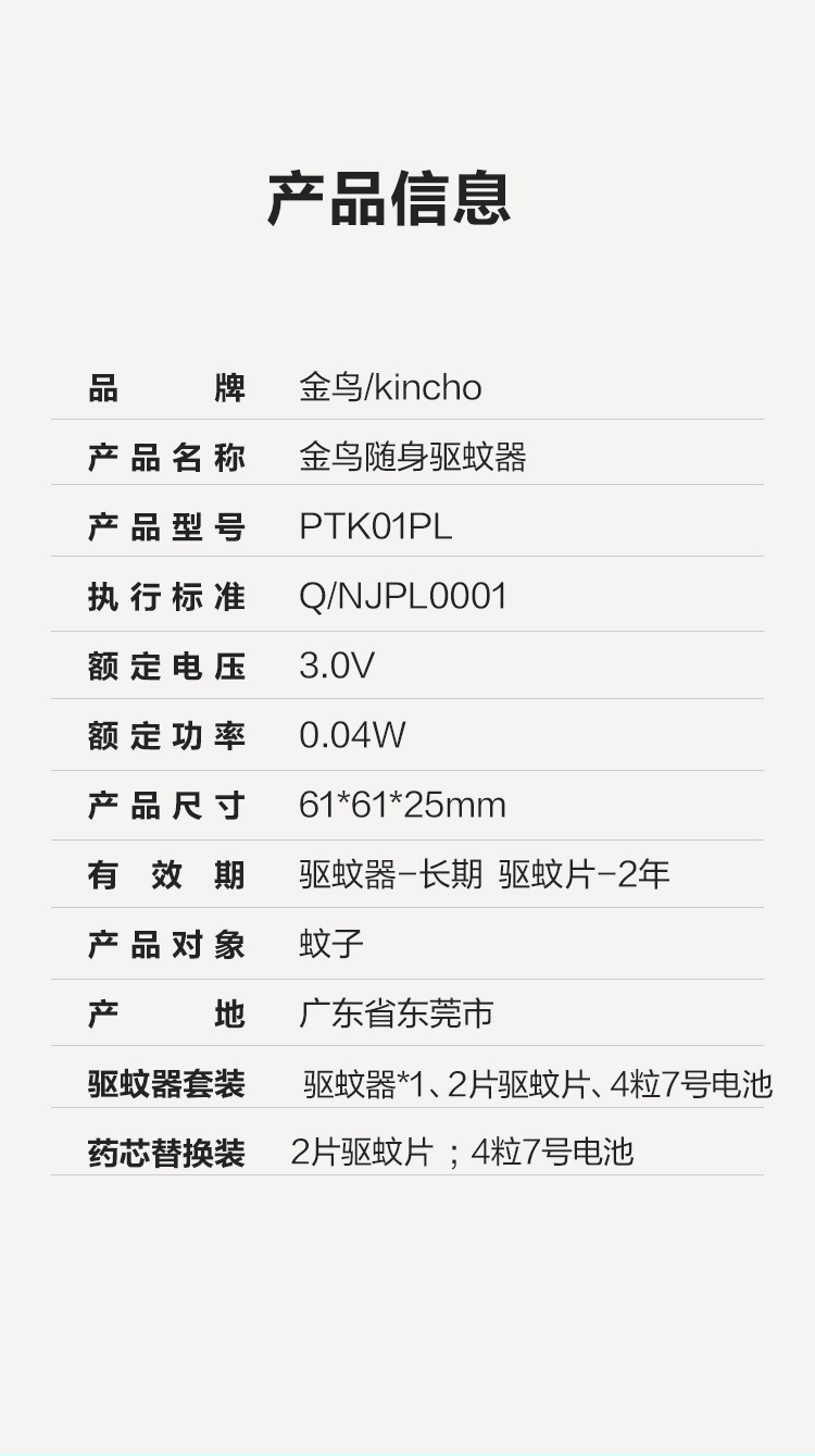 【驱蚊神器】日本金鸟便携式随身驱蚊器户外成人儿童电子蚊香露营灭蚊子神器
