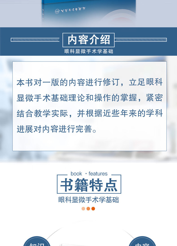 本书对第一版的内容进行修订,立足眼科显微手术基础理论和操作的掌握,紧密结合教学实际,并根据近些年来的学科进展对内容进行完善。目录:第一章 概论 第二章 眼科手术显微镜 第三章 眼科显微手术器械 第四章 手术材料 第五章 显微手术操作基本技能 第六章 眼科麻醉 第七章 术前准备和术后处理 第八章 手 术 室 第九章 常用眼科手术方法
