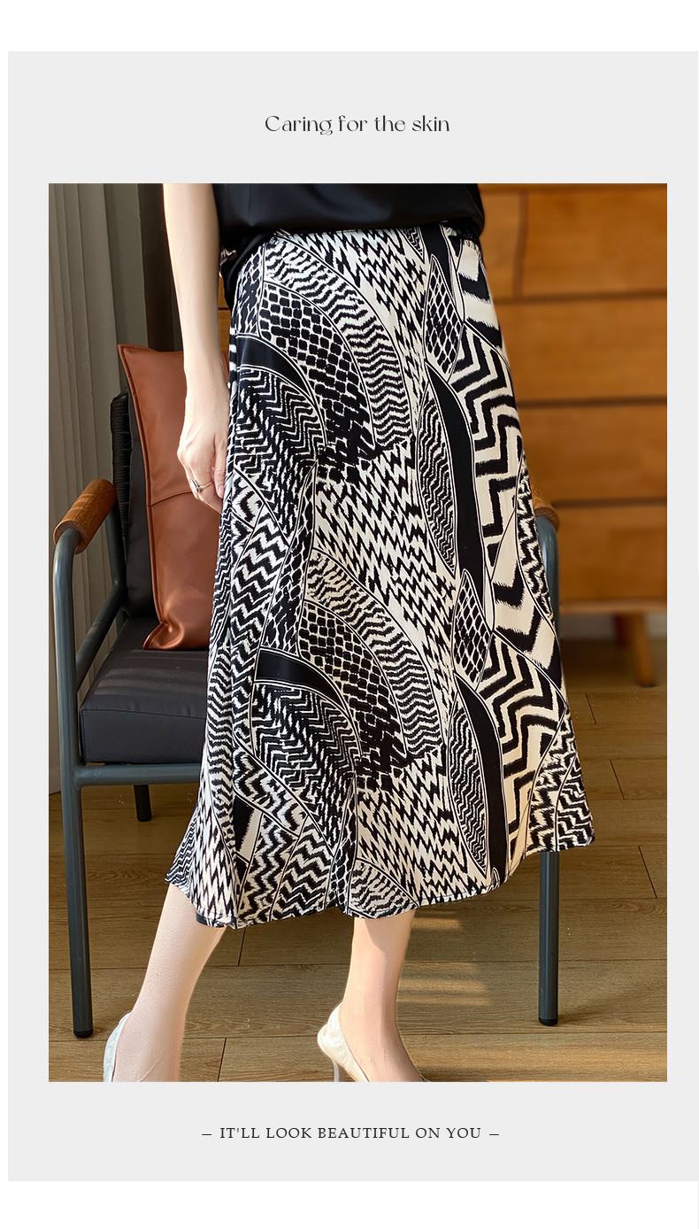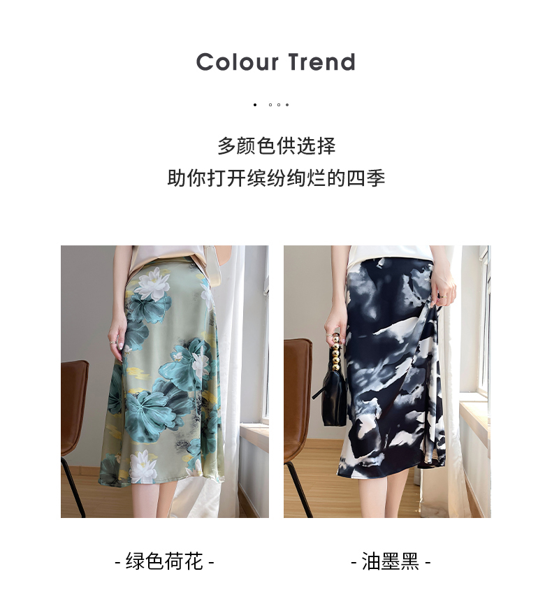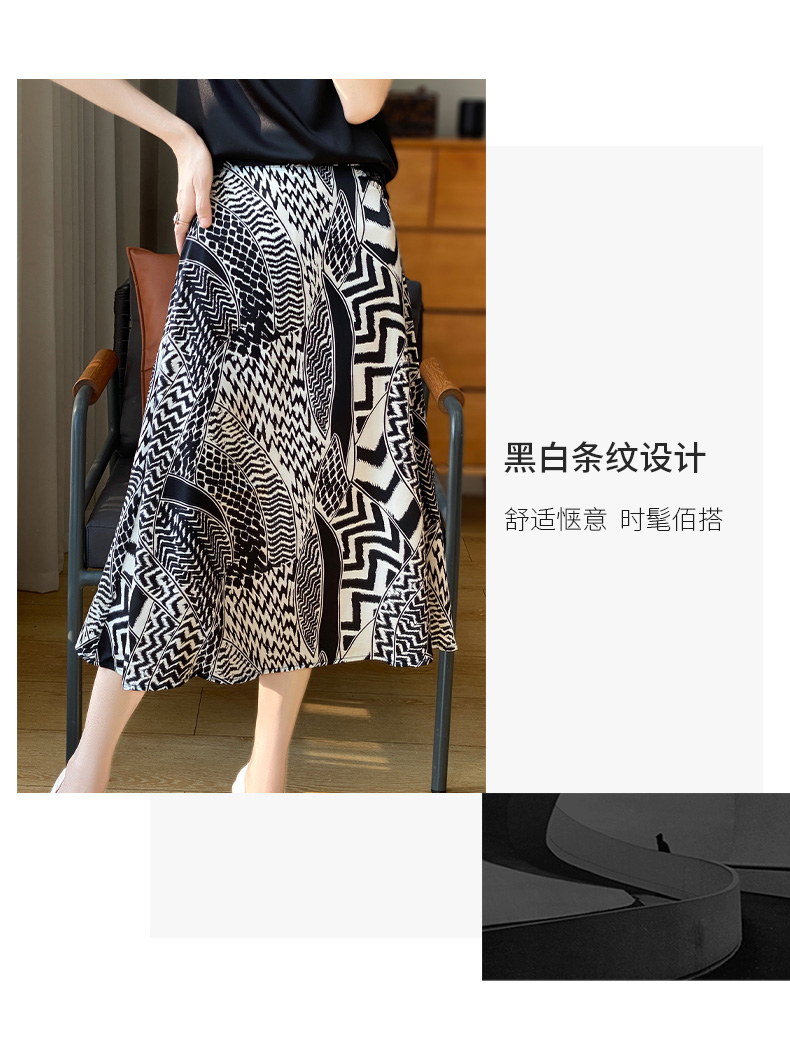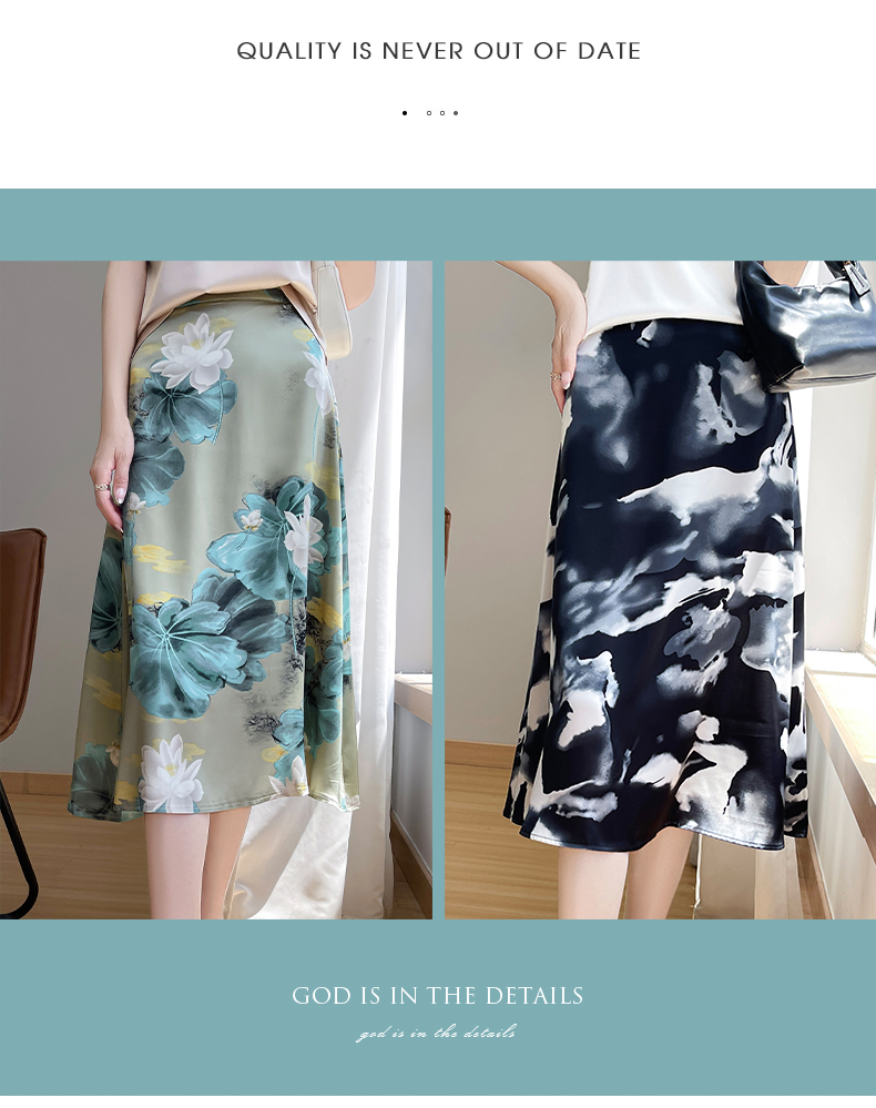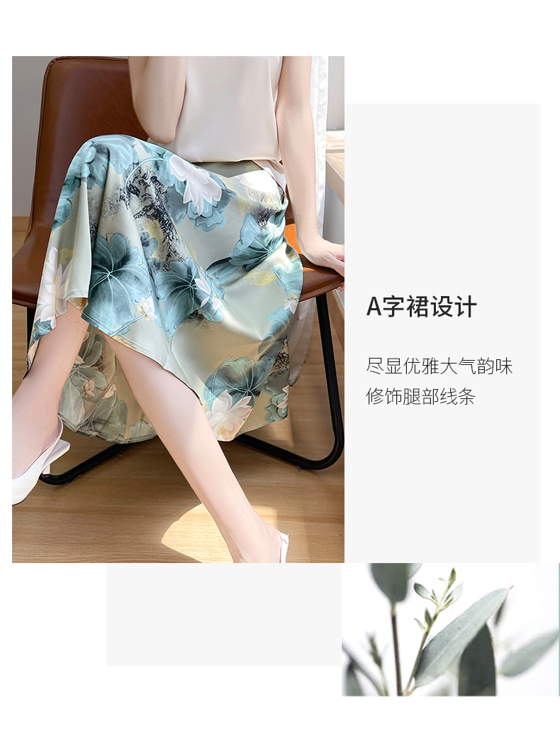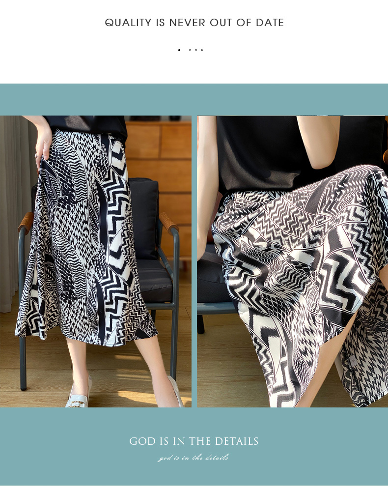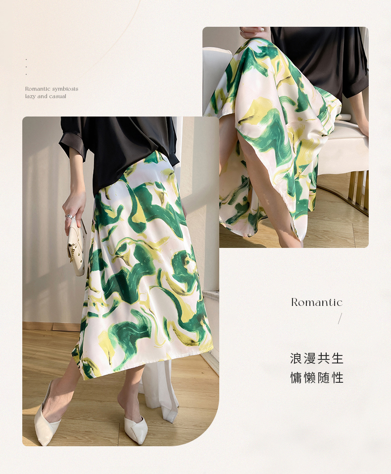 重工拼接立裁仿真丝高腰印花半身裙 RWA18