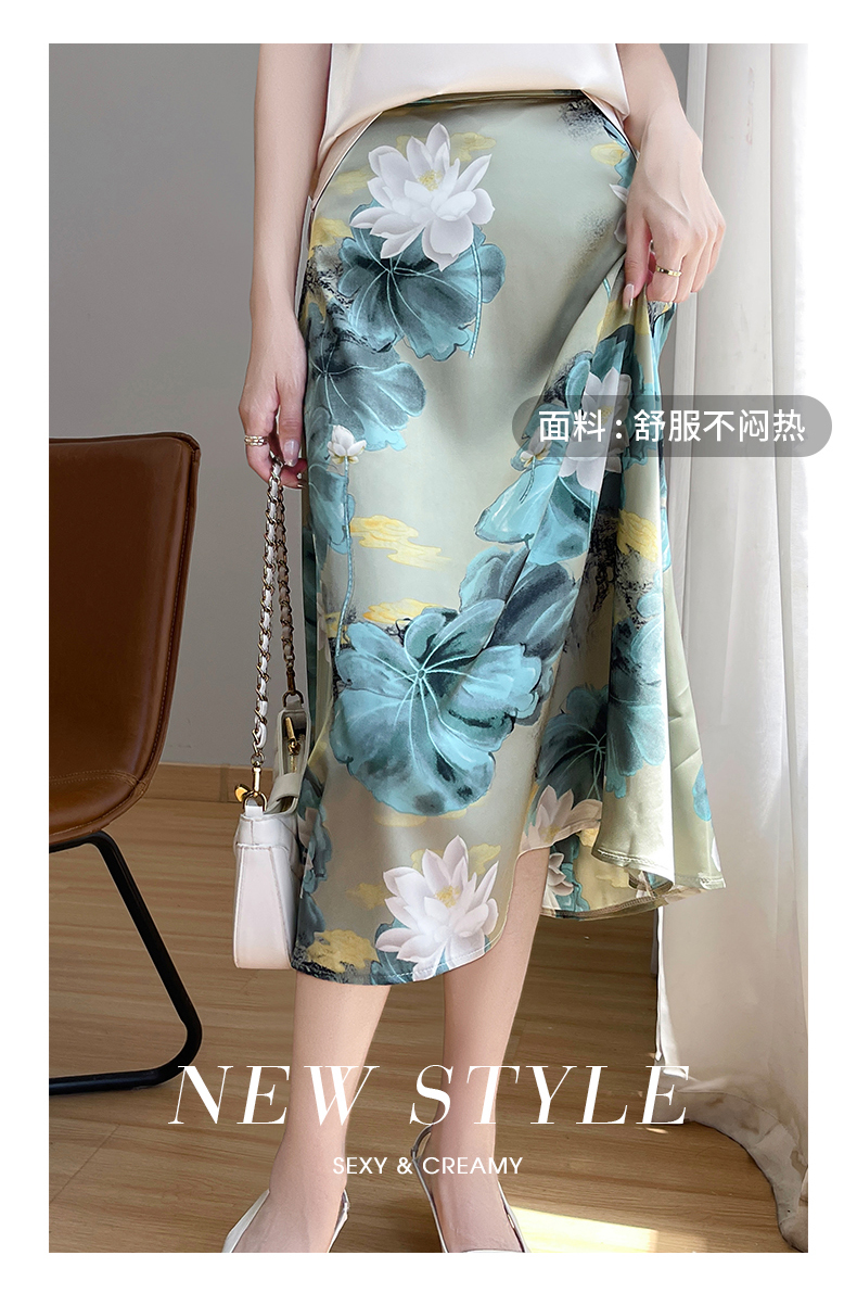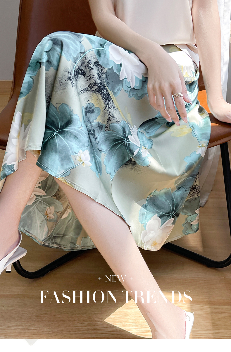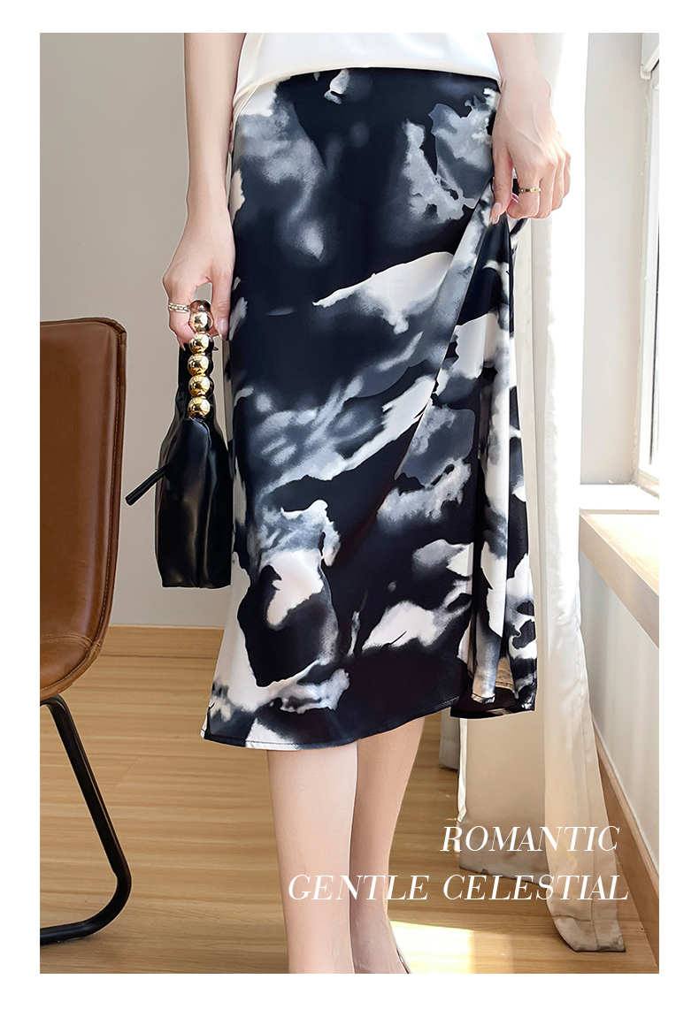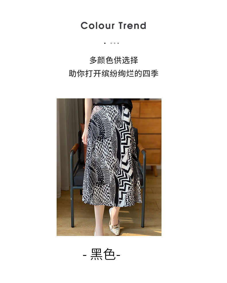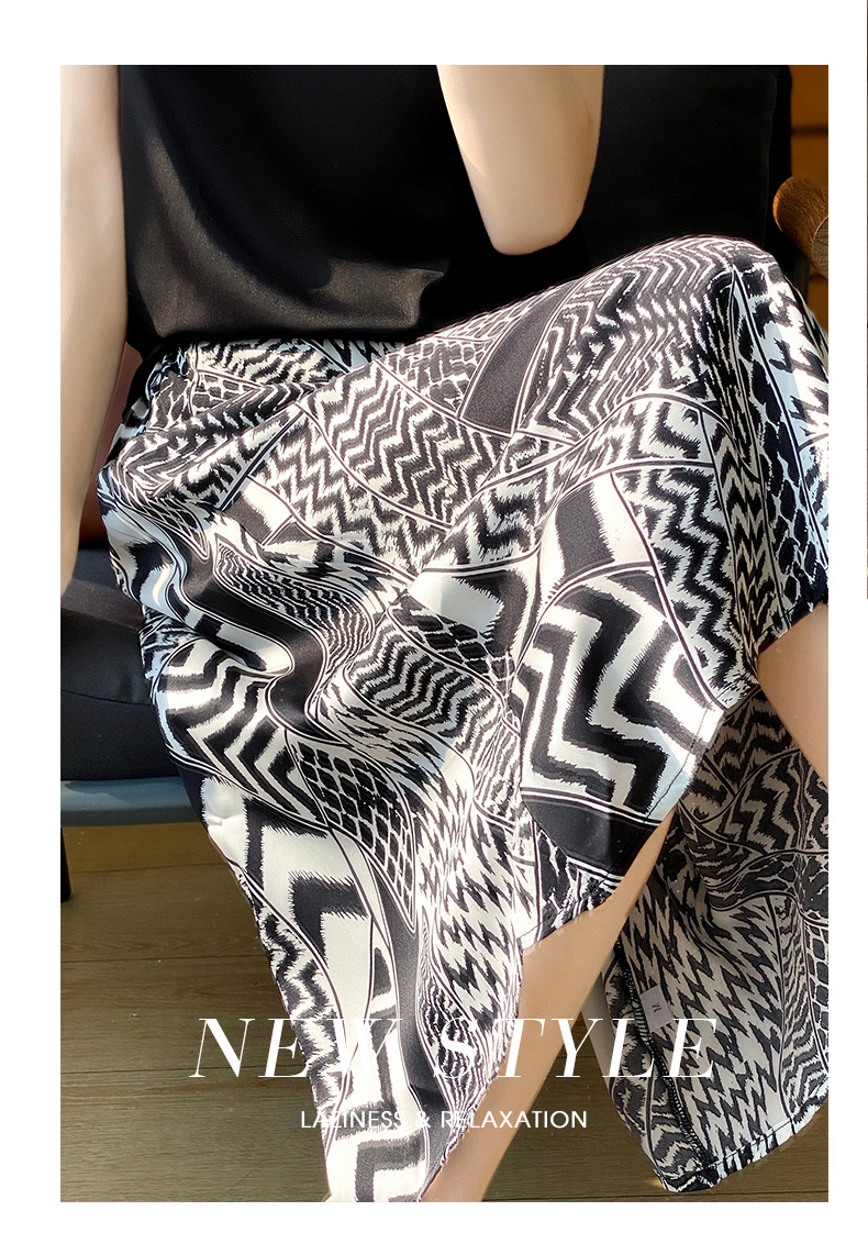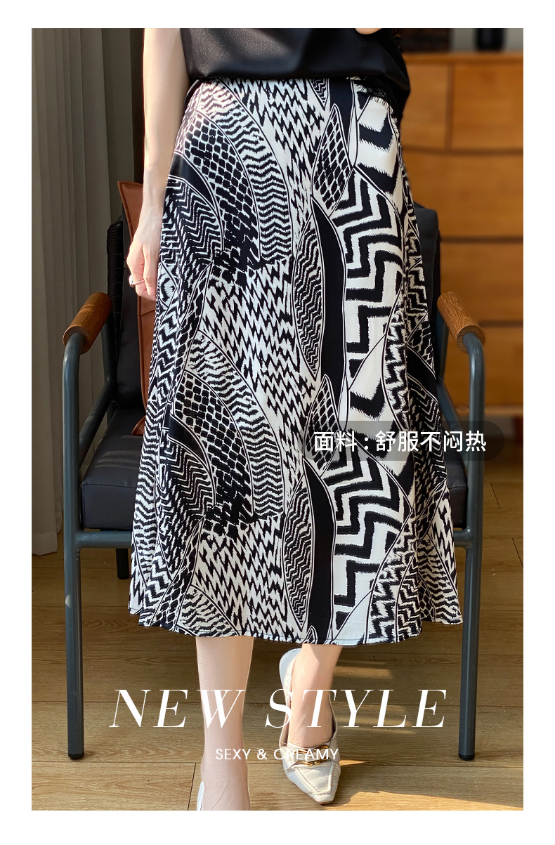 重工拼接立裁仿真丝高腰印花半身裙 RWA18