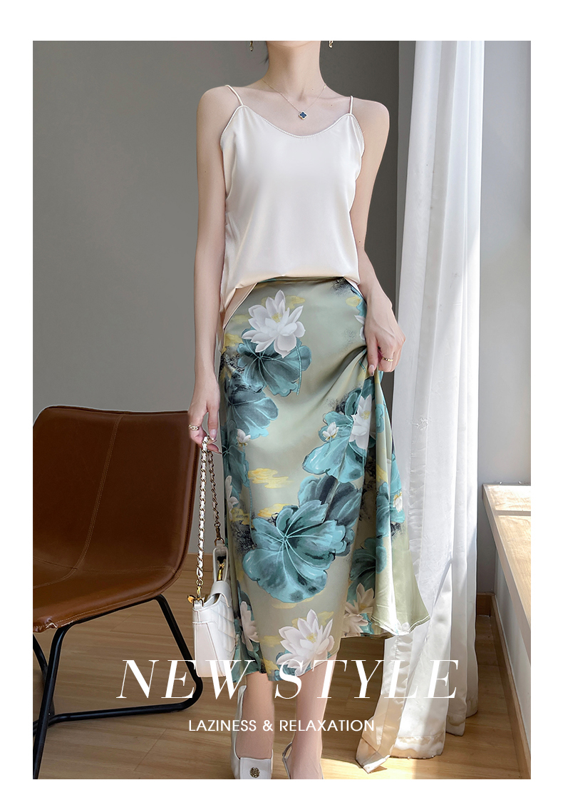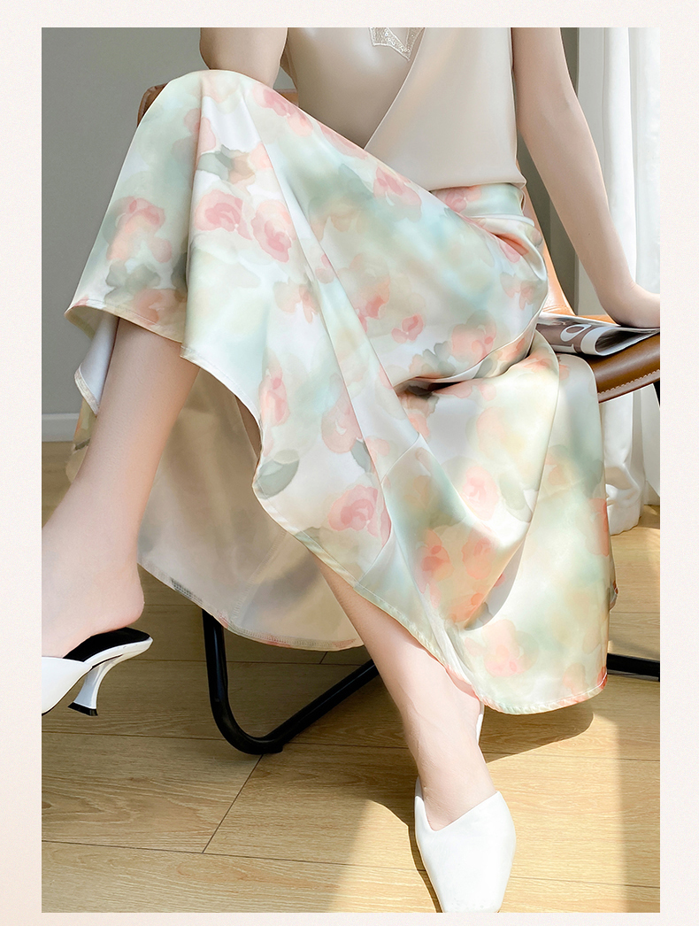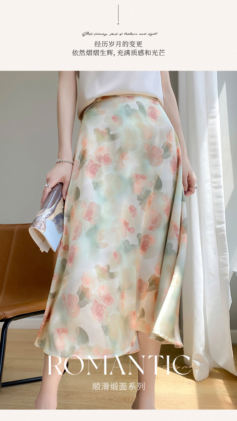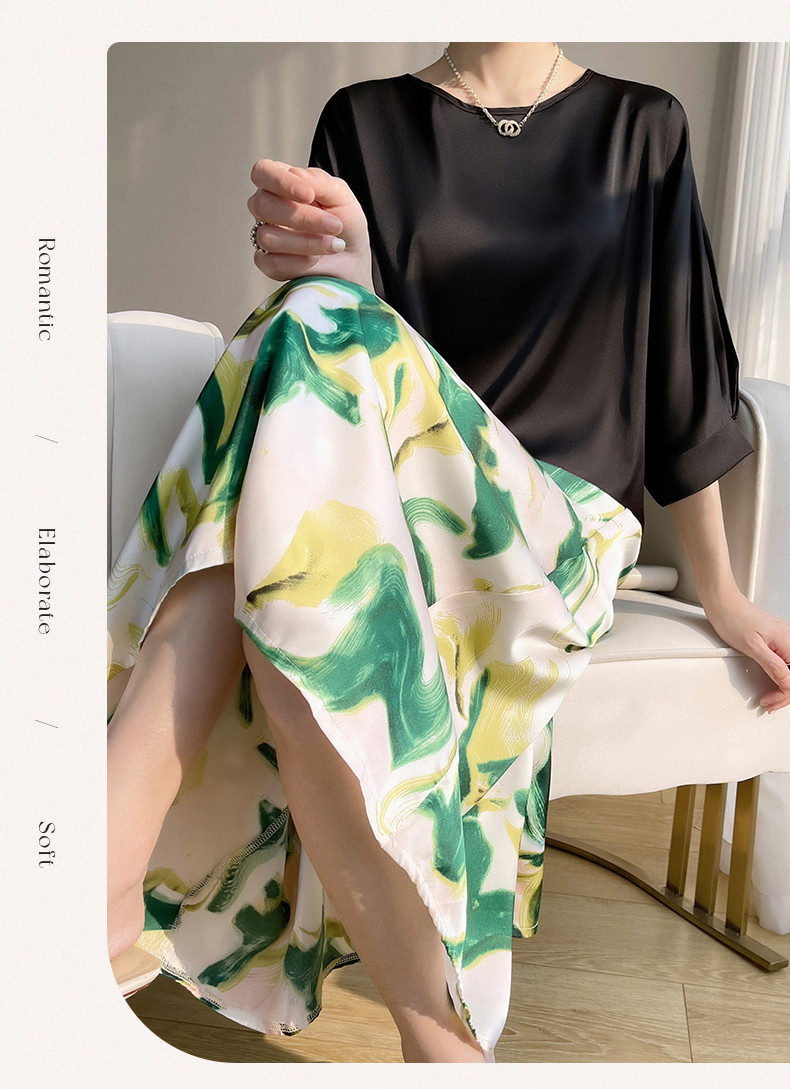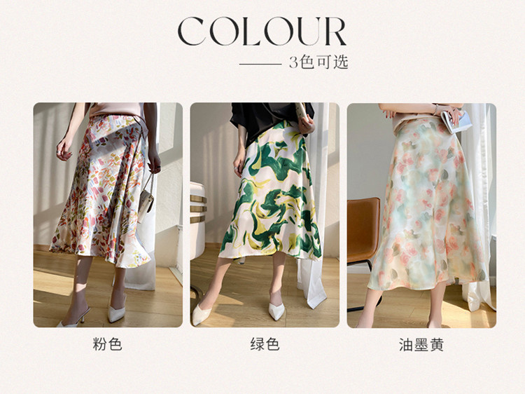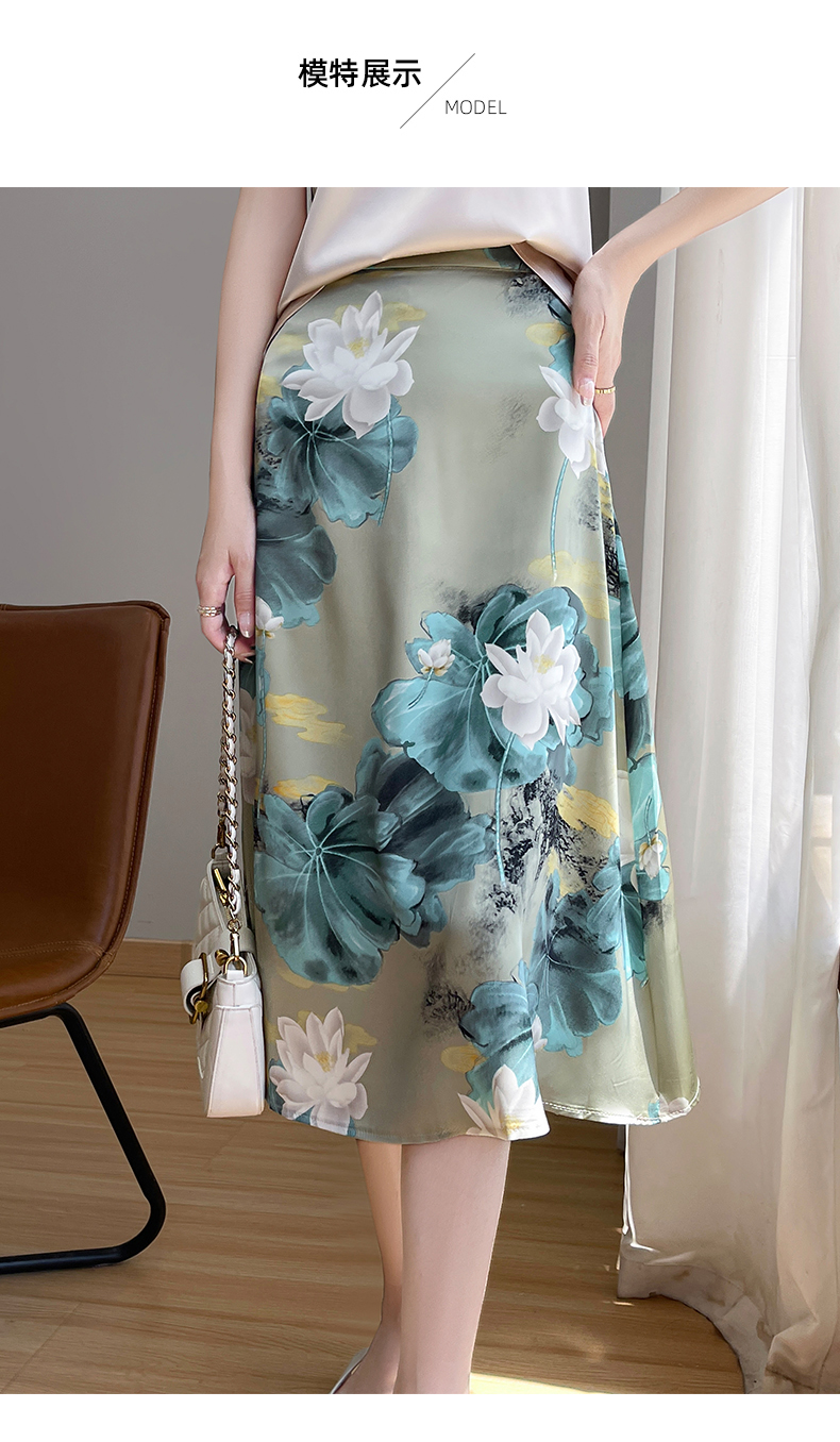 重工拼接立裁仿真丝高腰印花半身裙 RWA18