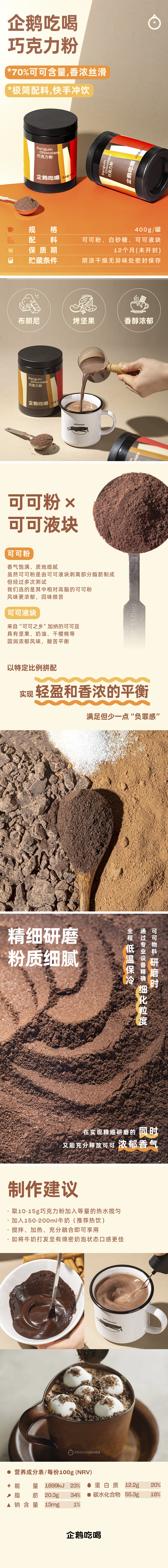 企鹅吃喝|巧克力粉400g 70%可可含量 可可粉x可可液块拼配 香浓丝滑细腻