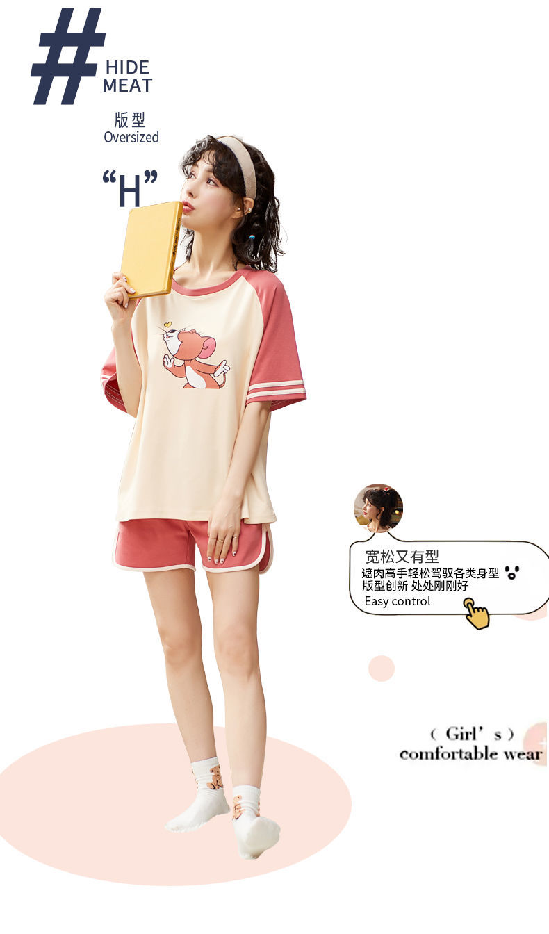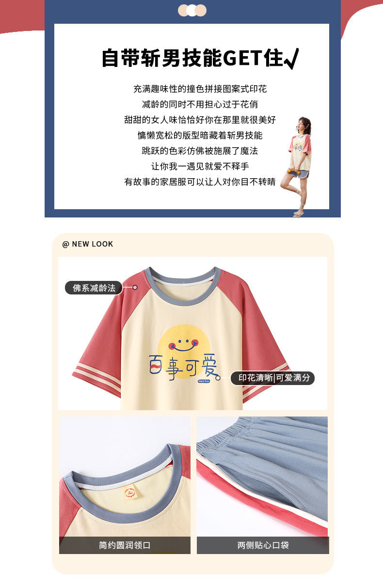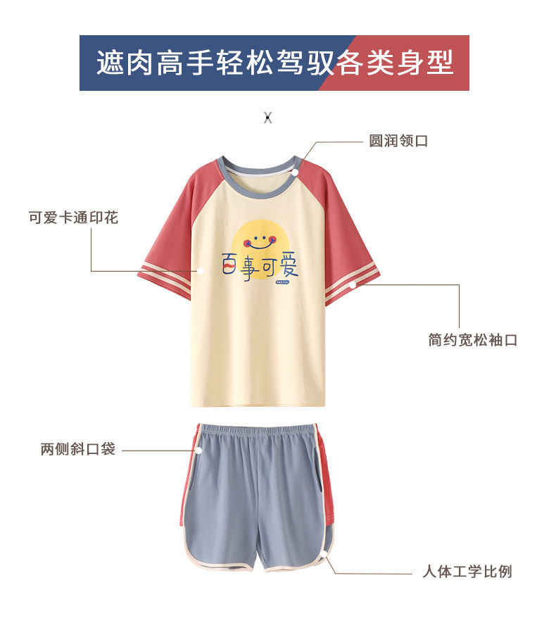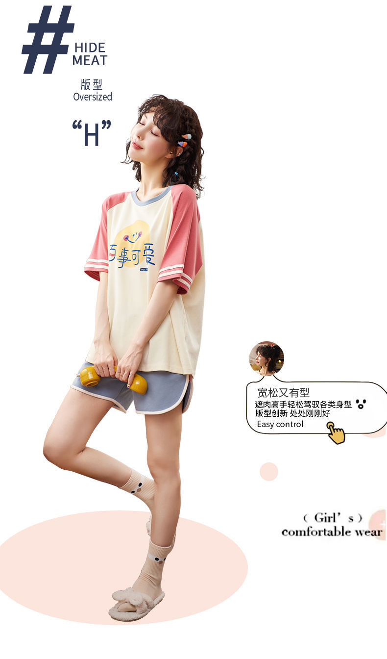 【舒适到像裸穿!可外穿的家居服】柔软仿若无感,穿上不想脱下来!亲肤不闷热,宽松有弹力,时尚百搭睡衣短袖短裤两件套装