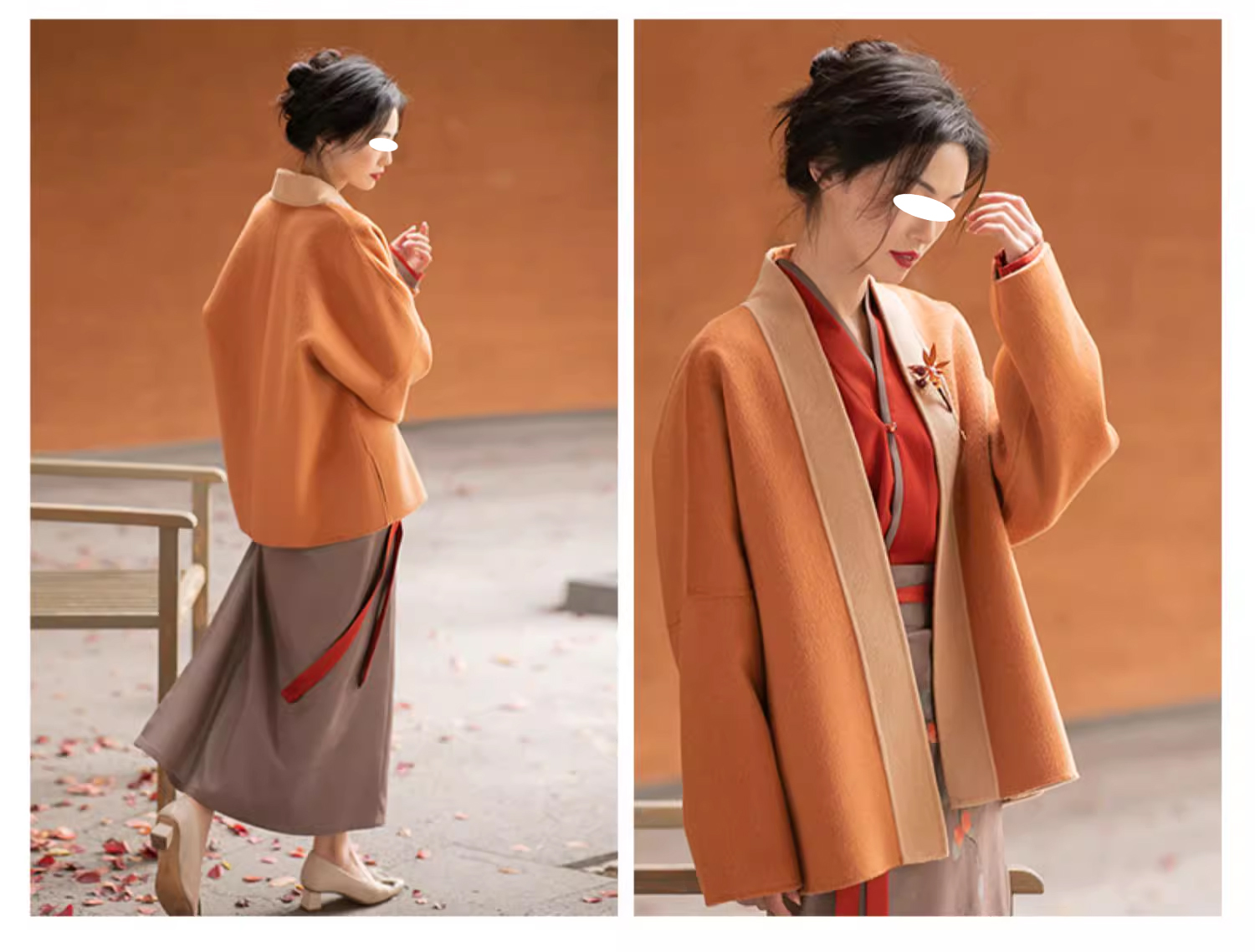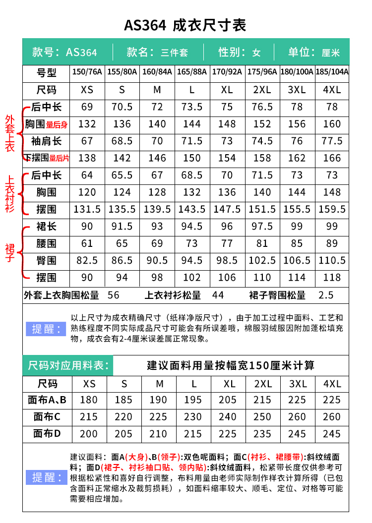 裁缝学苑AS364羊毛双面呢交领上衣外套印花裙三件套装纸样女装样板图纸