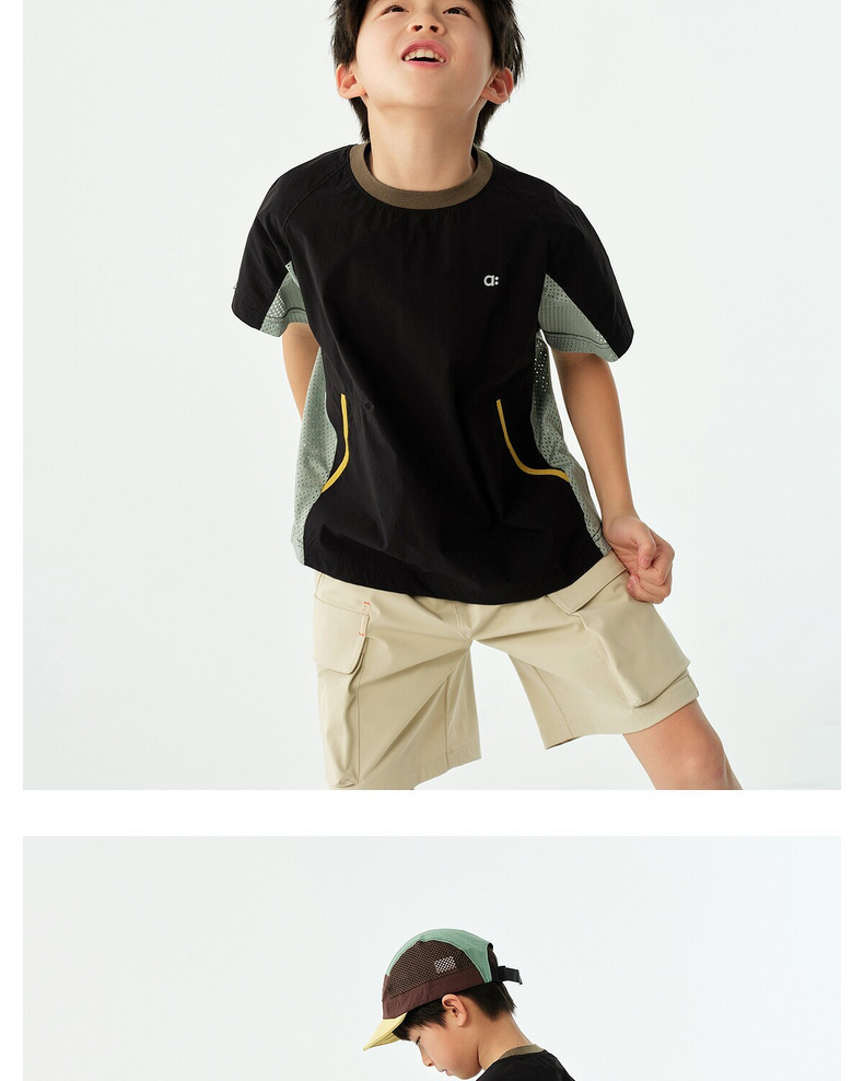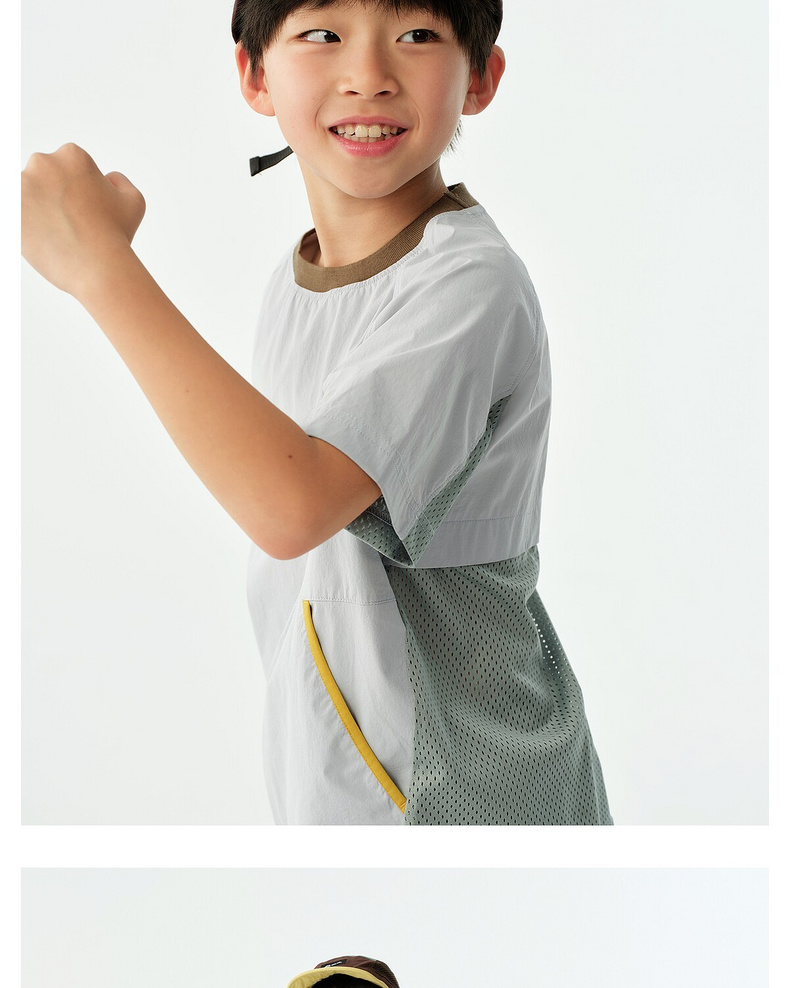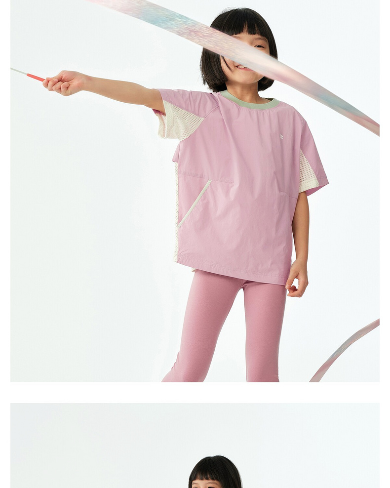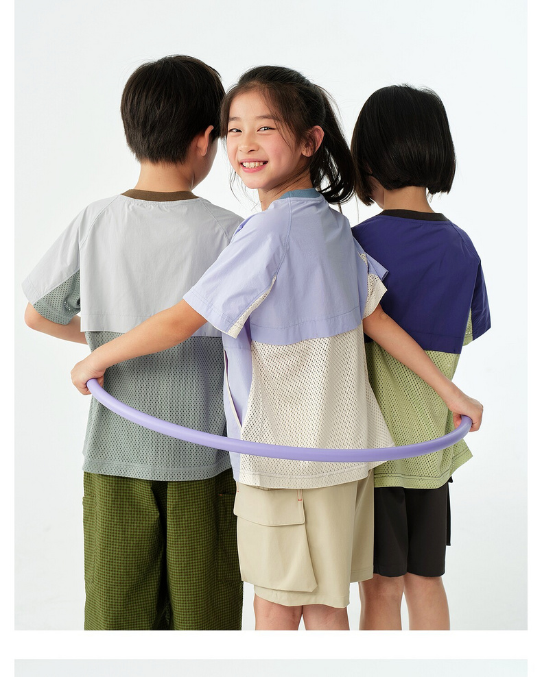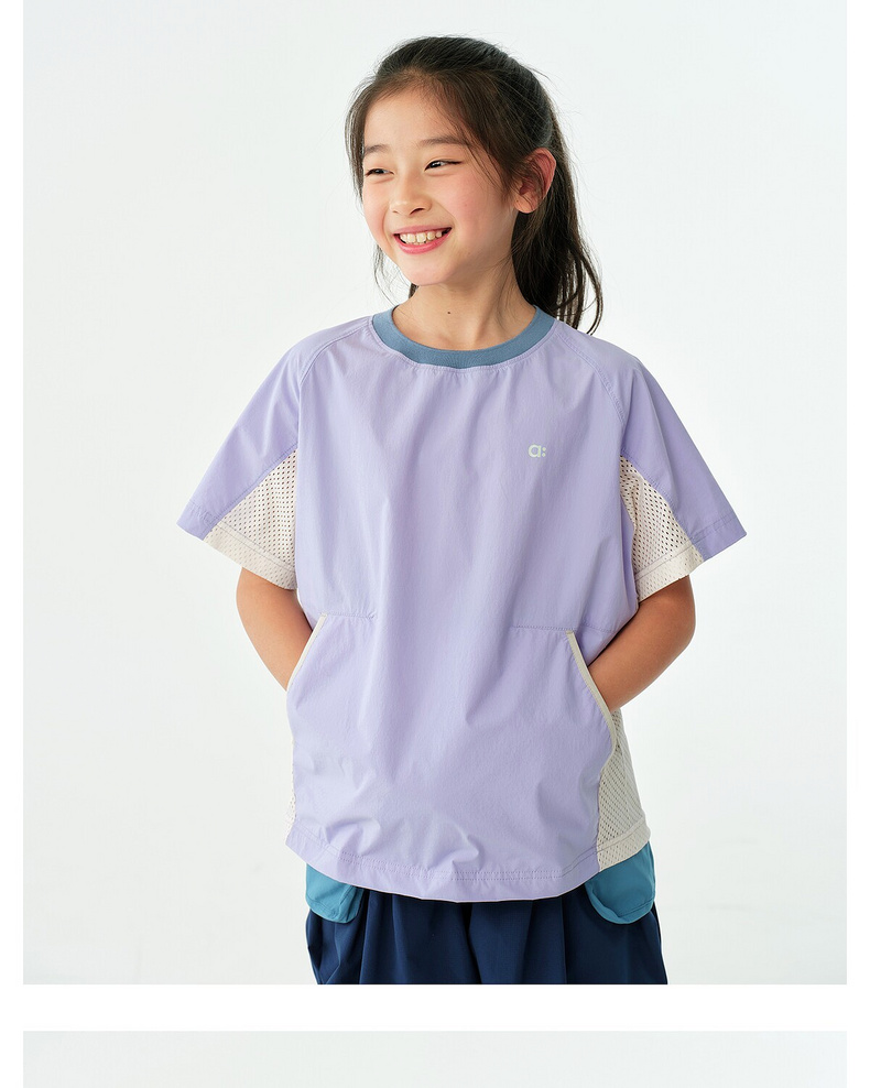allblu幼岚【拼接网眼T】儿童短袖T恤26春新款上衣女童男童干爽