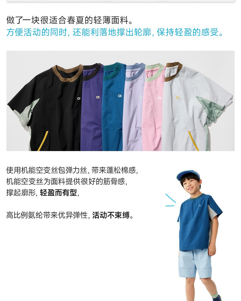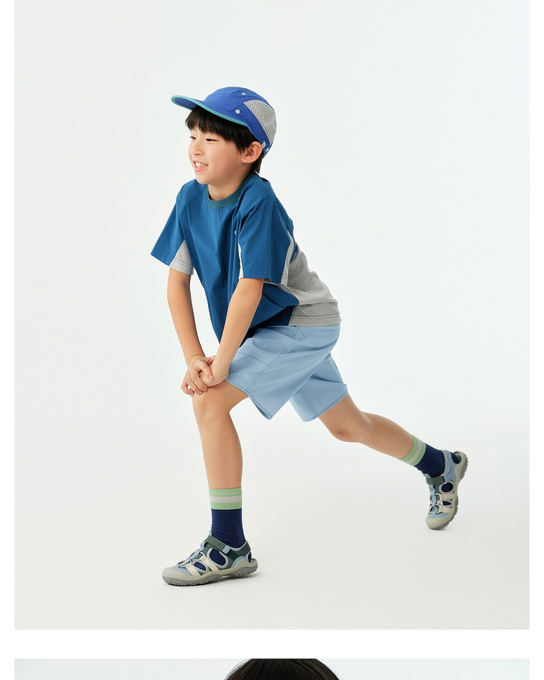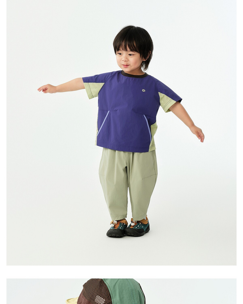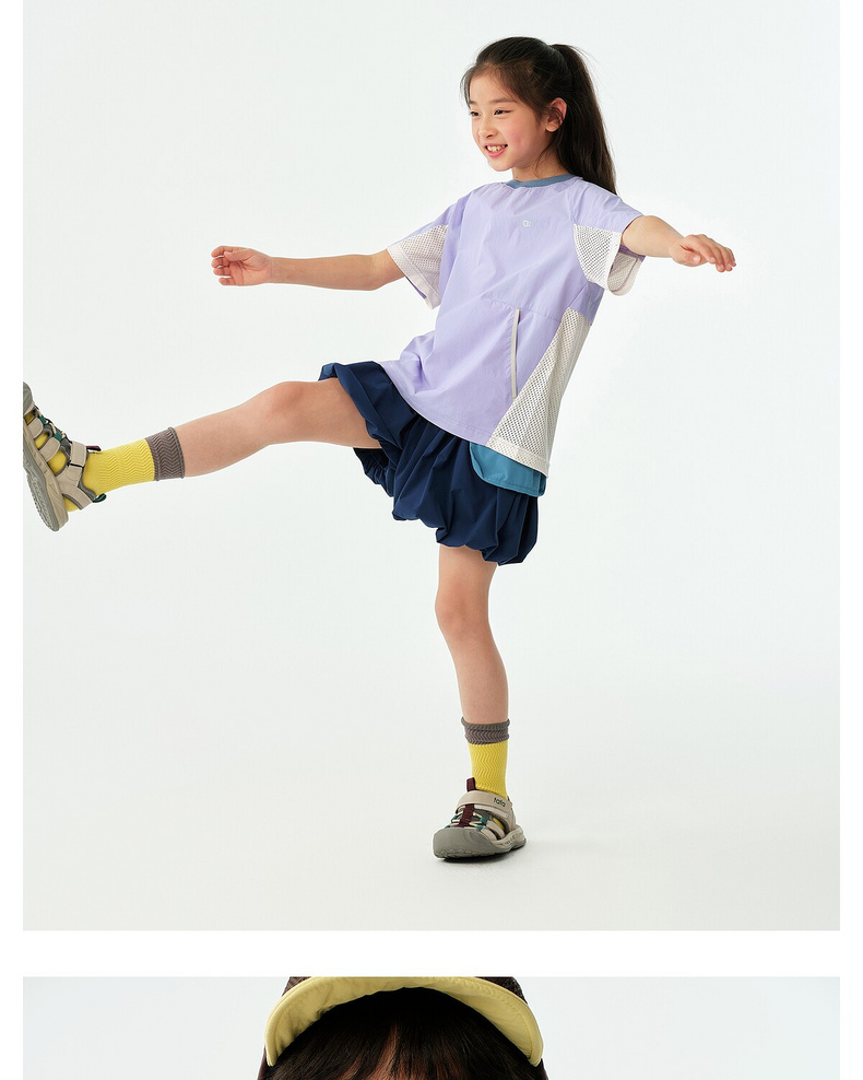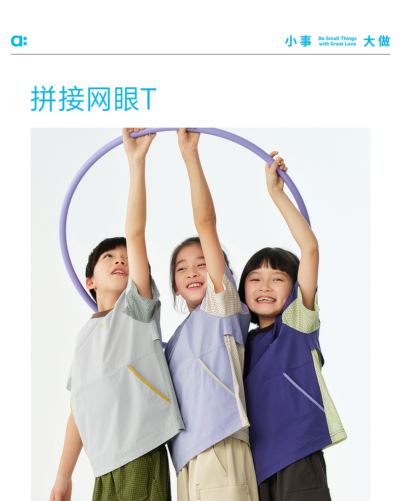 allblu幼岚【拼接网眼T】儿童短袖T恤26春新款上衣女童男童干爽