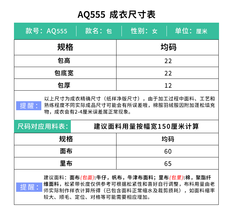 裁缝学苑AQ555双肩包帆布包纸样女装旅行背包牛津布斜挎通勤小胸包样板