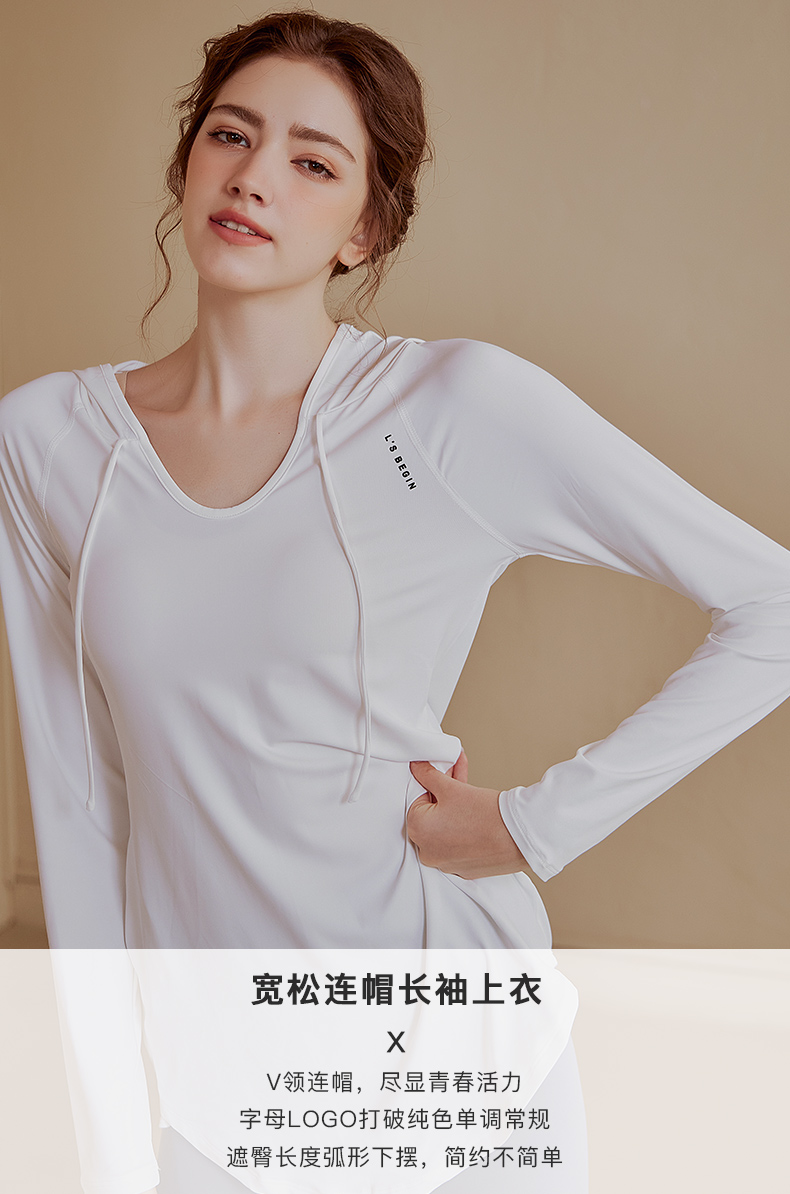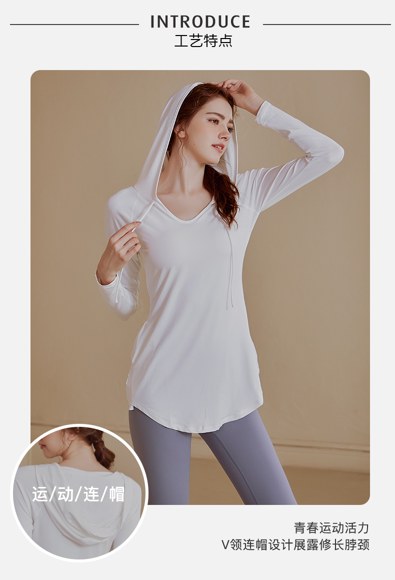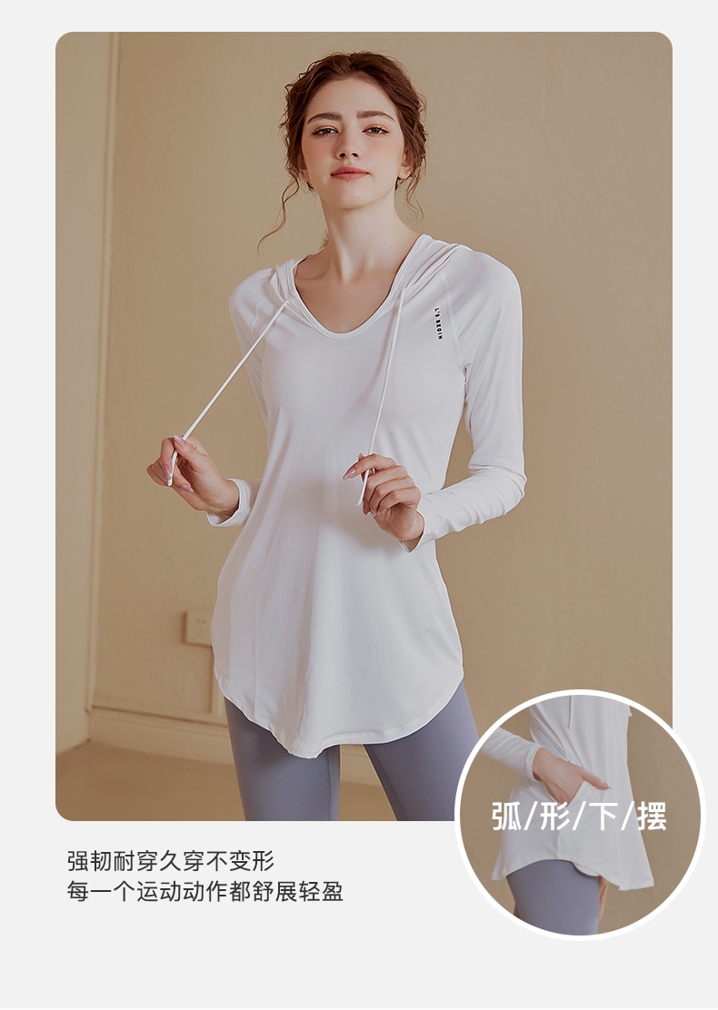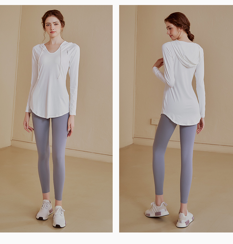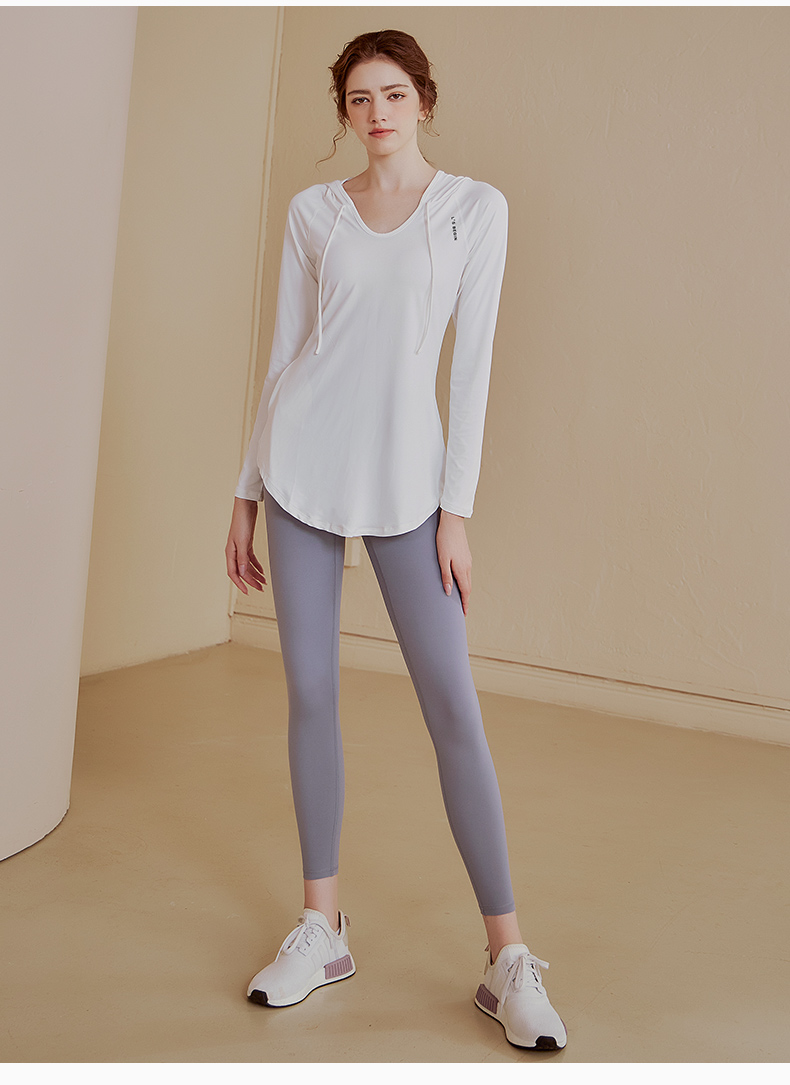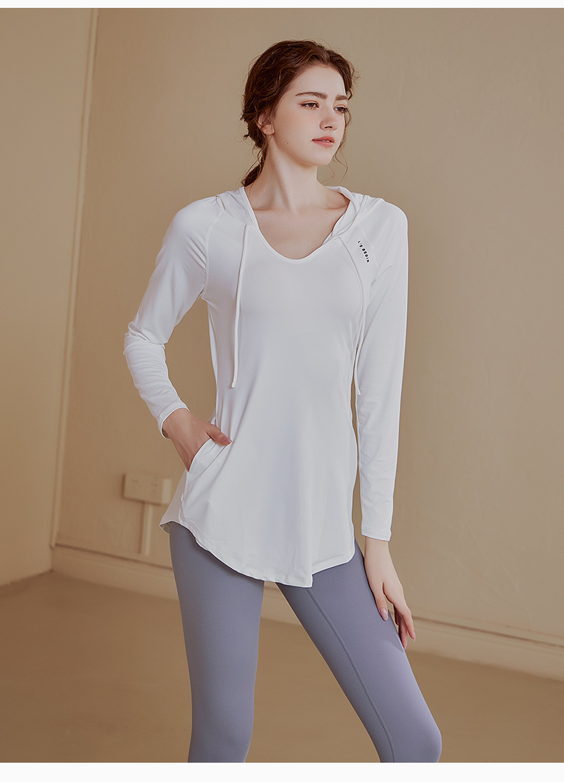 【新品秒杀】宽松连帽长袖瑜伽服女休闲运动上衣中长款上衣健身衣卫衣KML 000 BT-ARWT382