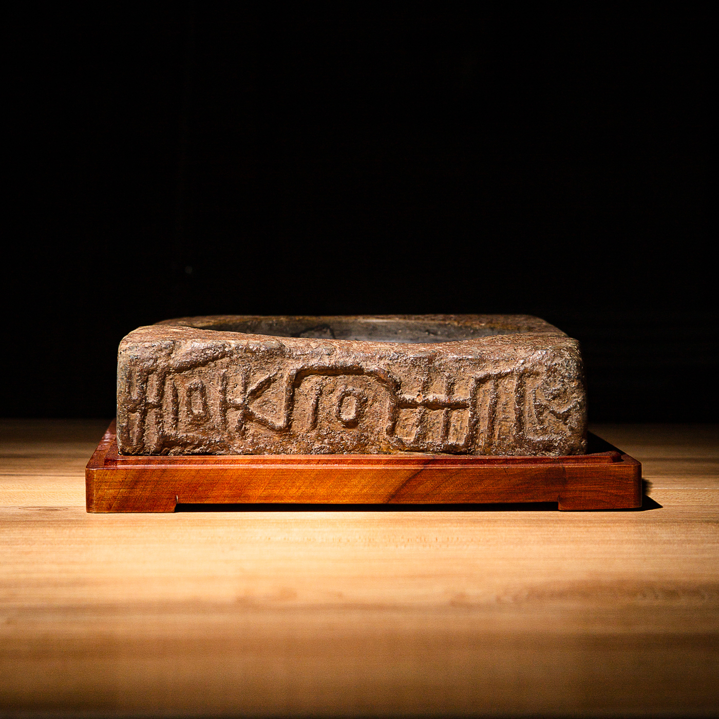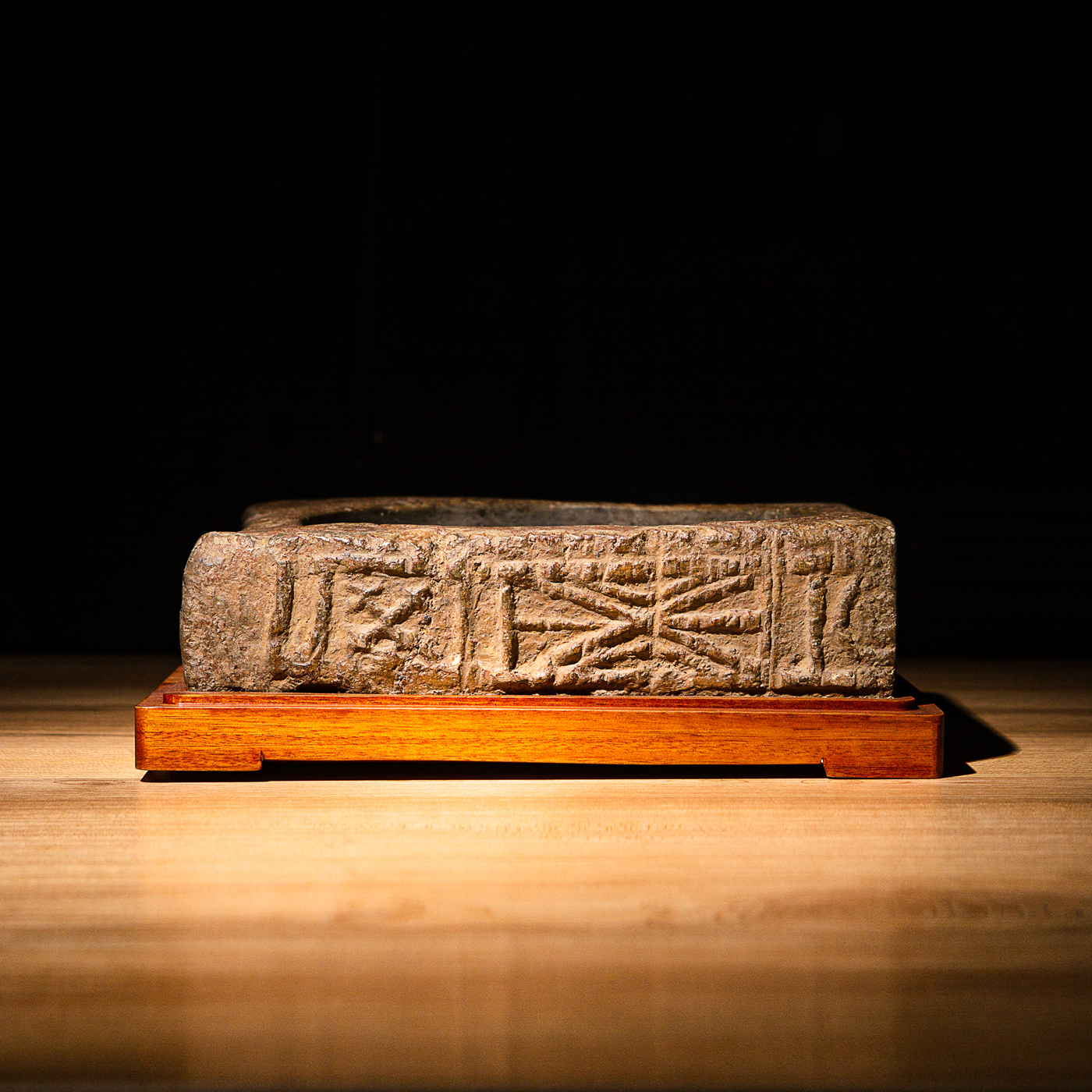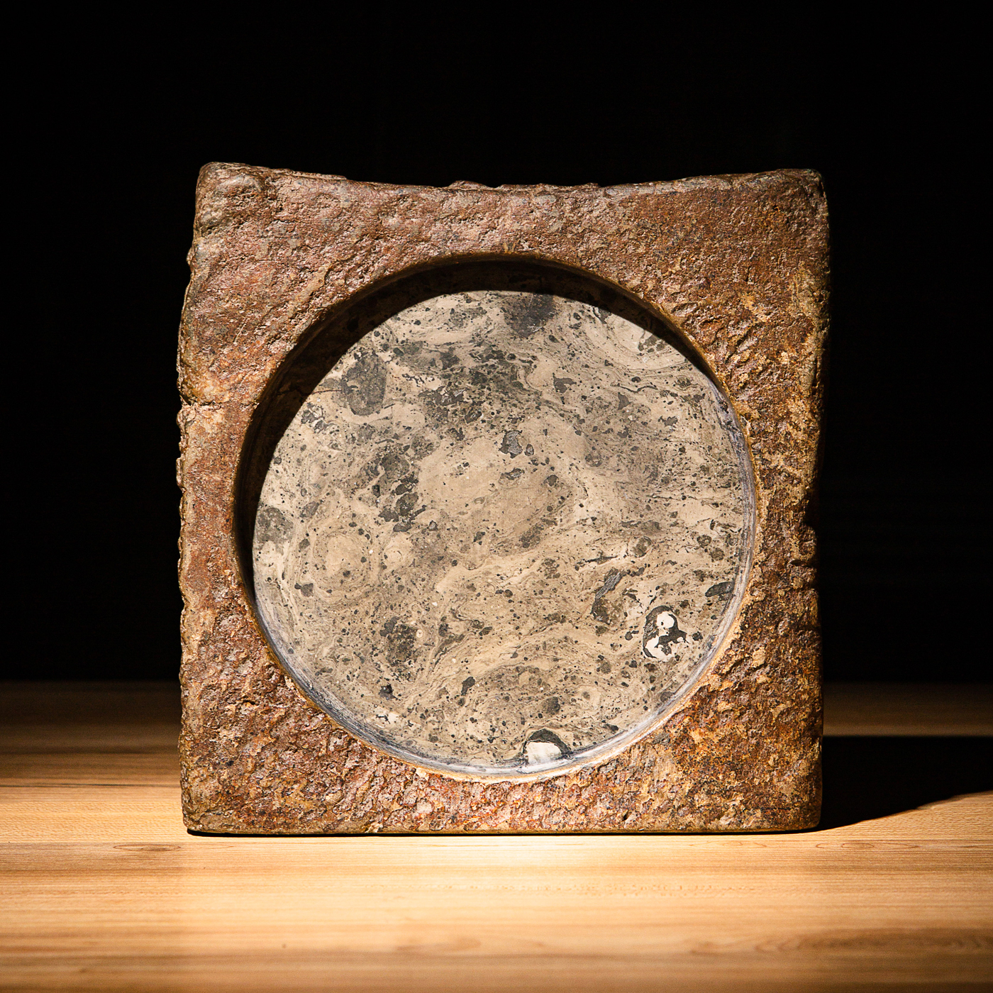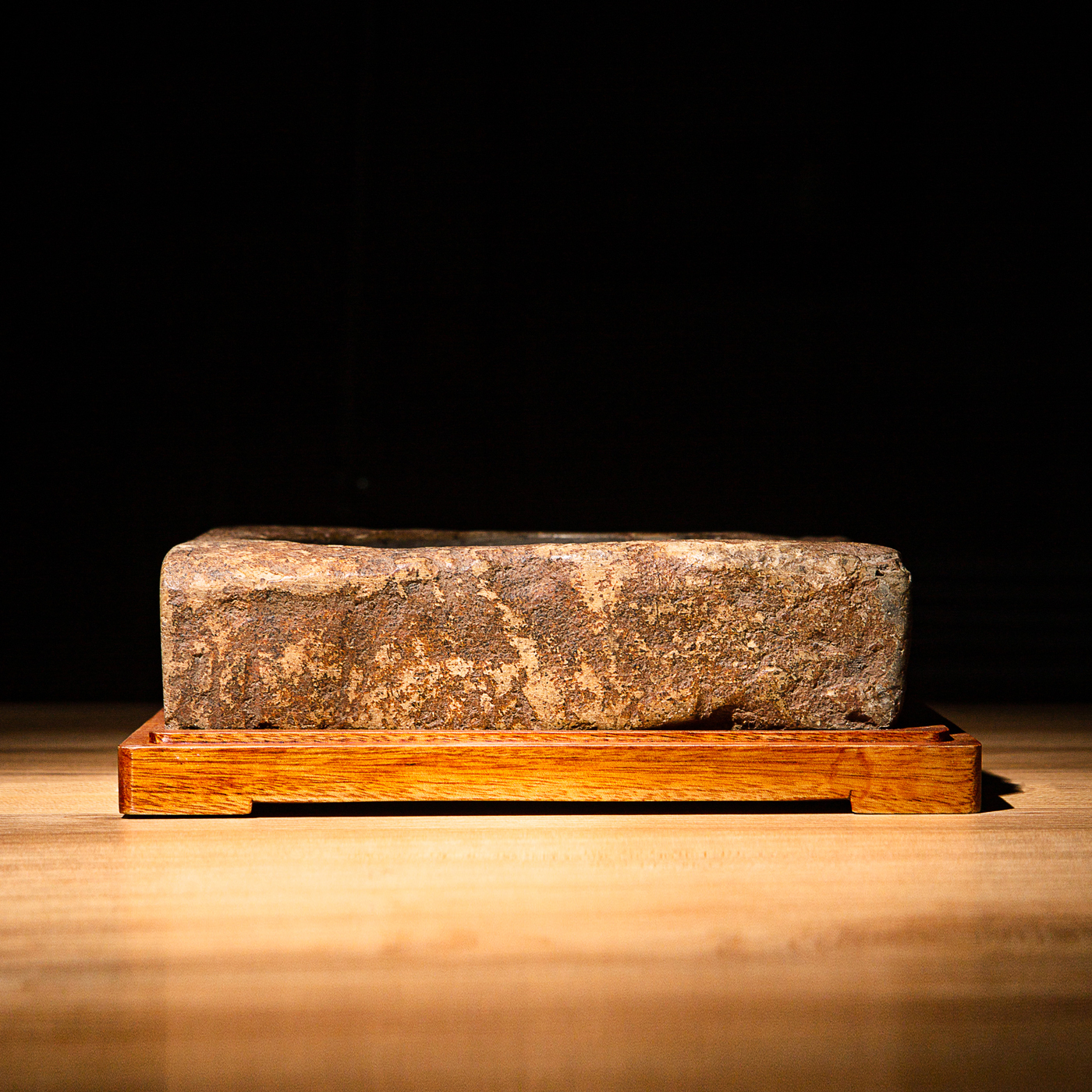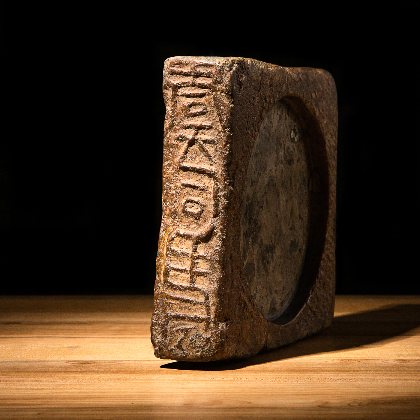 “虞司马”古砖制砚。“司马”为古代军队中的高级官职,此砖级别高,存世罕见。砖之铭文气息古朴,章法排布奇妙,结字天真。砖之胎质坚实细腻,取此砖制砚下发墨极佳。