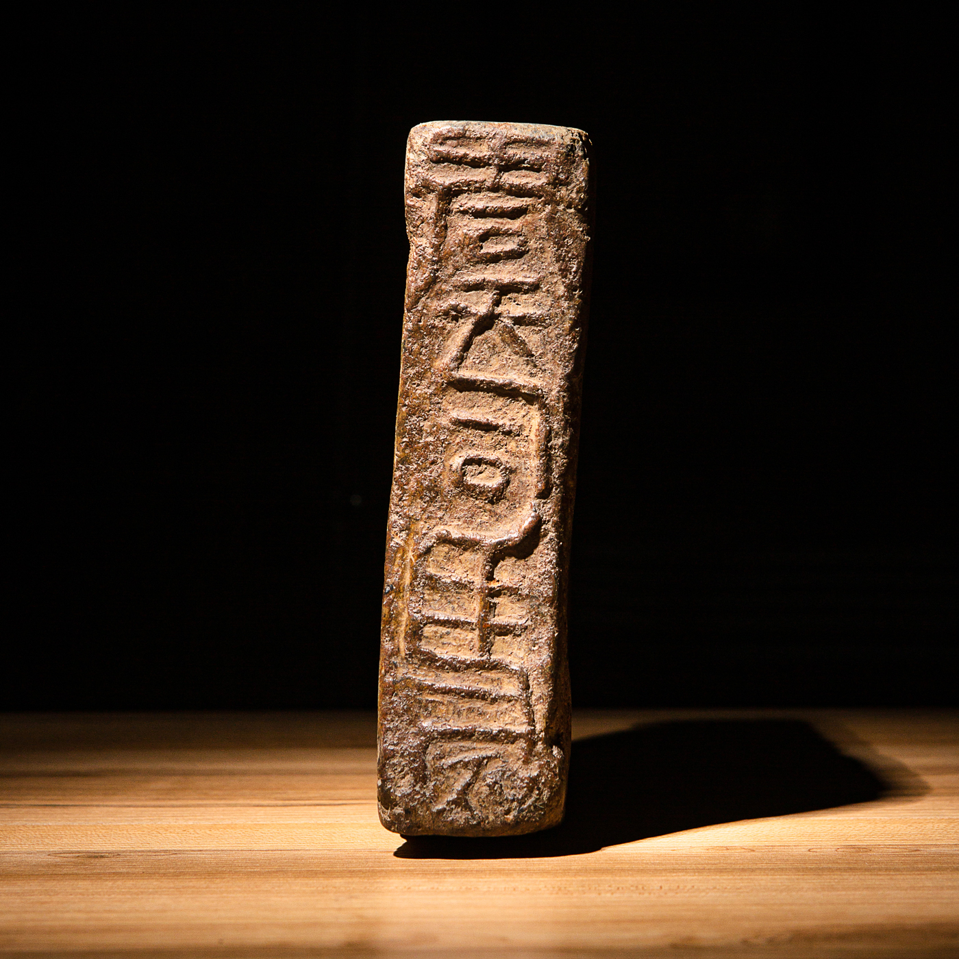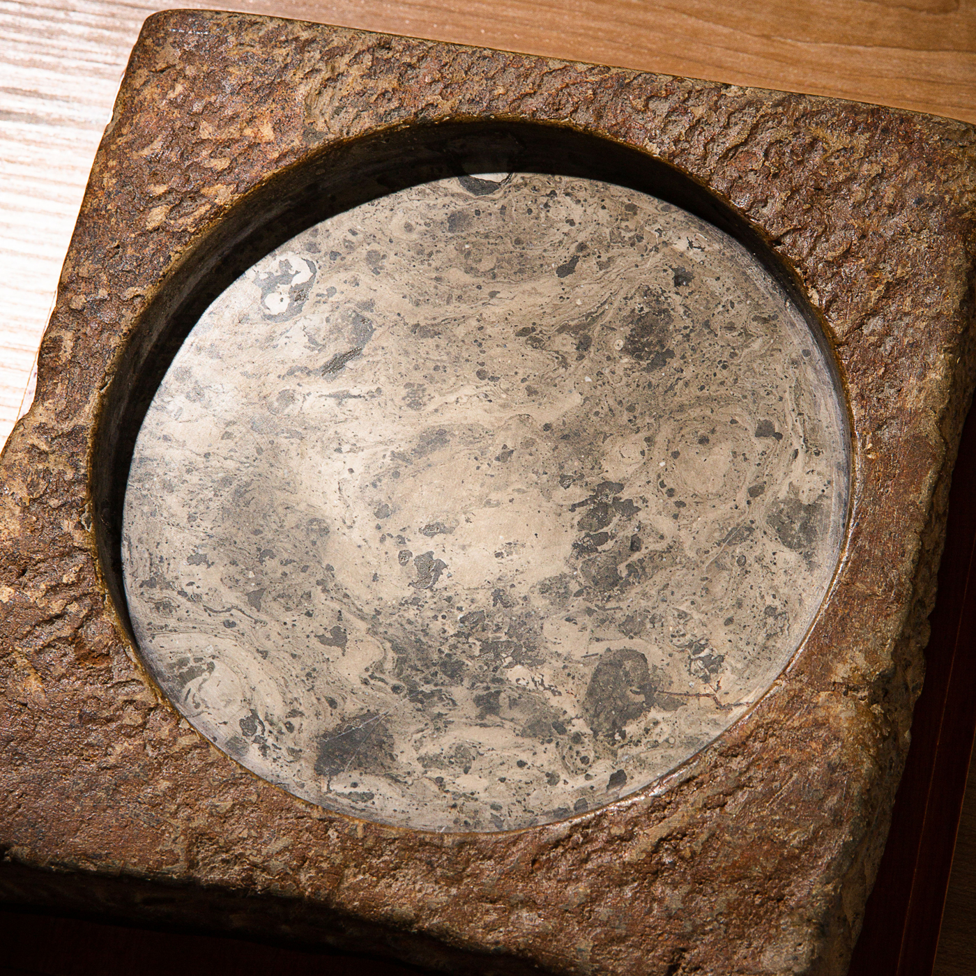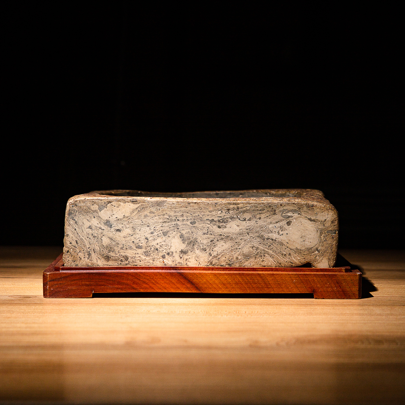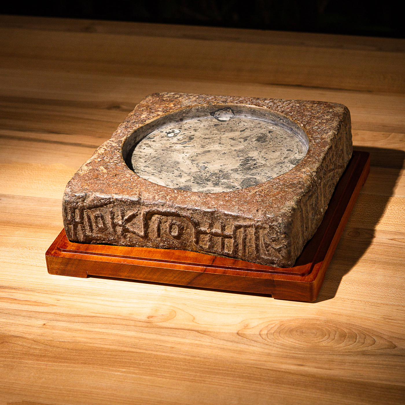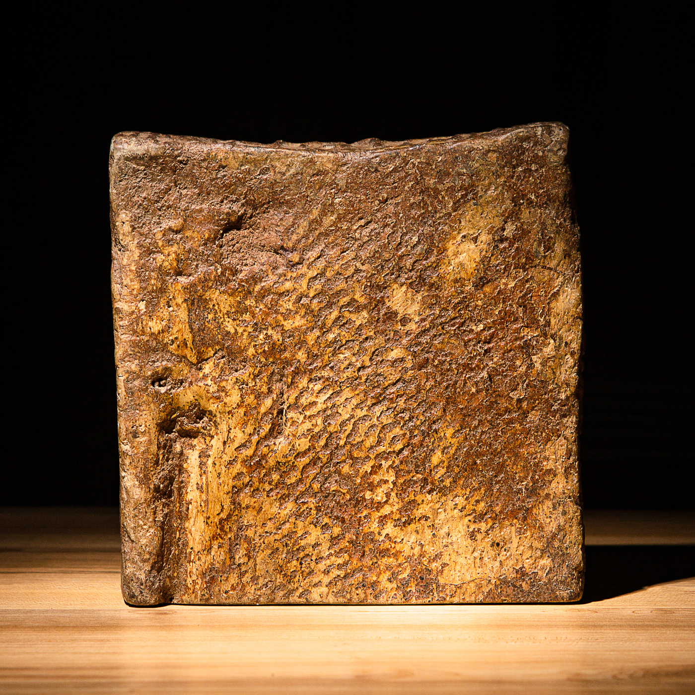 “虞司马”古砖制砚。“司马”为古代军队中的高级官职,此砖级别高,存世罕见。砖之铭文气息古朴,章法排布奇妙,结字天真。砖之胎质坚实细腻,取此砖制砚下发墨极佳。