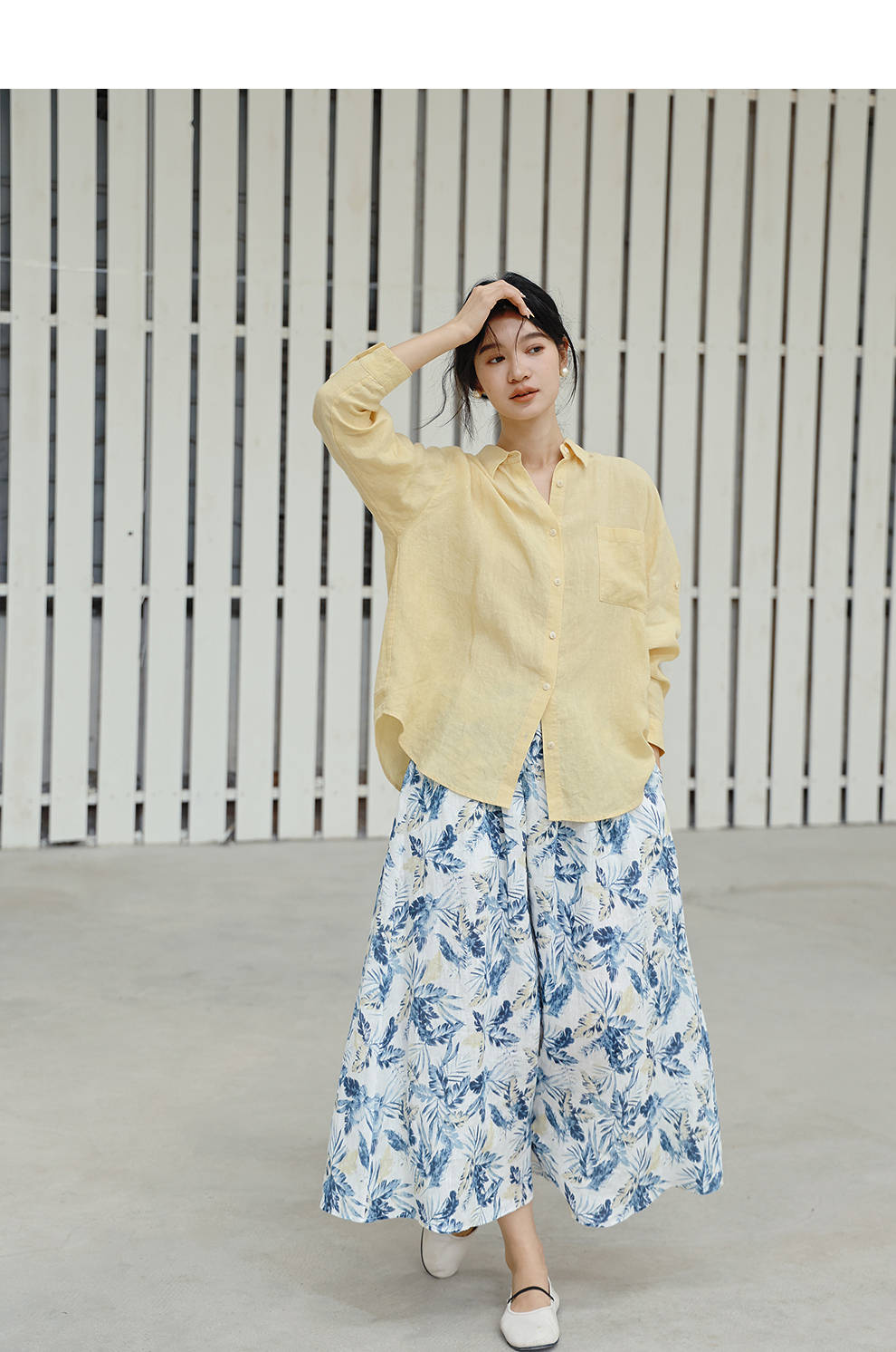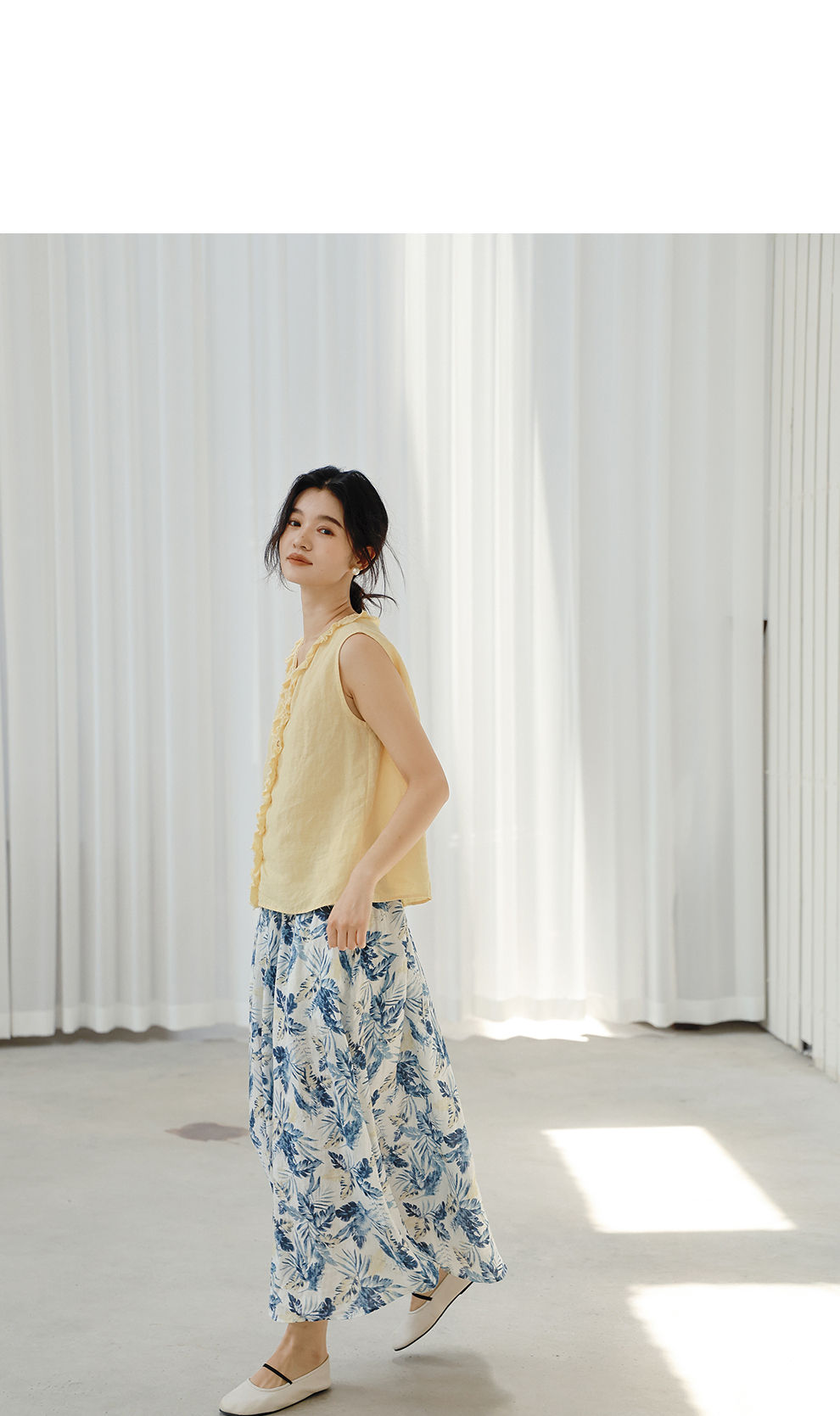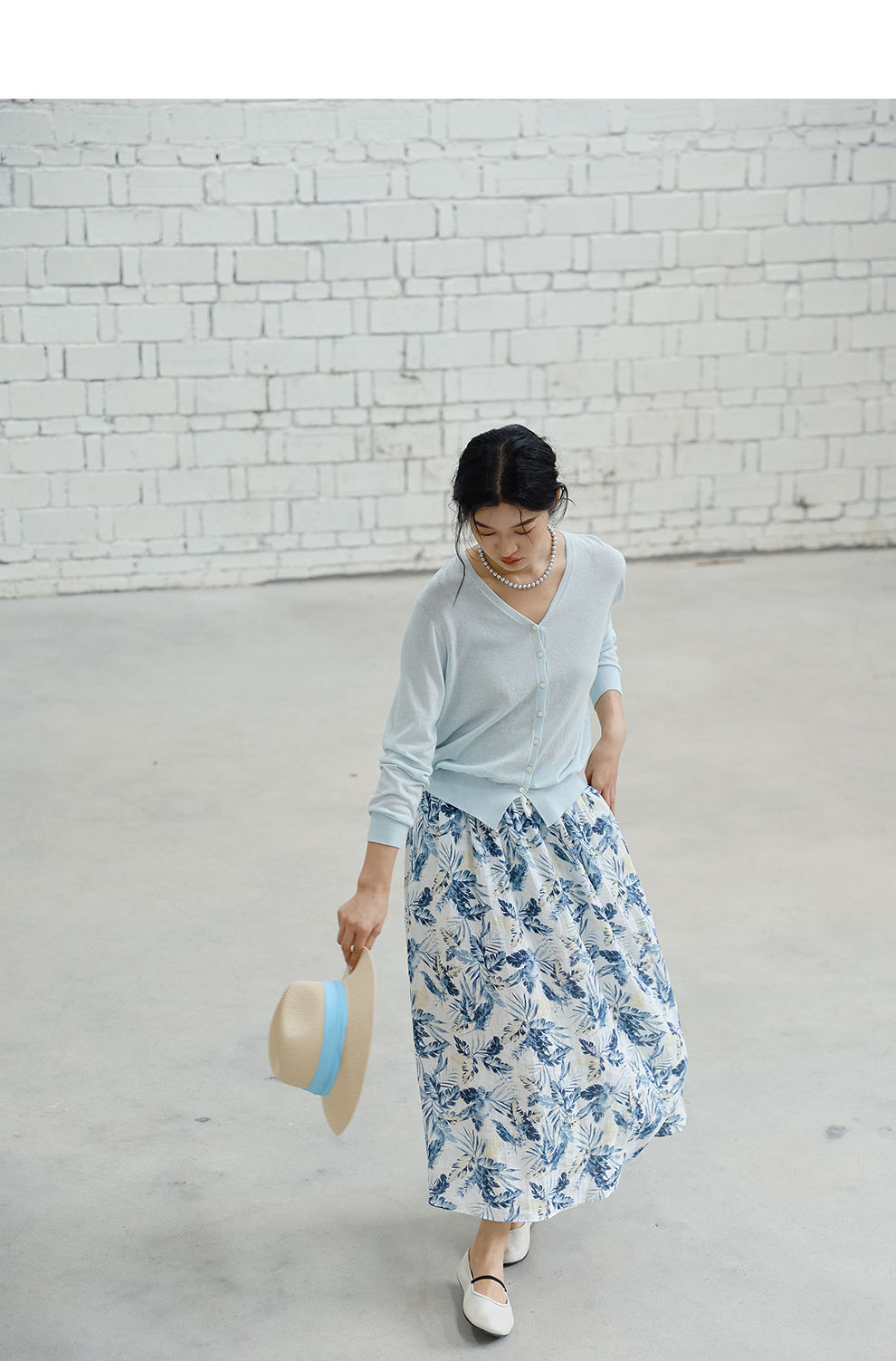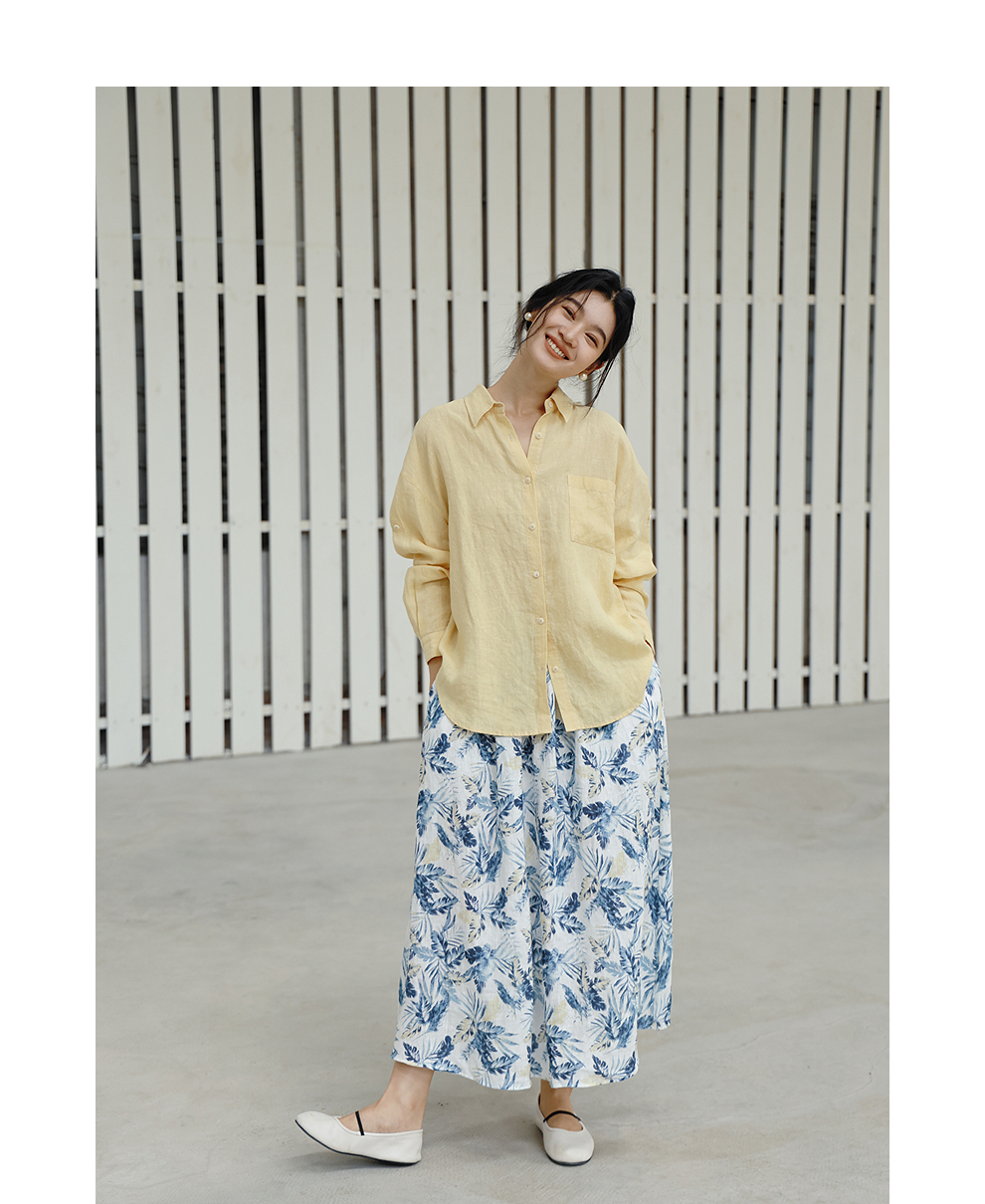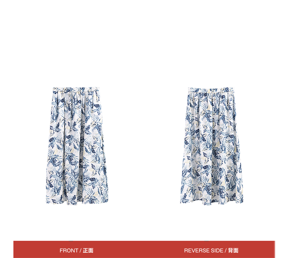 绽放女装411朵/【莫兰迪系列】双支数亚麻底布印花松紧腰半身裙女