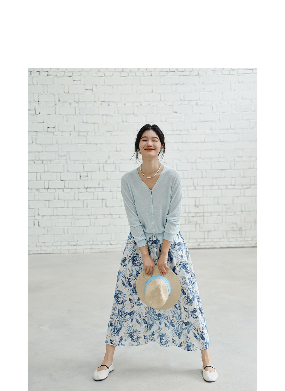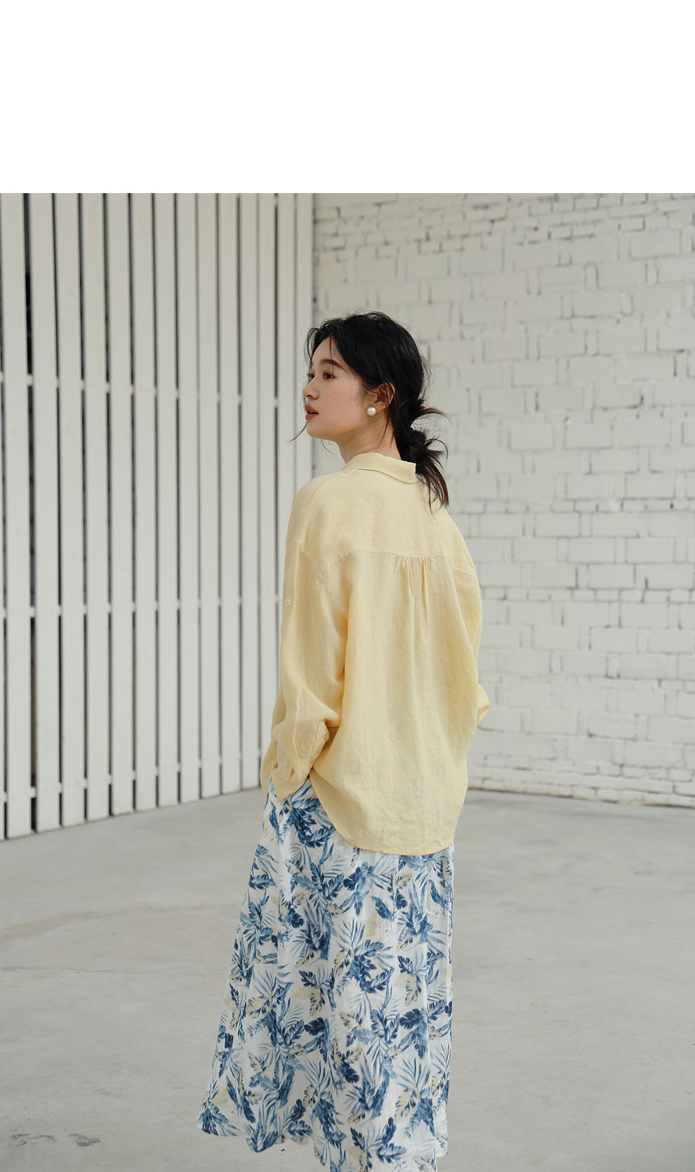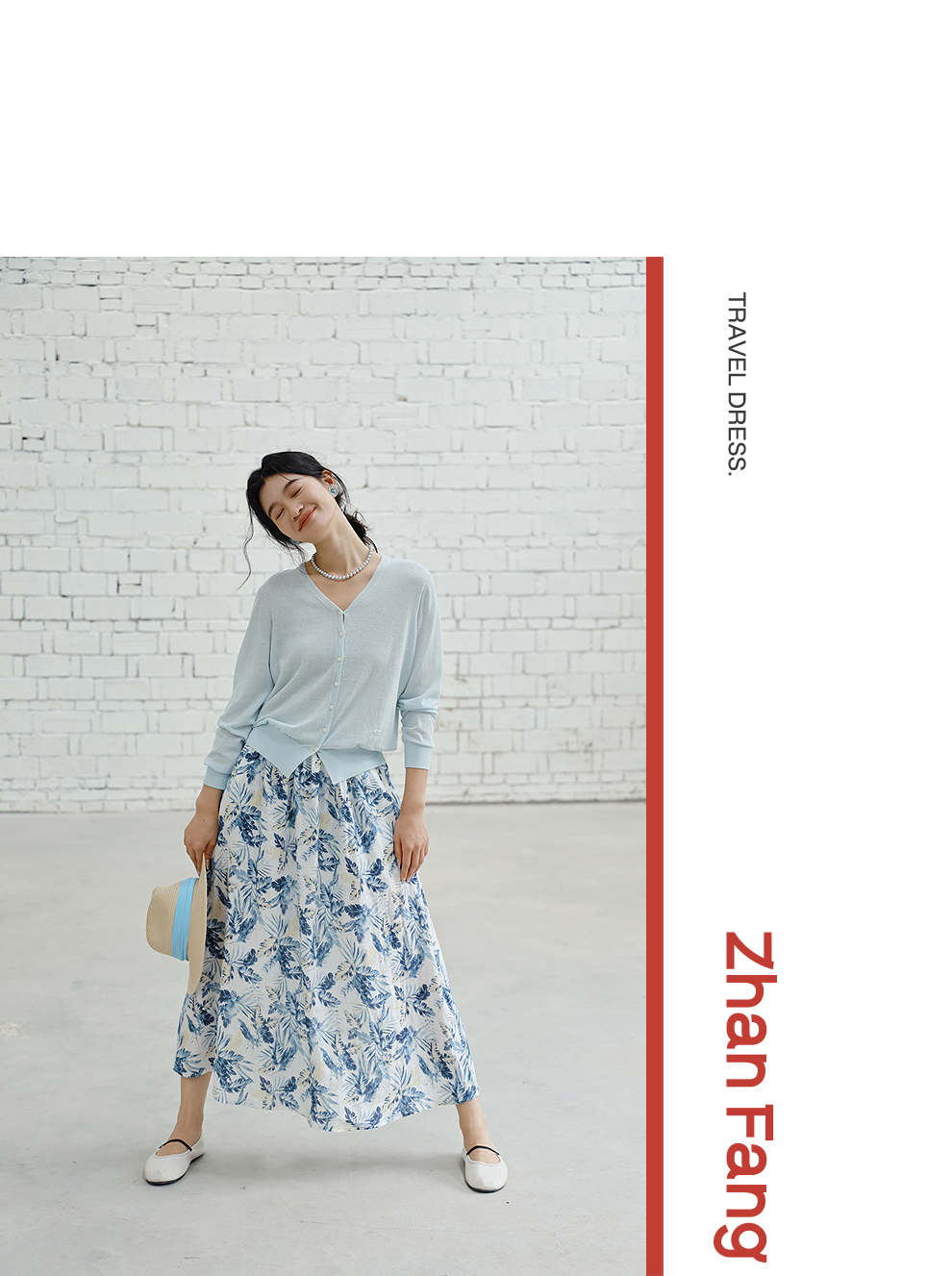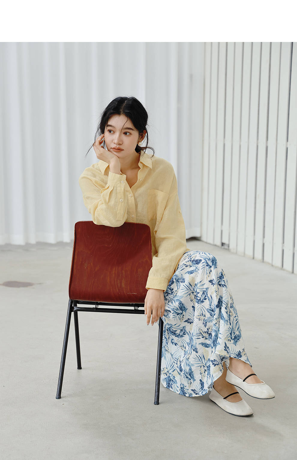 绽放女装411朵/【莫兰迪系列】双支数亚麻底布印花松紧腰半身裙女