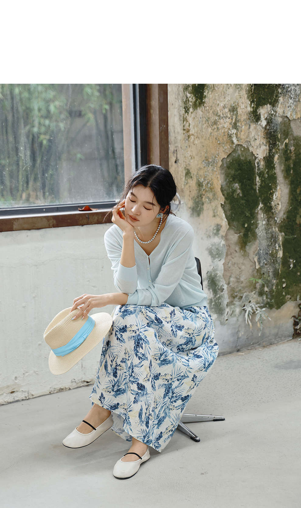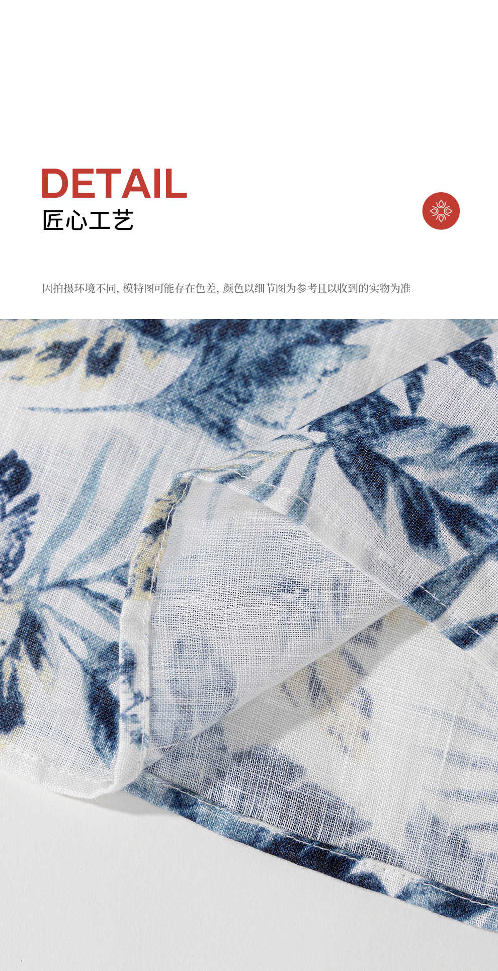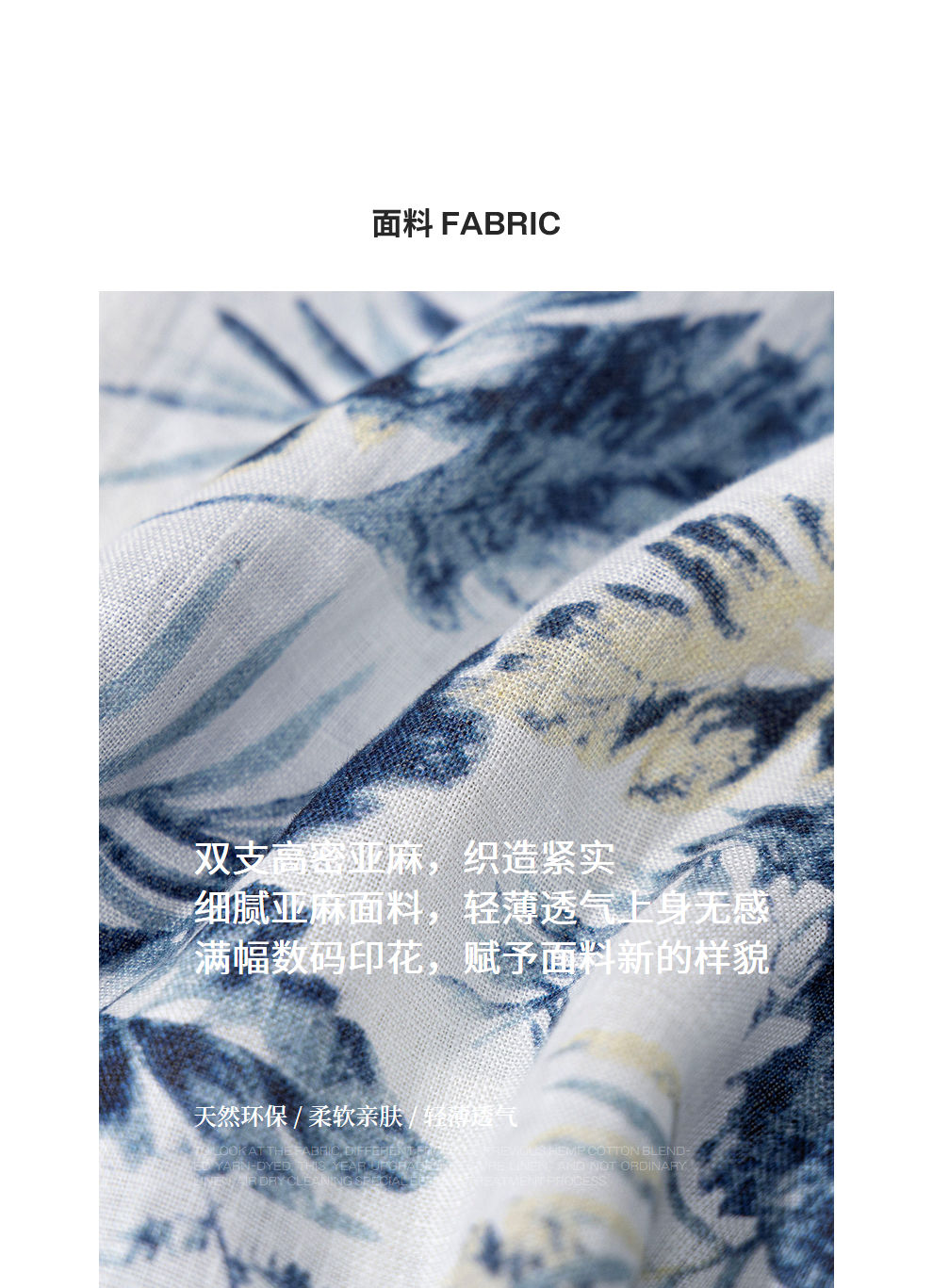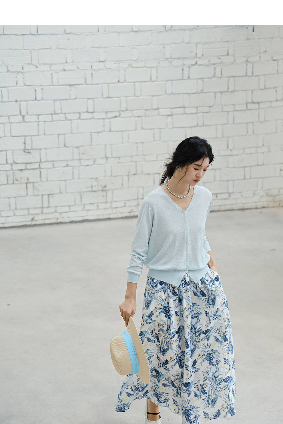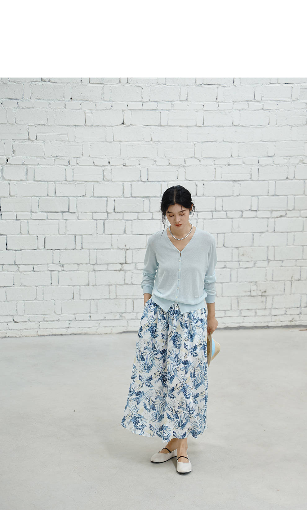 绽放女装411朵/【莫兰迪系列】双支数亚麻底布印花松紧腰半身裙女