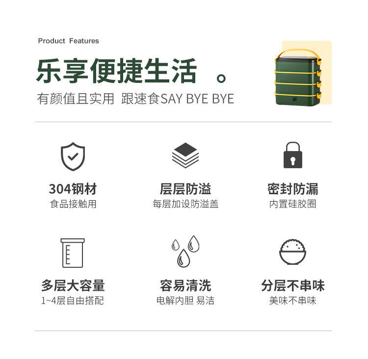 304不锈钢饭盒多层大容量上班族学生可微波便捷携带隔味保温饭盒