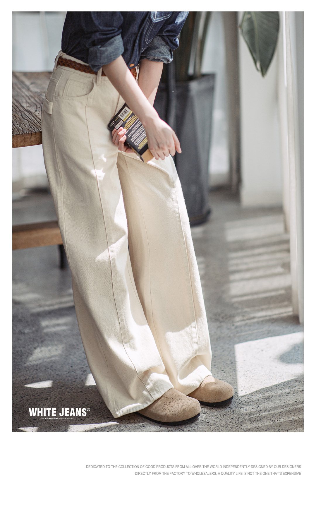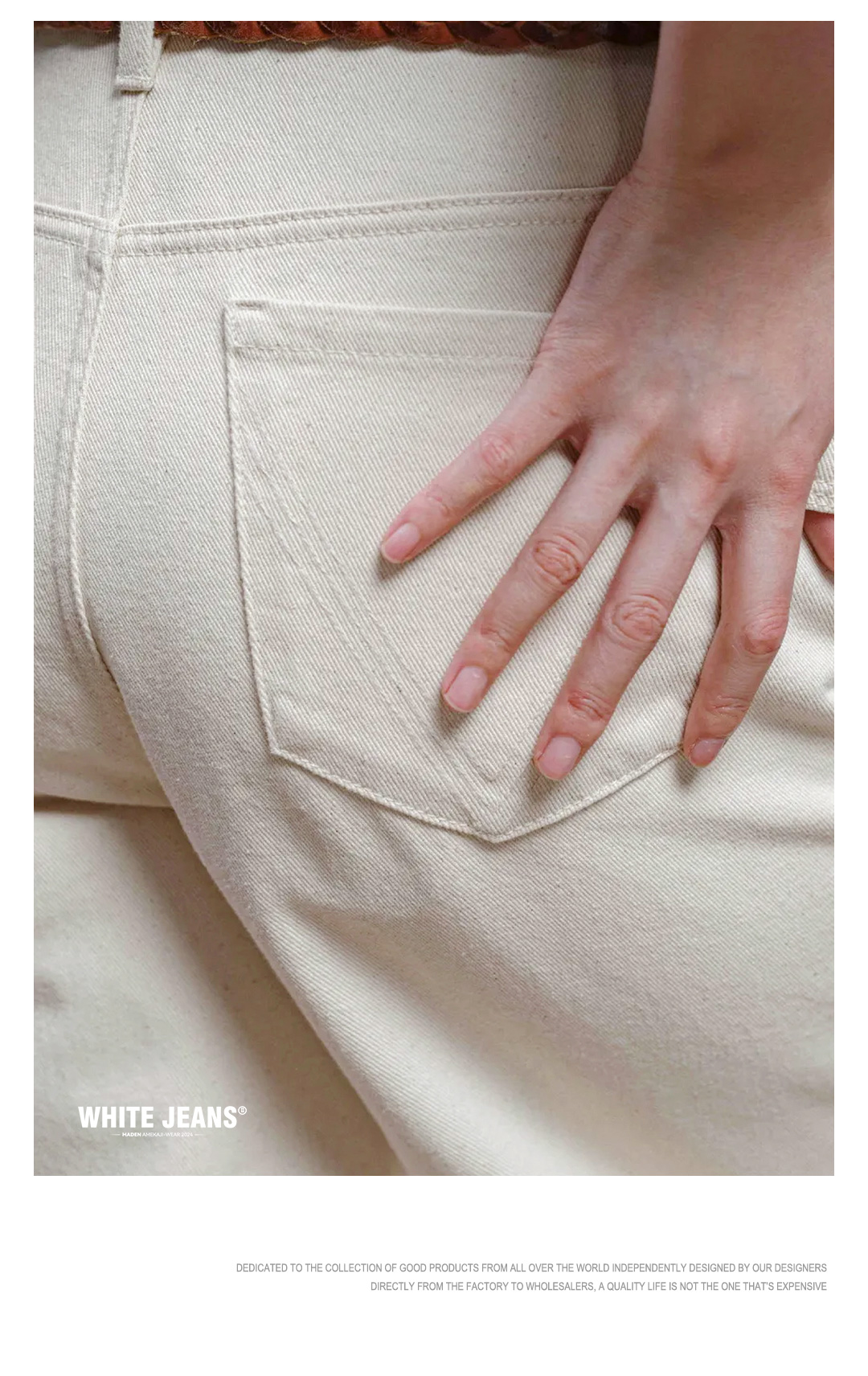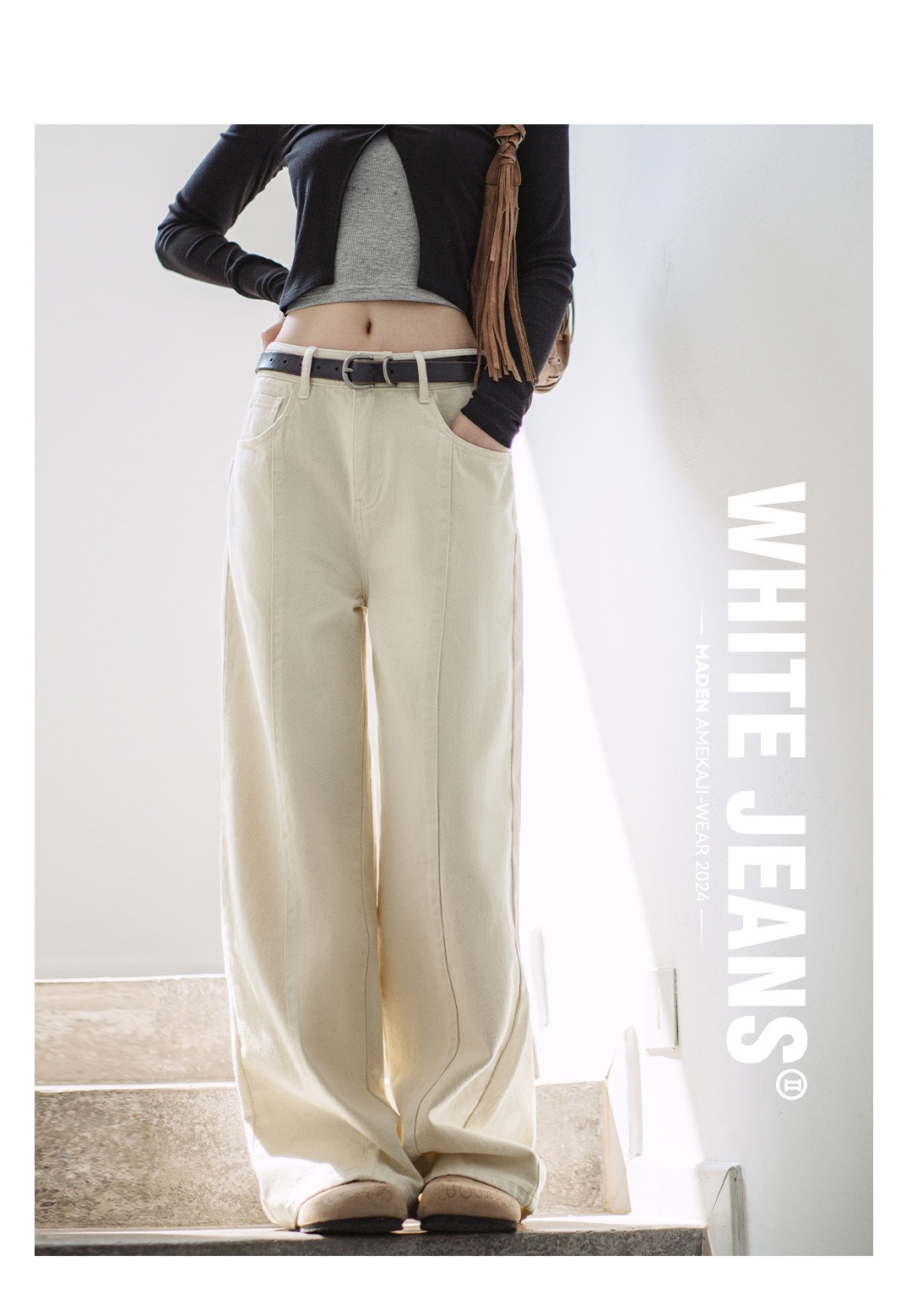 马登美式白色棉籽壳直筒牛仔裤复古宽松显瘦休闲裤百搭长裤秋季女