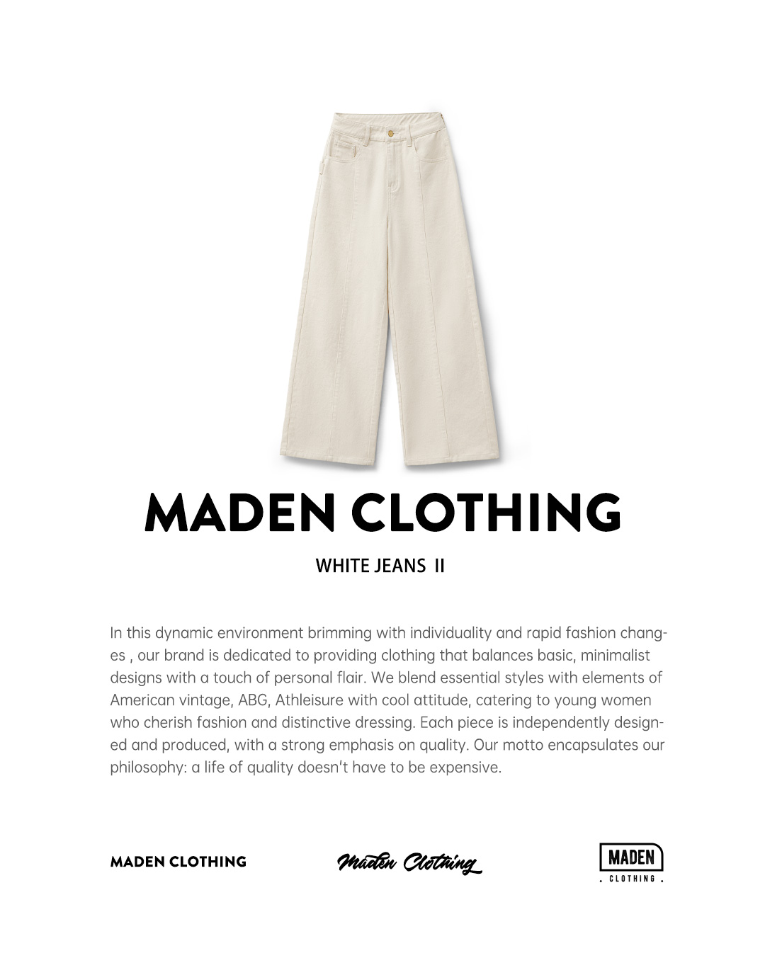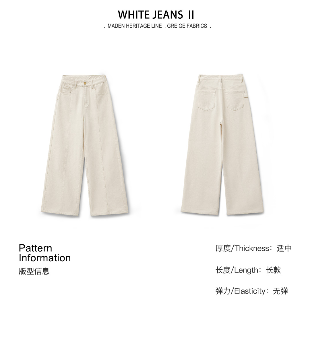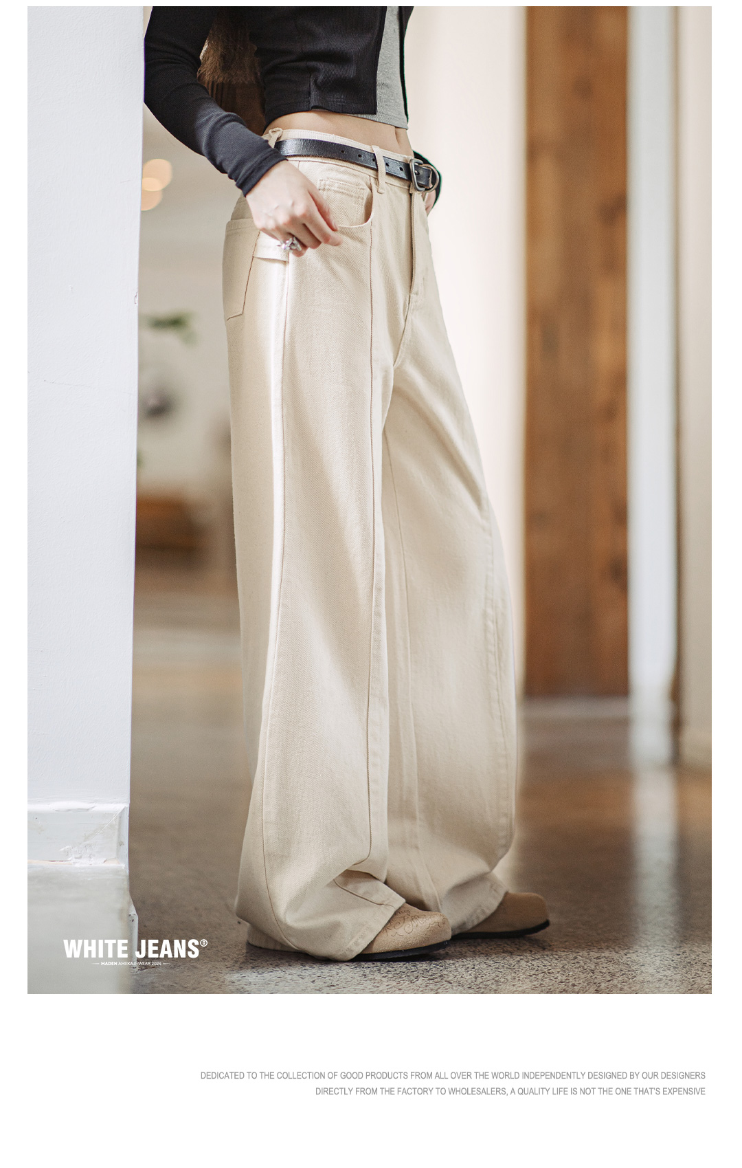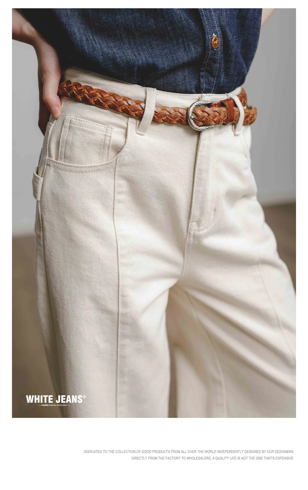 马登美式白色棉籽壳直筒牛仔裤复古宽松显瘦休闲裤百搭长裤秋季女
