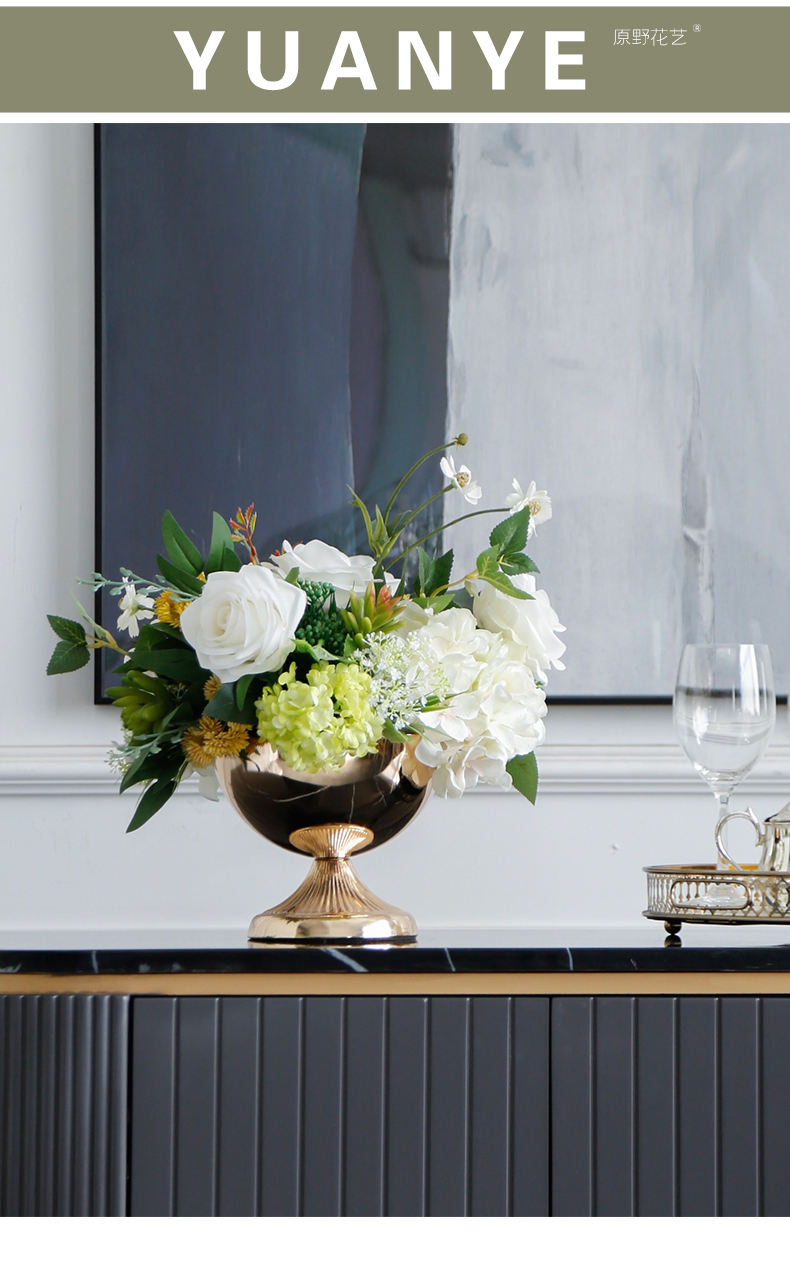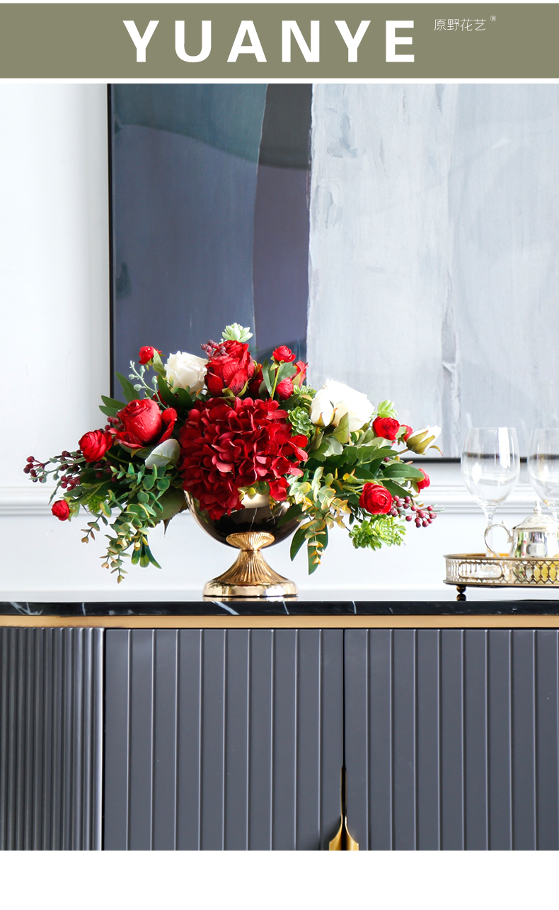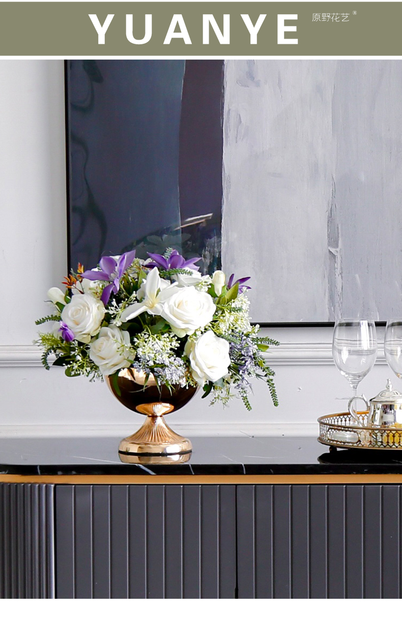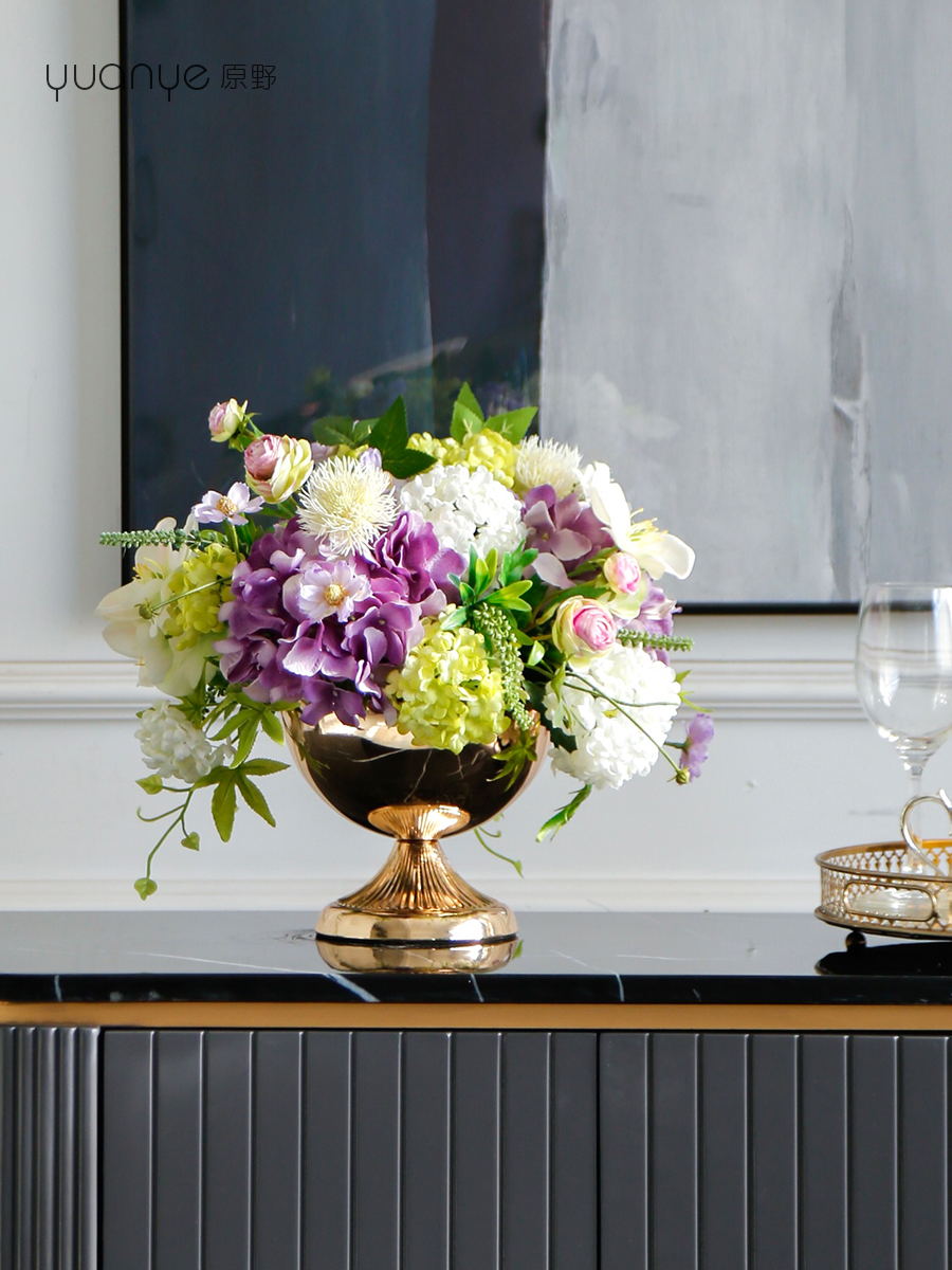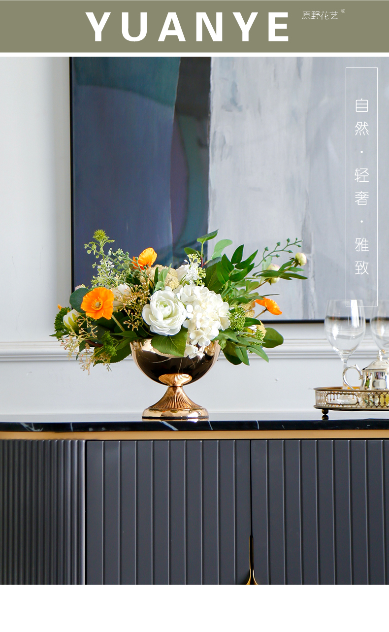 轻奢高端仿真花客厅装饰花摆件餐桌花摆设电视柜茶几前台软装饰品