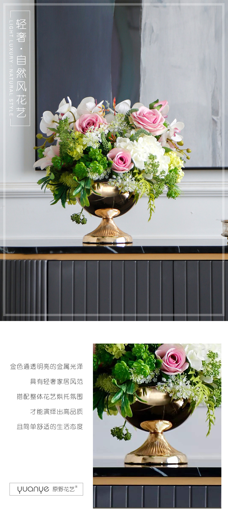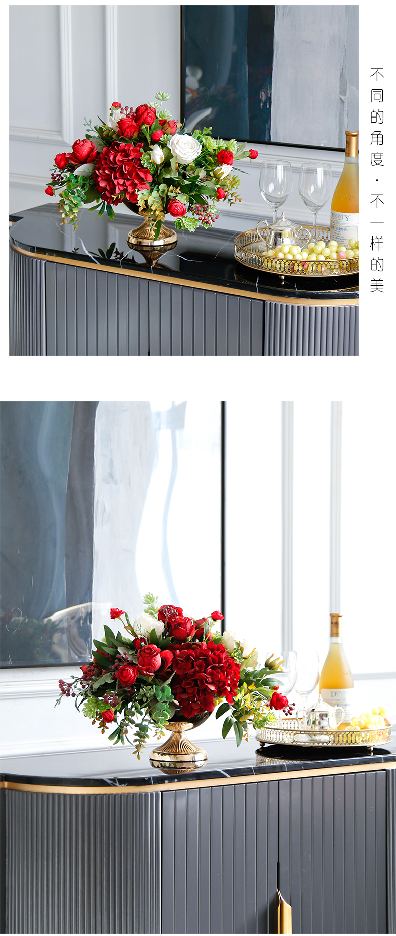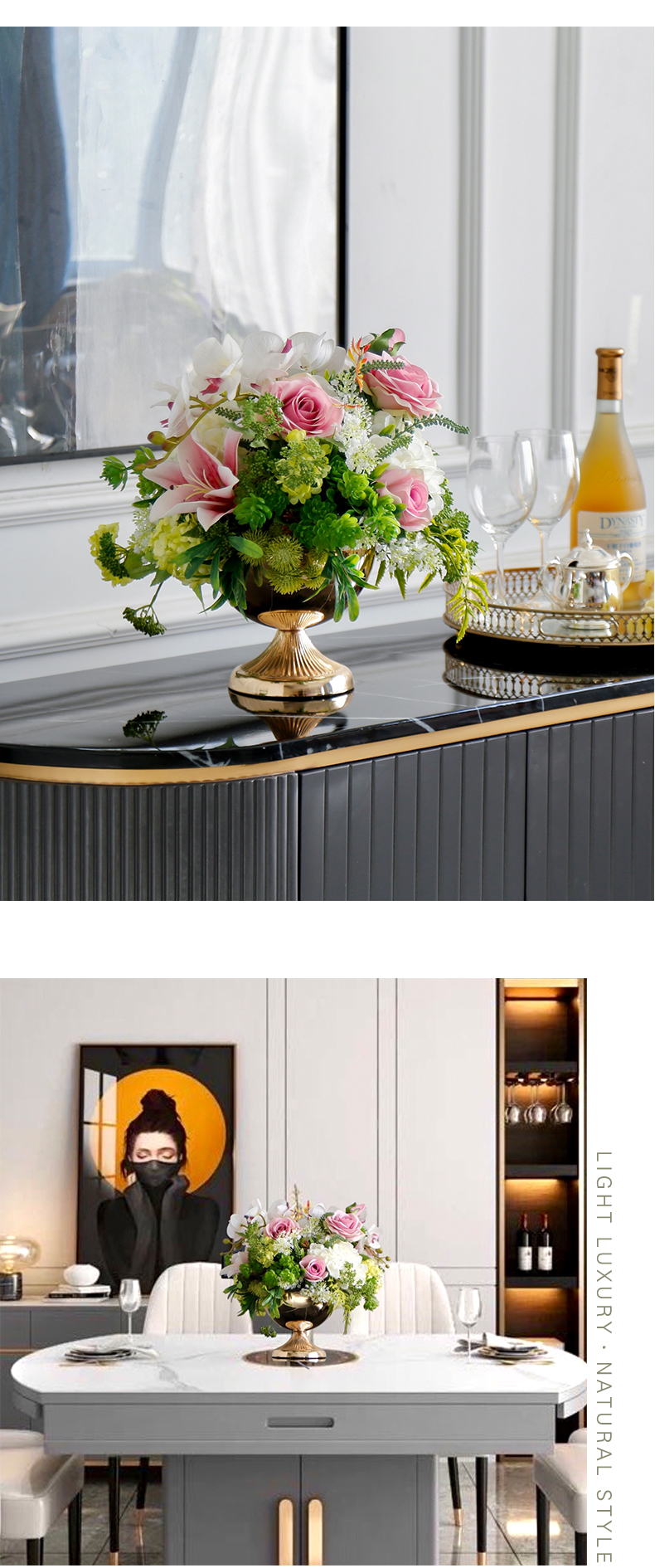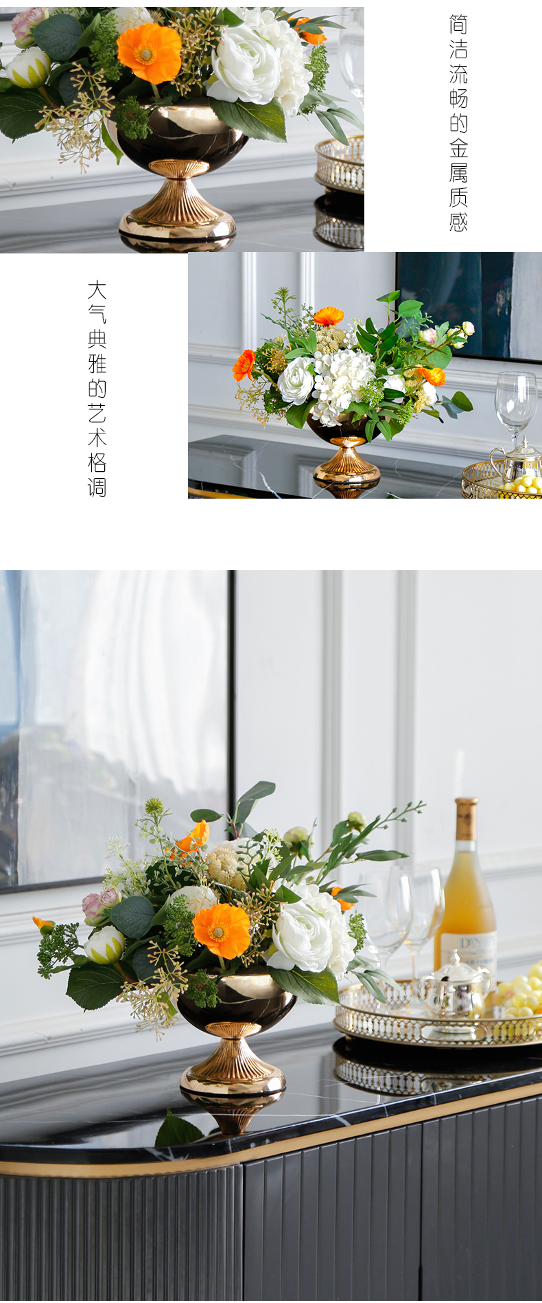 轻奢高端仿真花客厅装饰花摆件餐桌花摆设电视柜茶几前台软装饰品