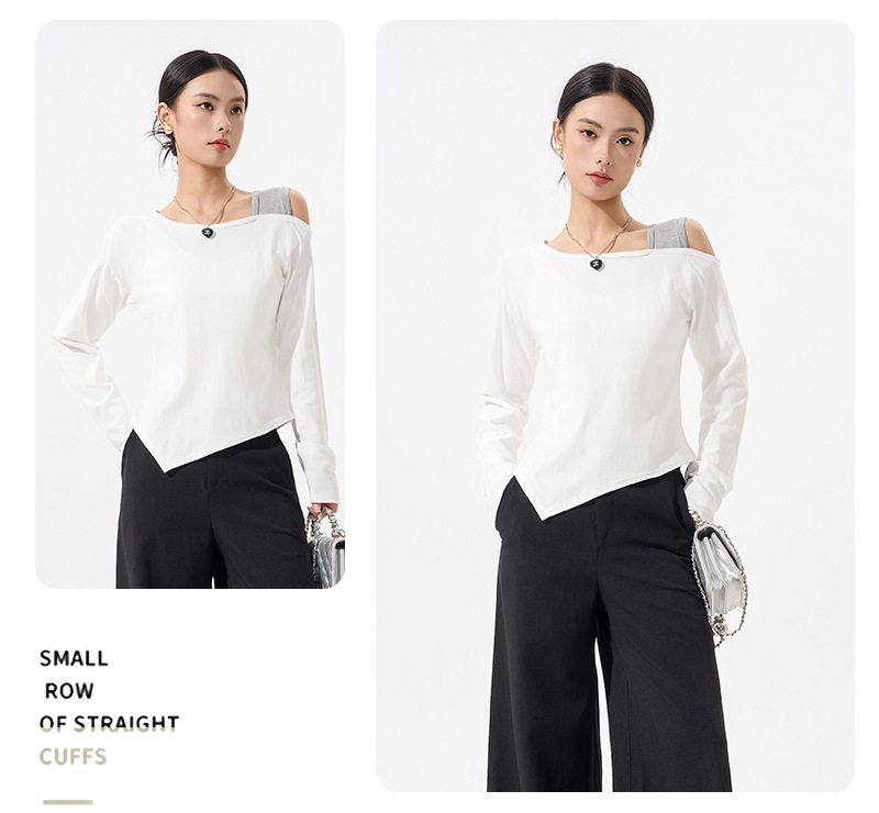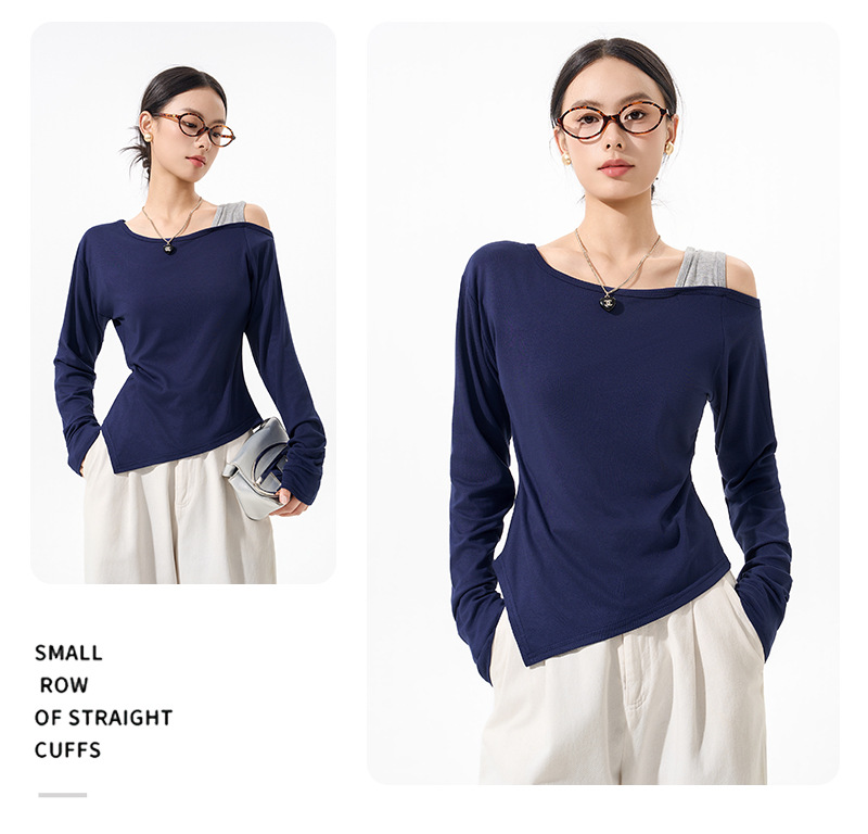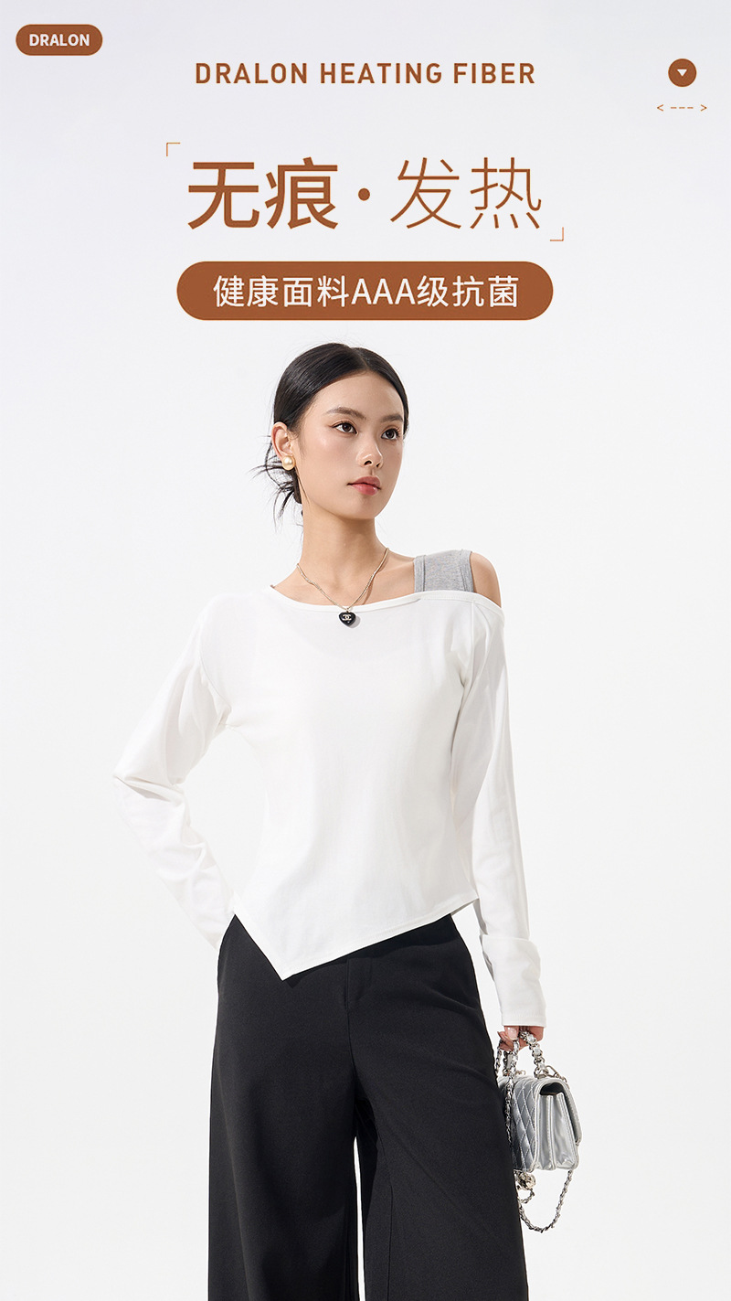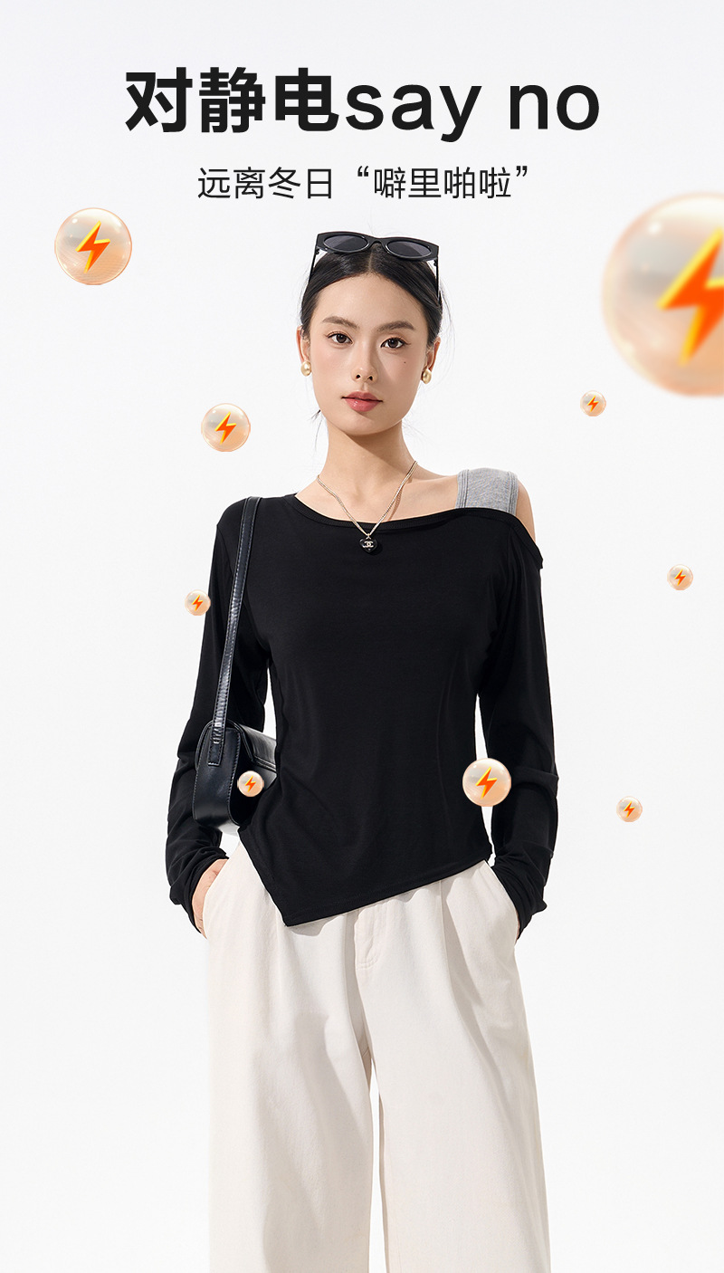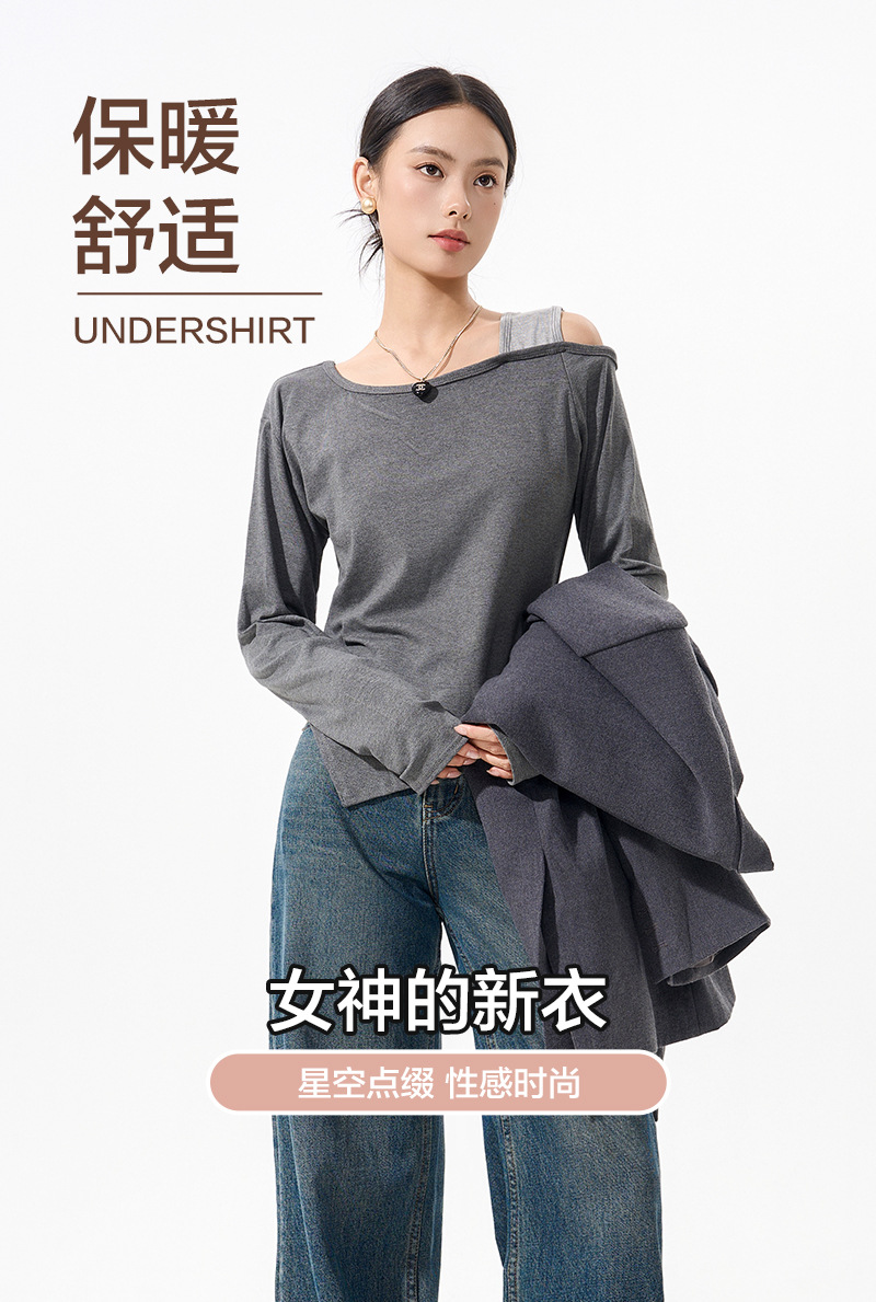 【79/任选2件 斜肩软软打底衫】早秋韩系设计感挂脖斜肩打底衫上衣时尚气质长袖宽松显瘦露肩打底