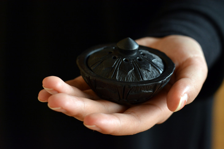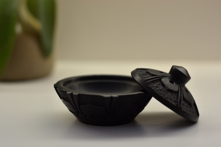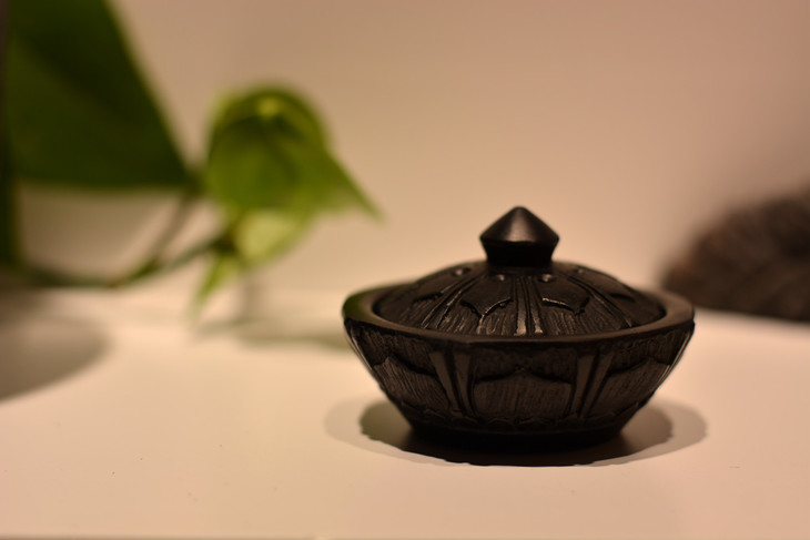 黑陶迷你莲花香盒,是把香片或精油放在黑陶香盒里,非点燃,放在床头柜缓慢散发,清雅淡香,是香中之雅。