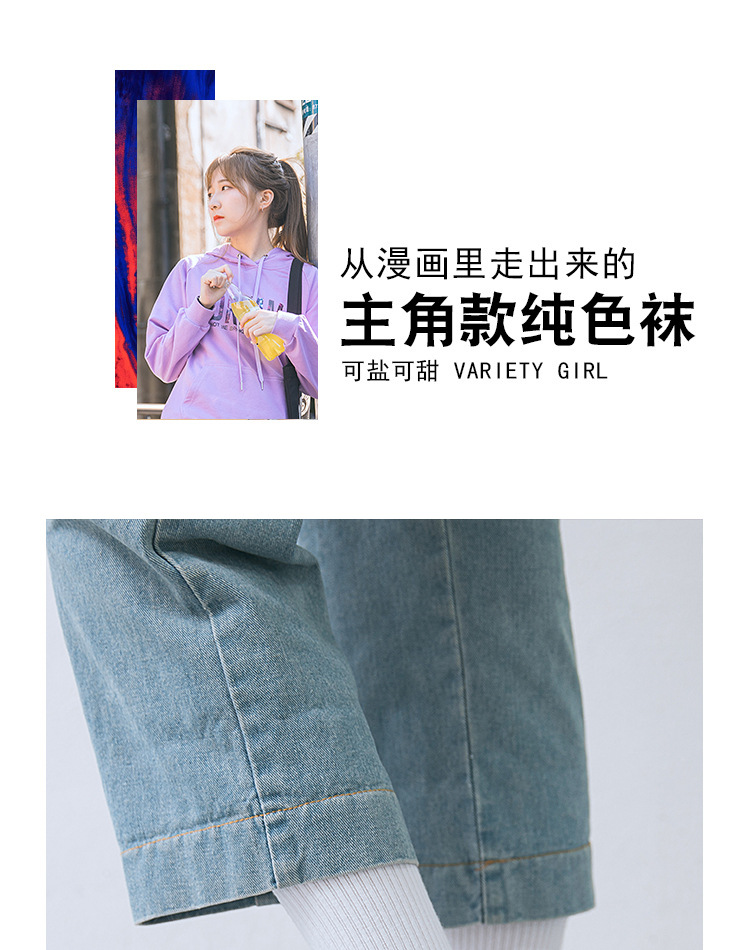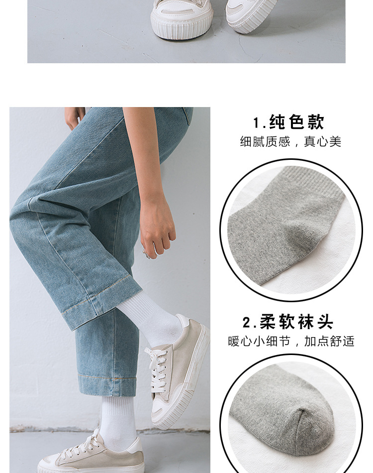 【3双装 加大后跟 舒适百搭】男士袜子日系ins中筒袜秋冬长袜百搭潮运动袜 男士黑白色 堆堆袜女