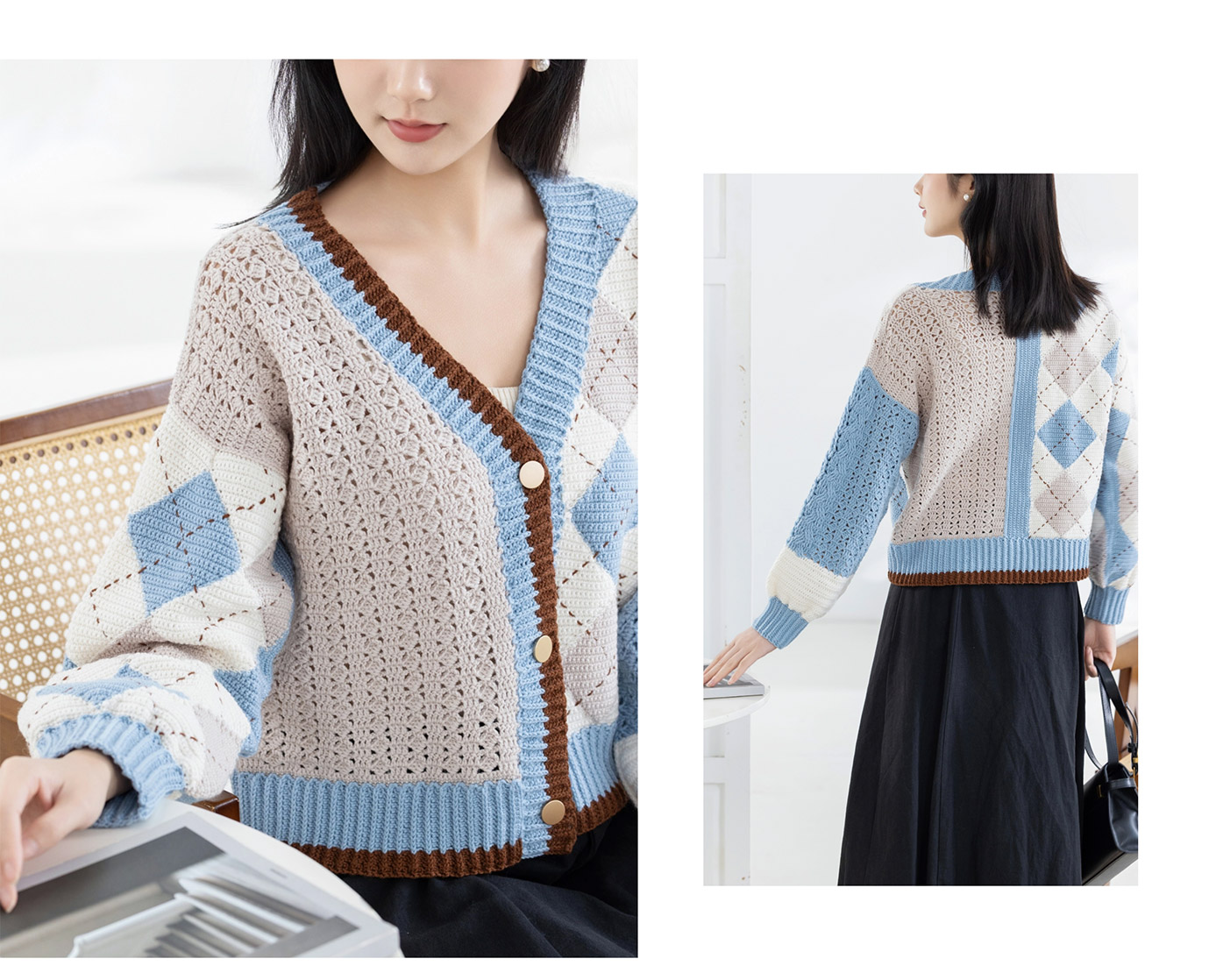 苏苏姐家艾琳格纹开衫手工DIY编织羊毛钩针毛线团衣服材料包