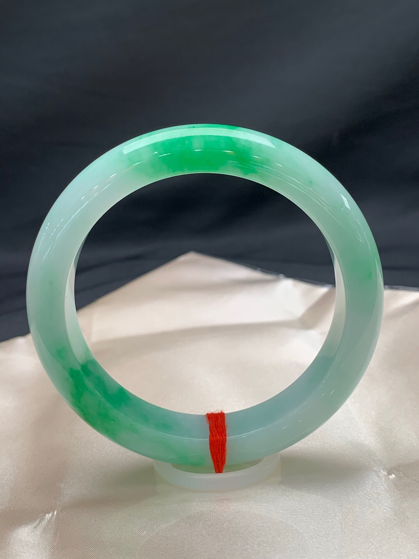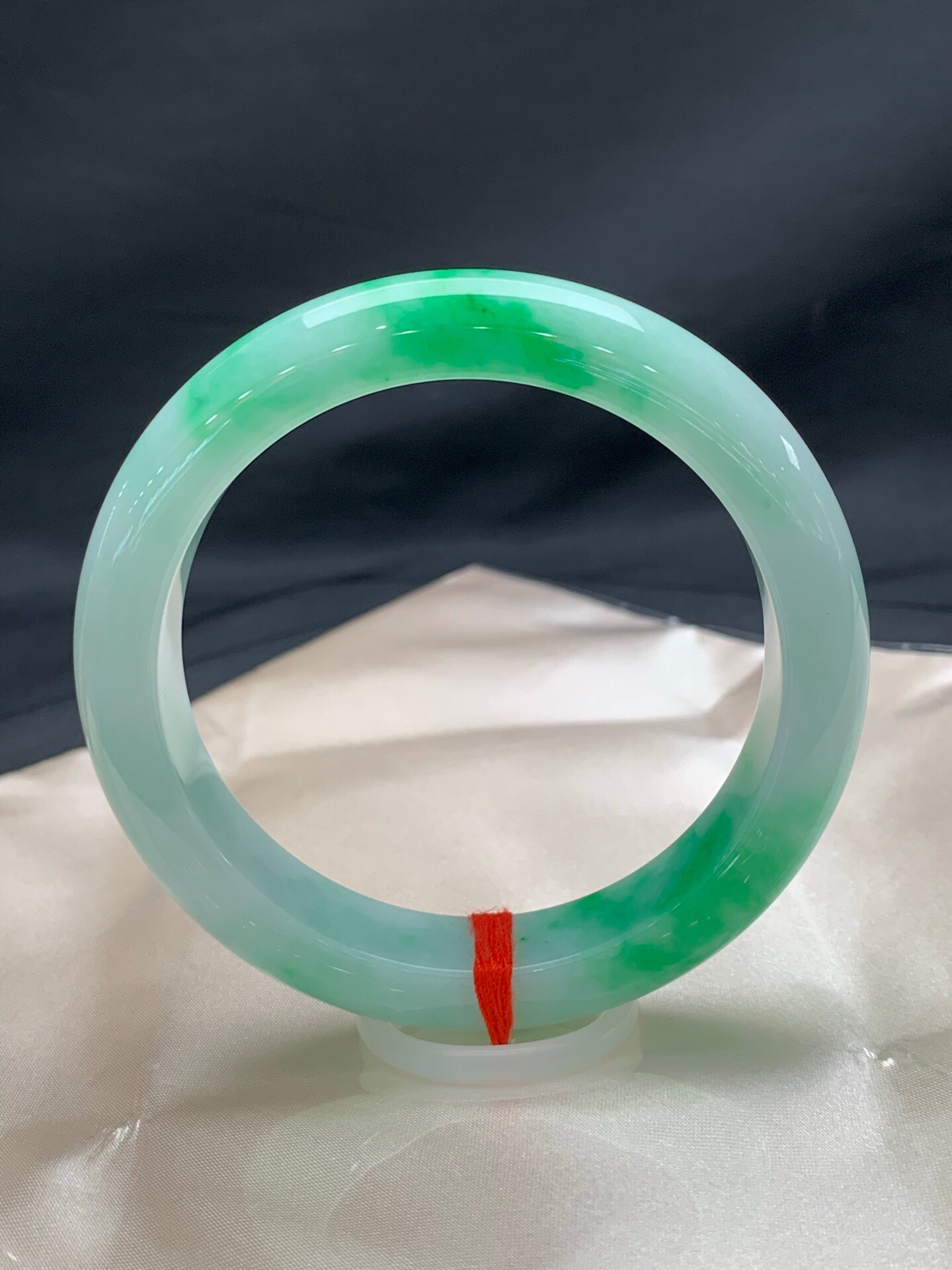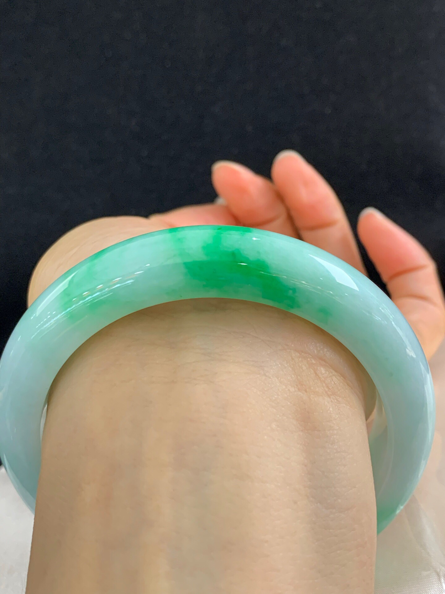 620446,62圈口,细糯飘绿正圈平安镯,飘几抹阳绿色,底子细腻,上手大气,尺寸:62-13.3-9.7,超值价💰91000 #优石客珠宝#香玉荟萃