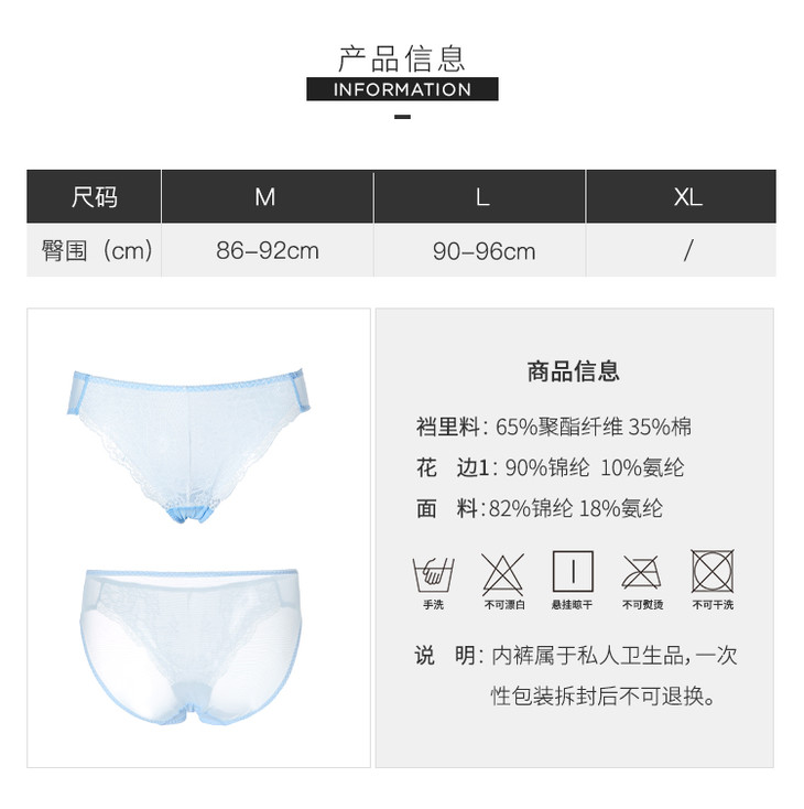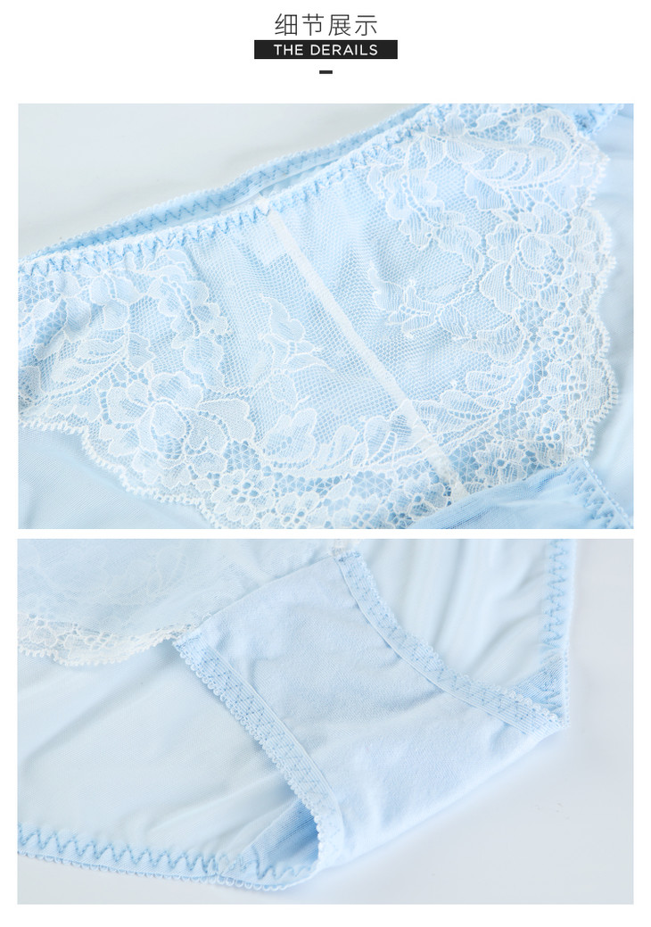 奶糖派蓝白蕾丝内裤 软萌可爱内裤 低腰内裤