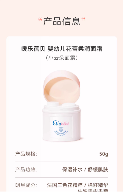【春上新】9楼母婴生活馆 嗳乐蓓贝小云朵面霜50g夏季滋润补水舒缓0岁宝宝可用 吊牌价:320元 活动价258元