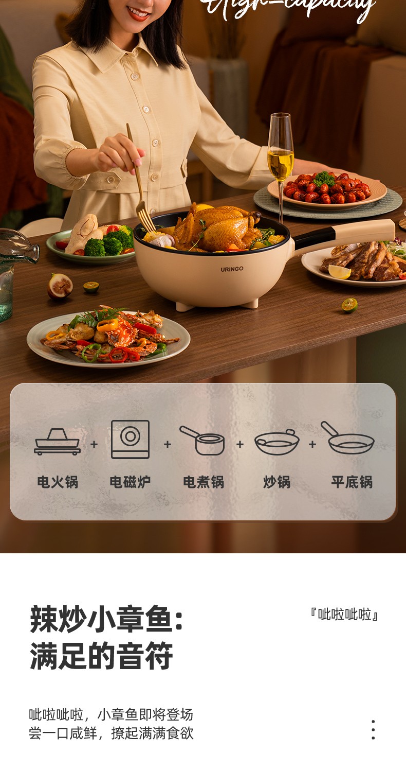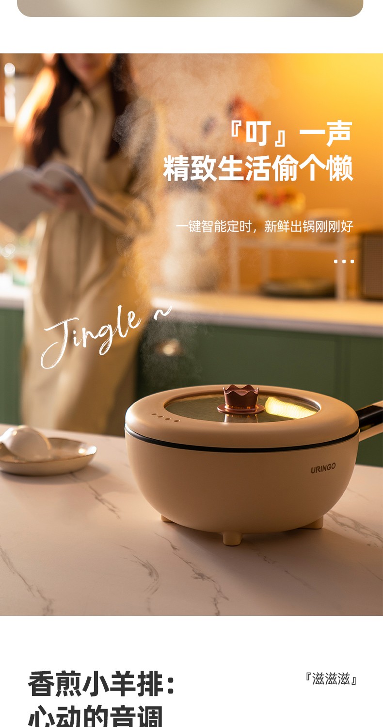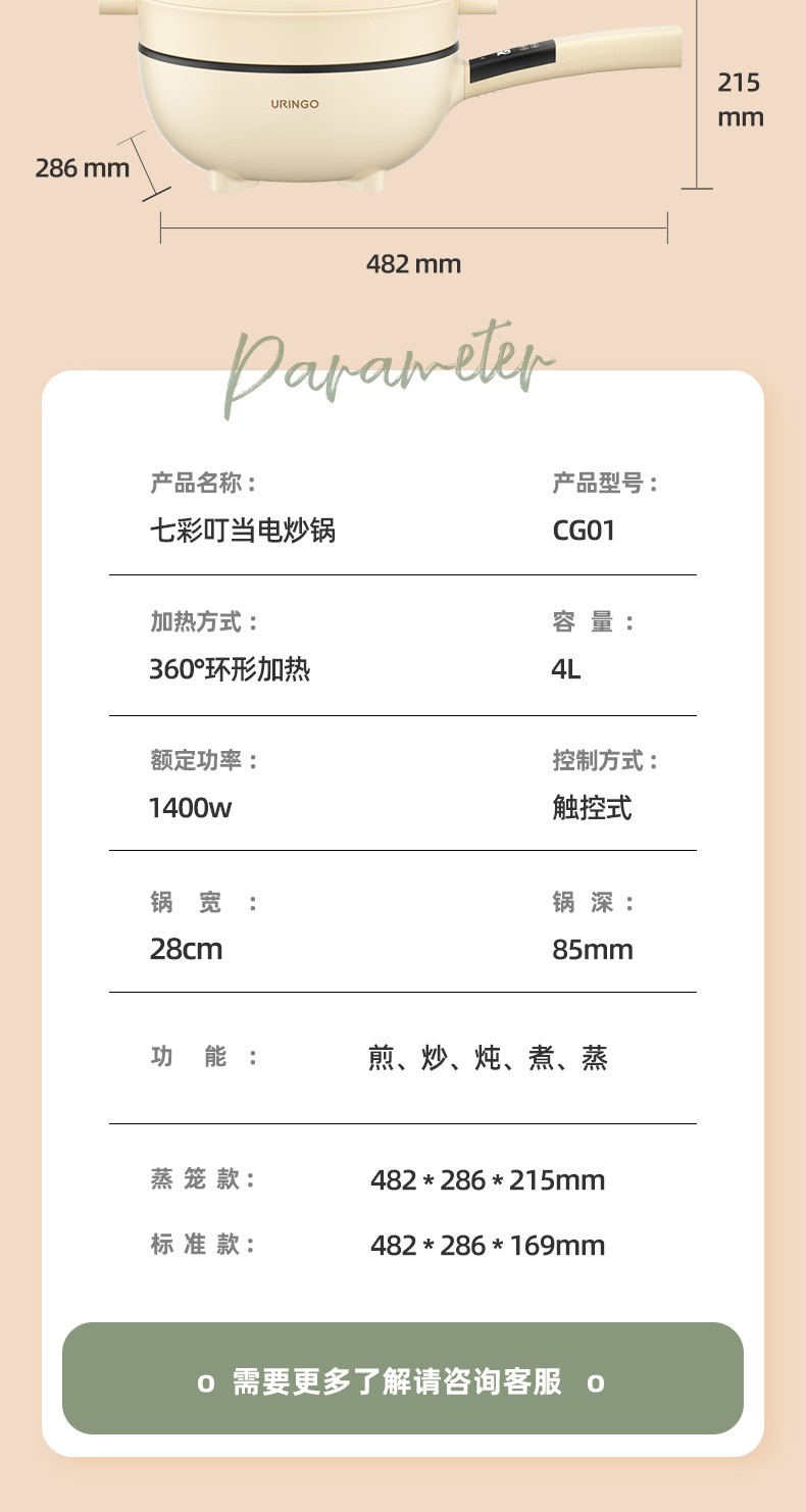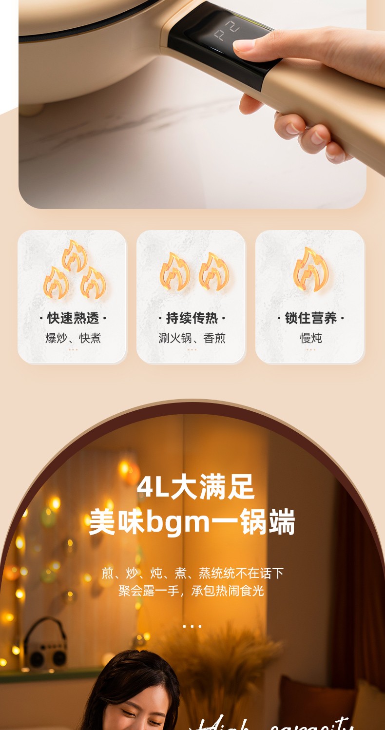 七彩叮当(QICAIDINGDANG)CG01电炒锅多功能电热锅电锅加厚电蒸锅电煮锅铸铁锅电火锅多用途锅 米黄色蒸笼款