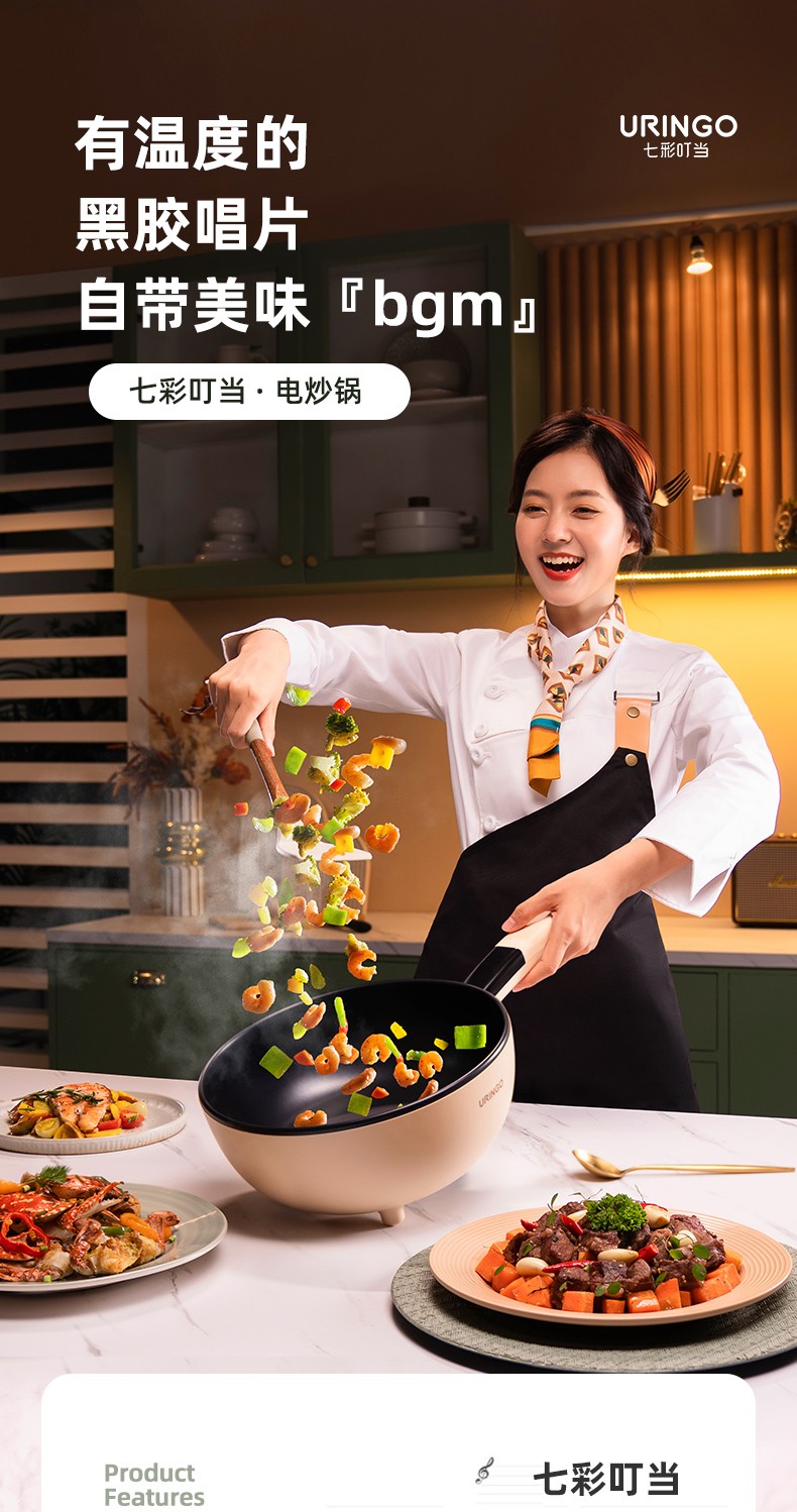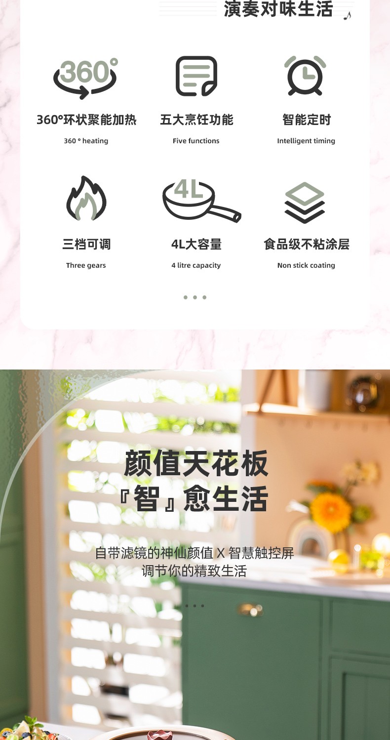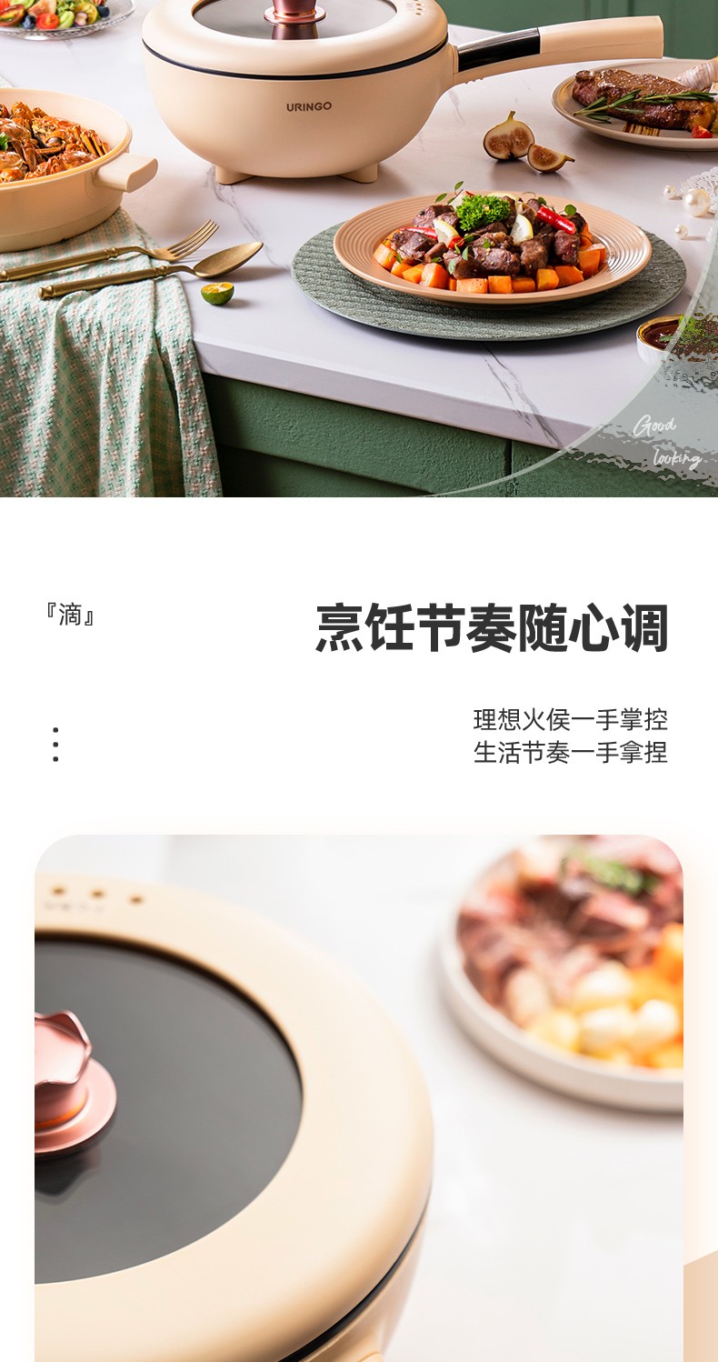 七彩叮当(QICAIDINGDANG)CG01电炒锅多功能电热锅电锅加厚电蒸锅电煮锅铸铁锅电火锅多用途锅 米黄色蒸笼款