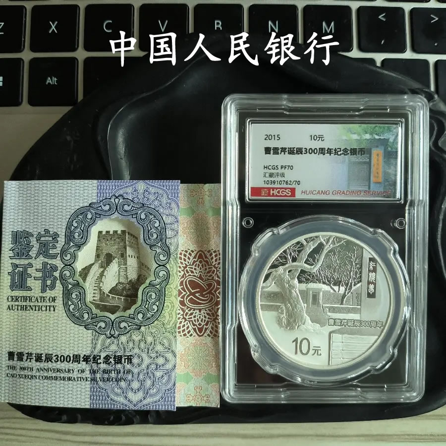 中国人民银行发行的曹雪芹诞辰300周年1盎司银币。
