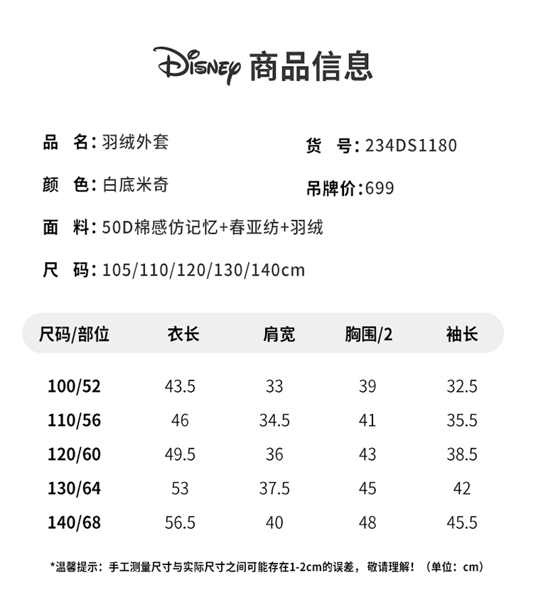 【商场同款】迪士尼男童羽绒外套234DS1180