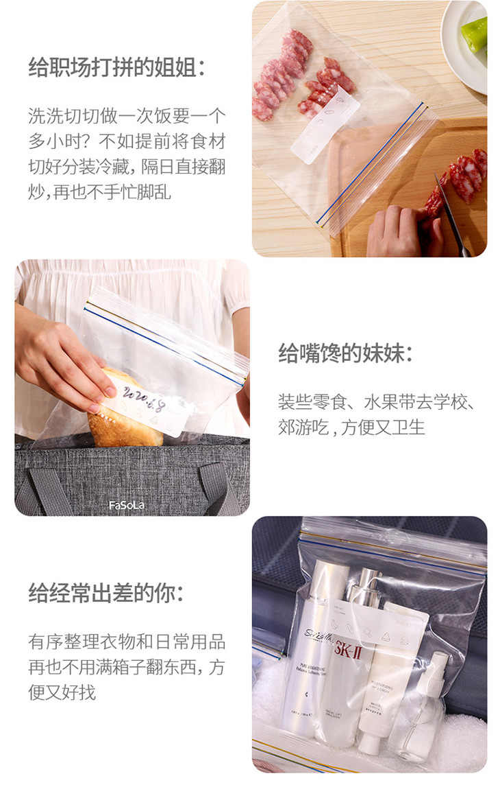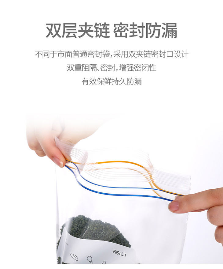 FaSoLa双层拉链式PE密实袋 双拉链密封 加厚水果食品冰箱保鲜袋