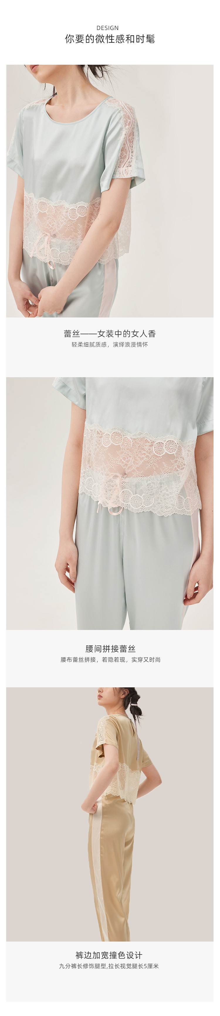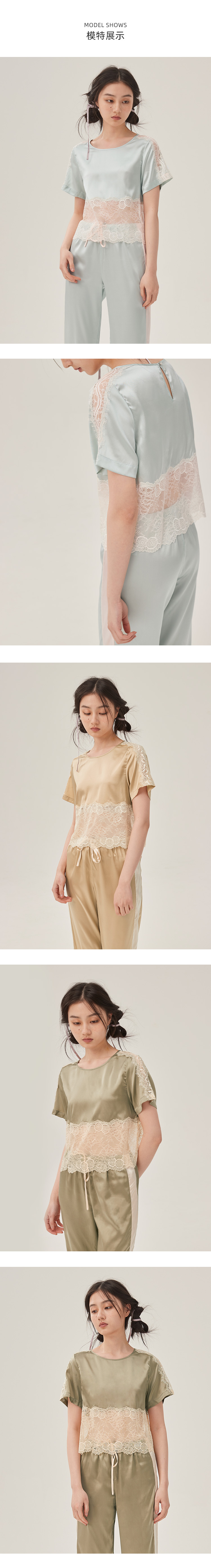 丝绸睡衣性感SLIK两件套装SANGLUO桑罗短袖长裤桑蚕丝家居服女 商品图3
