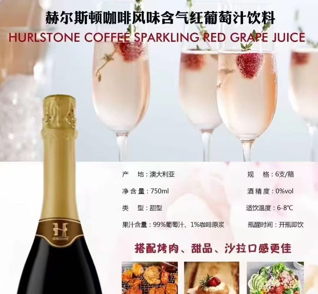 HURLSTONE赫尔斯顿零度含气红葡萄汁饮料澳洲进口无酒精葡萄汁0度起泡酒 赫尔斯顿0度咖啡味红葡萄汁