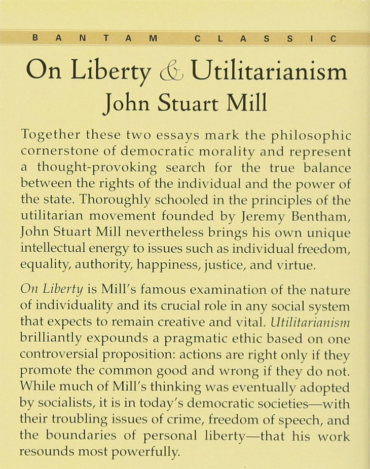 Together these two essays mark the philosophic cornerstone of democratic morality and represent a thought-provoking search for the true balance between the rights of the individual and the power of the state. Thoroughly schooled in the principles of the utilitarian movement founded by Jeremy Bentham, John Stuart Mill nevertheless brings his own unique intellectual energy to issues such as individual freedom, equality, authority, happiness, justice, and virtue.