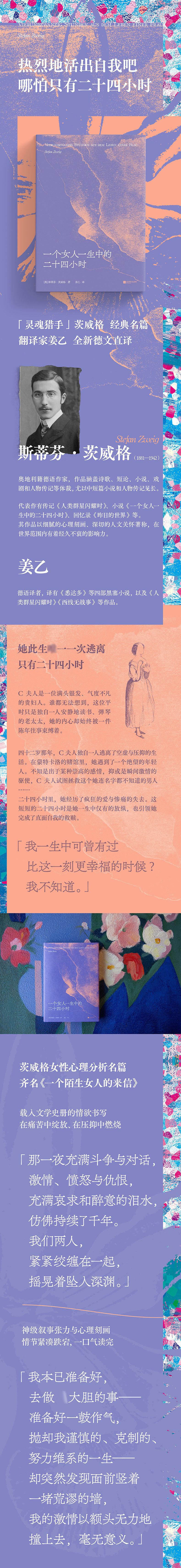 C夫人是一位满头银发、气度不凡的英国贵妇人。谁都无法想到,这位平时只是独自一人安静地读书、弹琴的老太太,她的内心却始终被一件陈年往事束缚着。 在四十二岁那年,C夫人独自一人逃离了空虚与压抑的生活。在蒙特卡洛的赌馆里,她遇到了一个失魂落魄的年轻人。他输光了全部财产,正绝望地准备走向死亡。不知是出于某种崇高的感情,抑或是瞬间激情的驱使,C夫人试图拯救这个她连名字都不知道的男人……二十四小时里,她经历了疯狂的爱与惨痛的失去。这短短的二十四小时是她一生中少有的放纵,也引领她完成了直面自我的救赎。 《一个女人一生中的二十四小时》是奥地利知名作家斯蒂芬·茨威格撰写的中篇小说,也是一部与《一个陌生女人的来信》齐名的经典名篇。