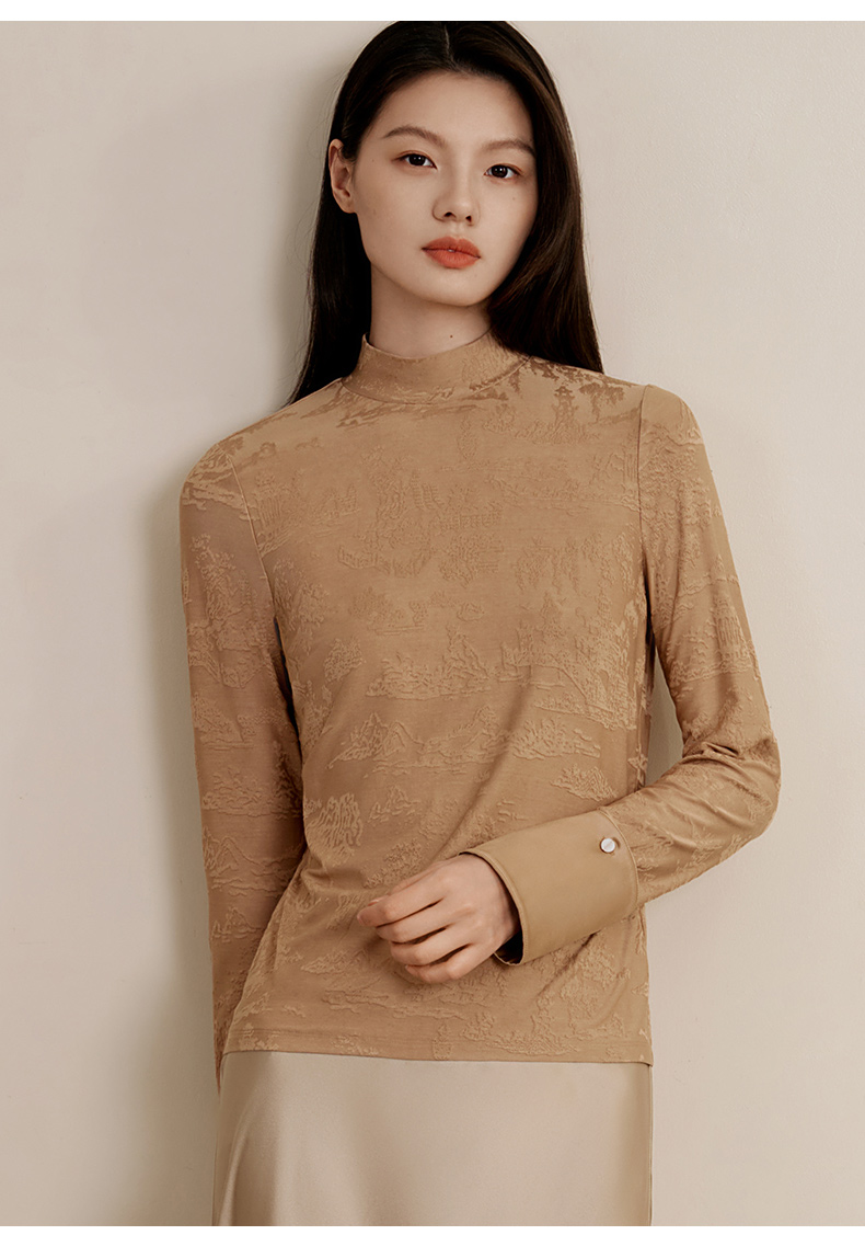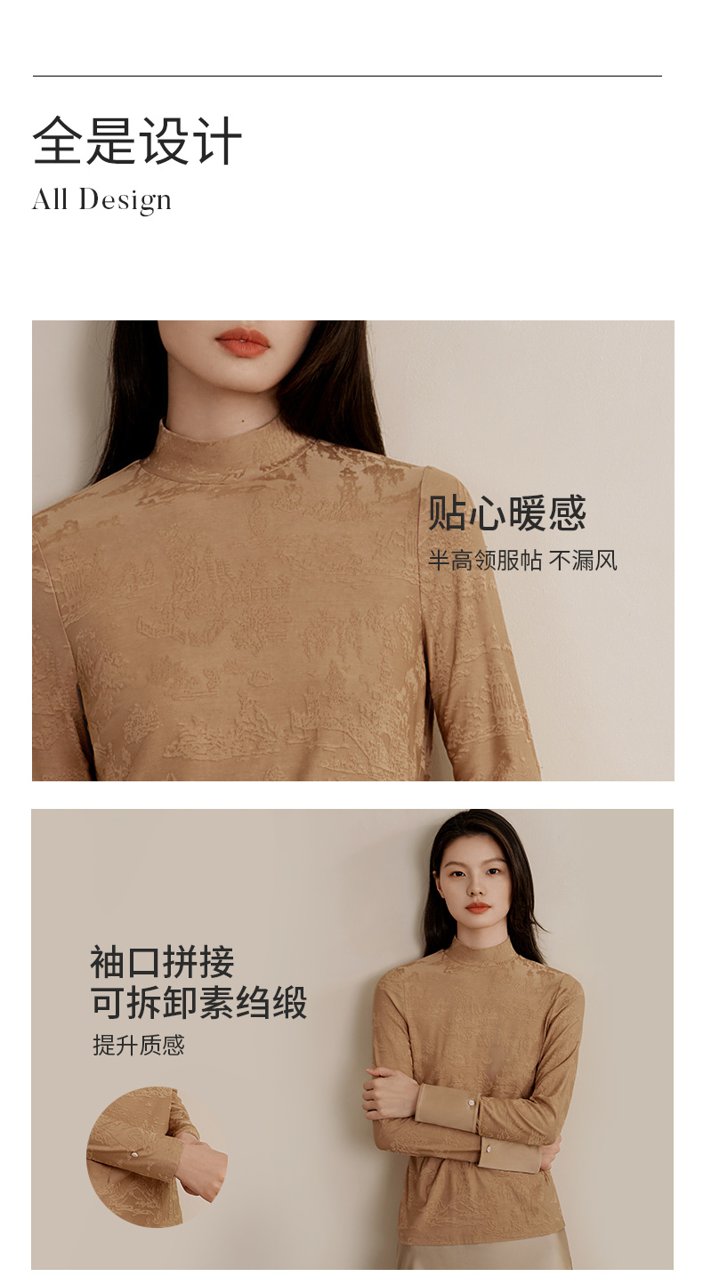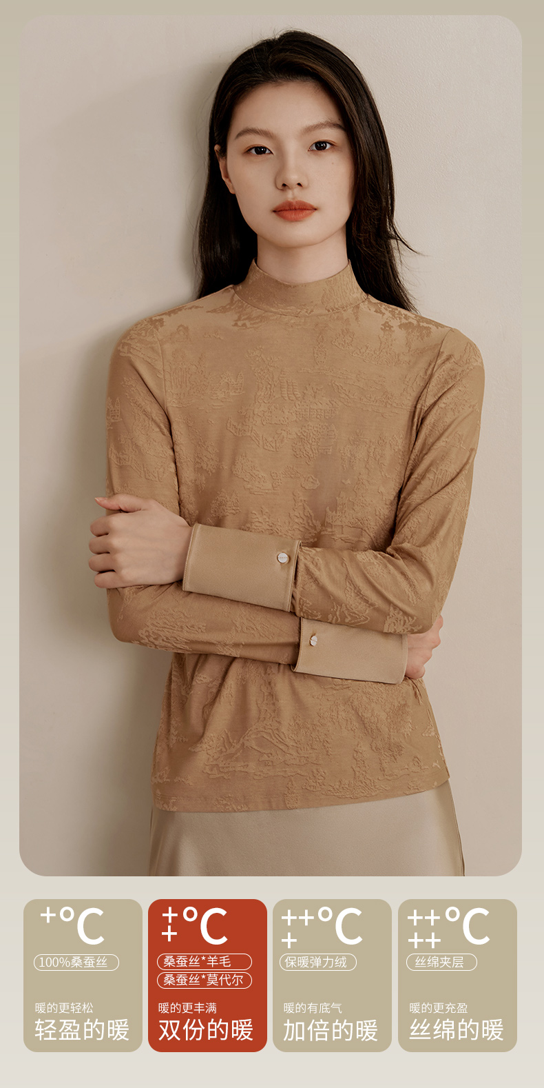 金三塔桑蚕丝提花打底衫女新中式亲肤温暖透气打底秋冬保暖上衣女 NZFFD723