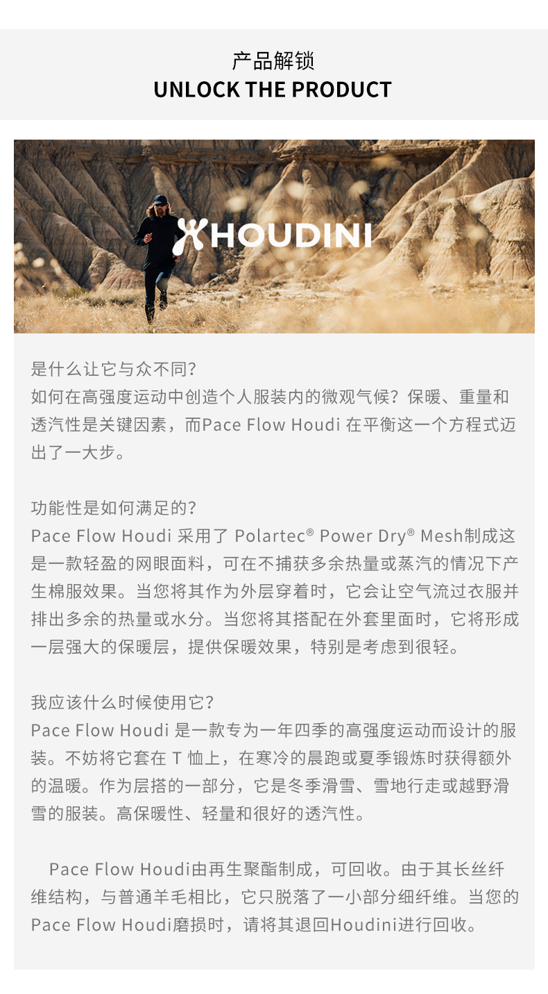 HOUDINI胡丁尼 Pace Flow 疾速 户外保暖系列疾速男款抓绒衣 830011