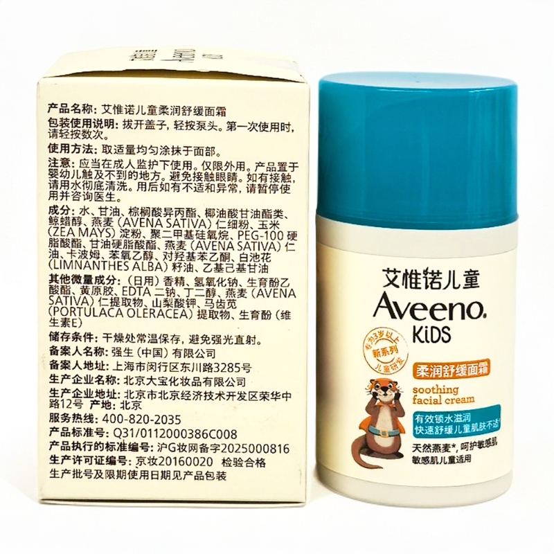【1:1送水凝霜10g】Aveeno艾惟诺儿童柔润舒缓面霜 50g