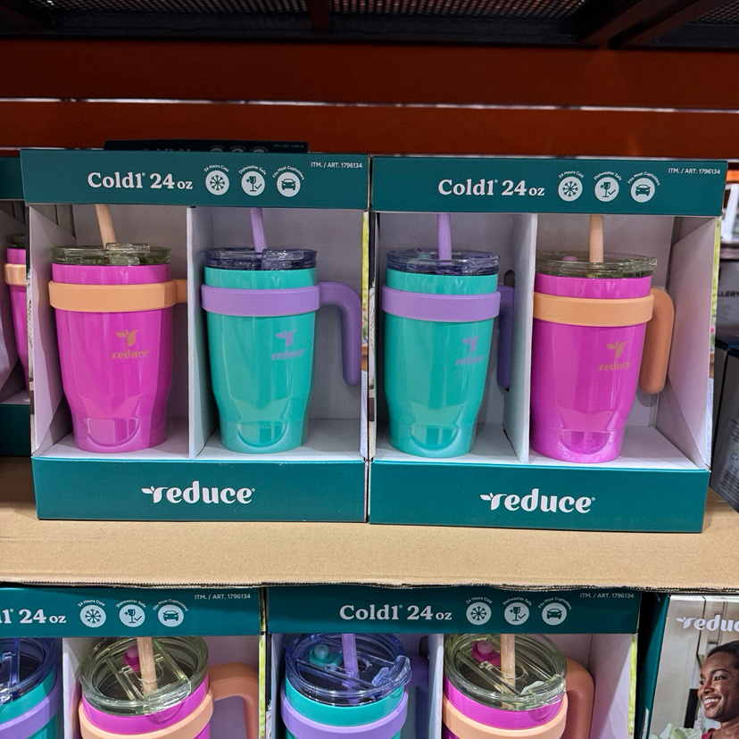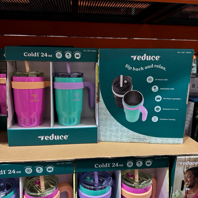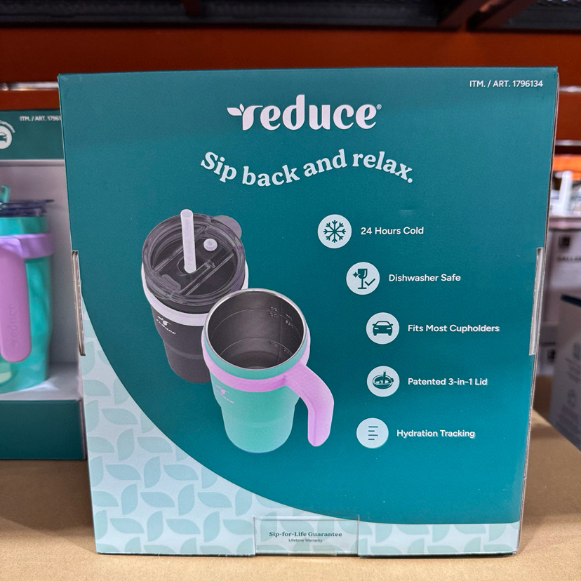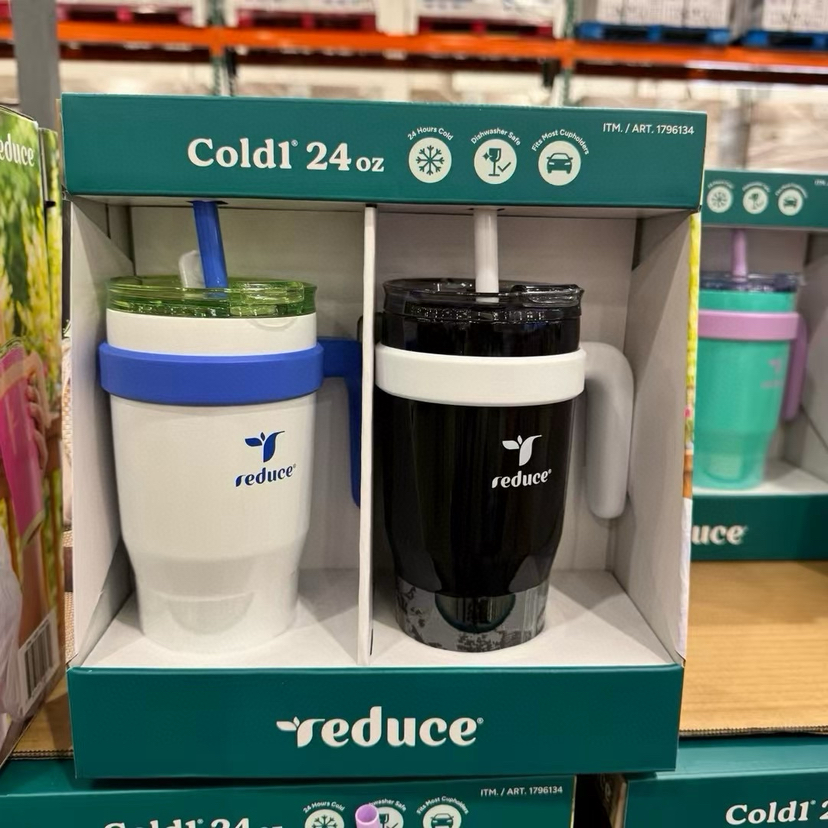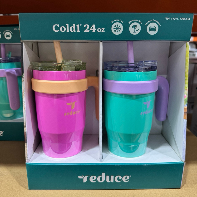 Reduce宽口带手柄吸管水杯,美国🇺🇸直邮特价240元🉐一套710ml*2只装。这款太好用啦,儿童和大人也可以用,用来喝温水很适合,把手和防漏吸管设计很方便,颜色也超好看呀[偷笑]防漏水设计,吸管是不会漏的,而且吸管可拆除变直饮杯,保冷有24小时,因可以阻止缓慢碳化作用可以更好的保持杯子里饮品的新鲜度⚡️非常耐用还防侧漏💕这款水杯非常适合露营,去海滩,体能训练或野餐时使用。