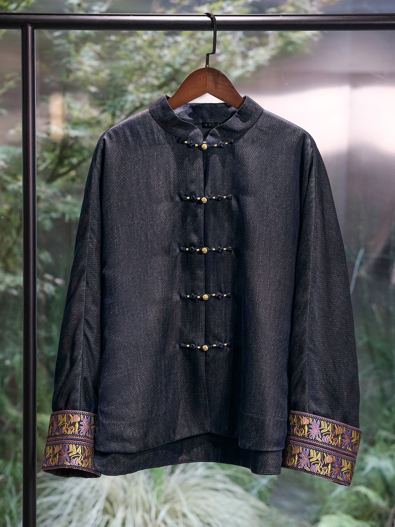 盛唐婧 | 梦华牛仔重缎香云纱对襟夹棉外套