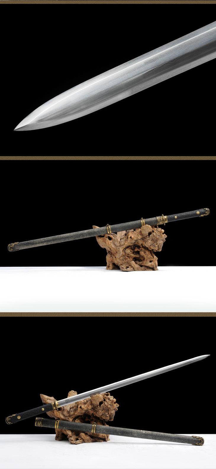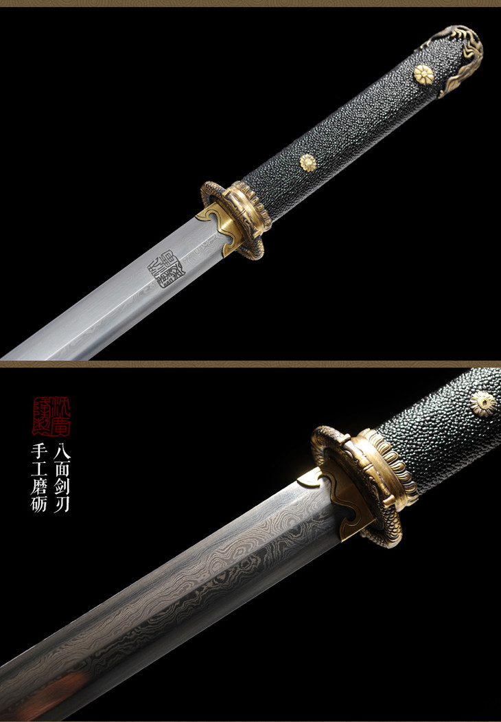 忠义唐剑 花纹钢一体剑 手工传统宝剑 八面刃龙泉沈广隆剑 工艺品 未开刃