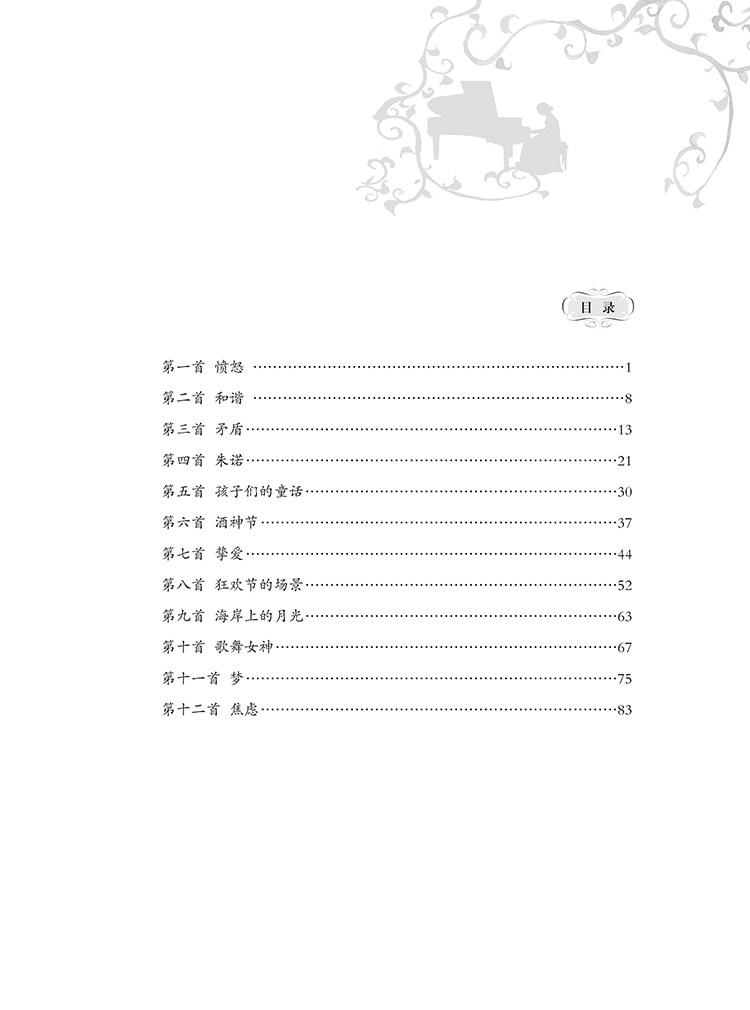 沈阳音乐学院李依桐老师对书中所选的12首乐曲均作了详细的演奏分析,能帮助演奏者了解这两套作品的技术特点和风格特征,以便在演奏中能够更准确地把握作品。同时笔者还结合了自身的经验对这部练习曲提出了一些演奏观点,希望通过对莫谢莱斯练习曲的研习,可以使学生在着重于训练手指技巧的同时,兼顾对音乐情绪的把握,在进行全面技巧训练的同时,得到技术到音乐表现力的提升。