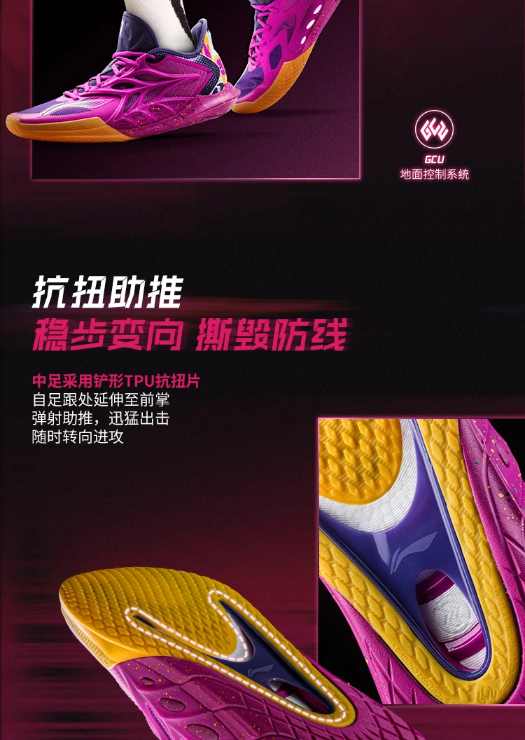 李宁宝可梦联名系列闪击12 耿鬼 贴地启动 薄底快靴 男子篮球专业比赛鞋ABAV069