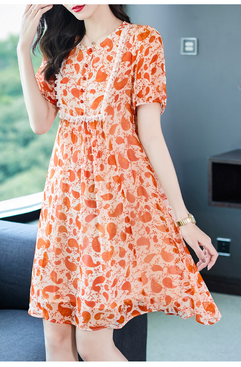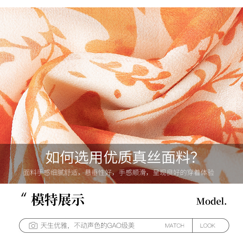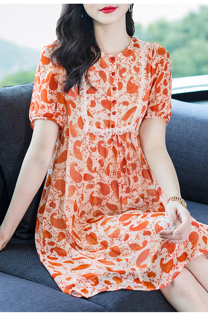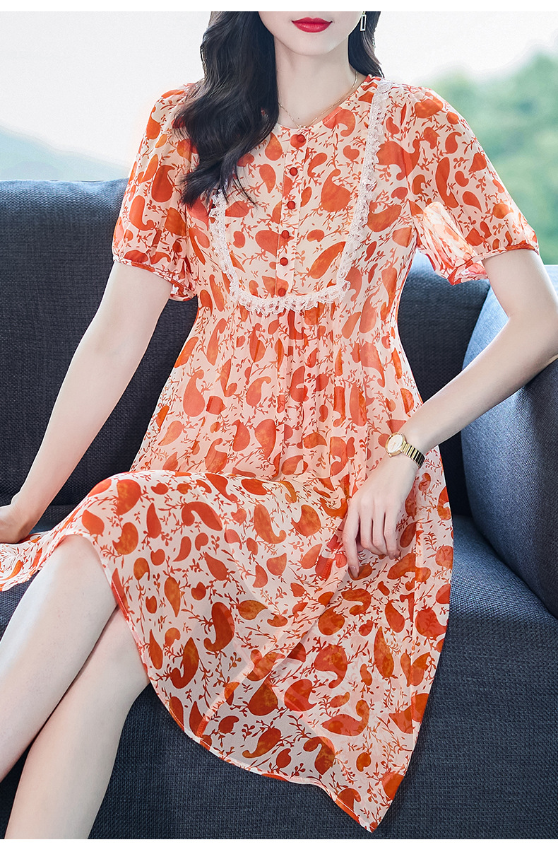 WWM-46705碎花裙46705蕾丝花边高腰显瘦真丝桑蚕丝连衣裙女夏