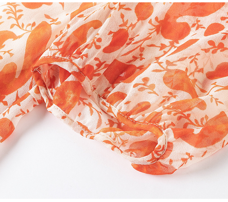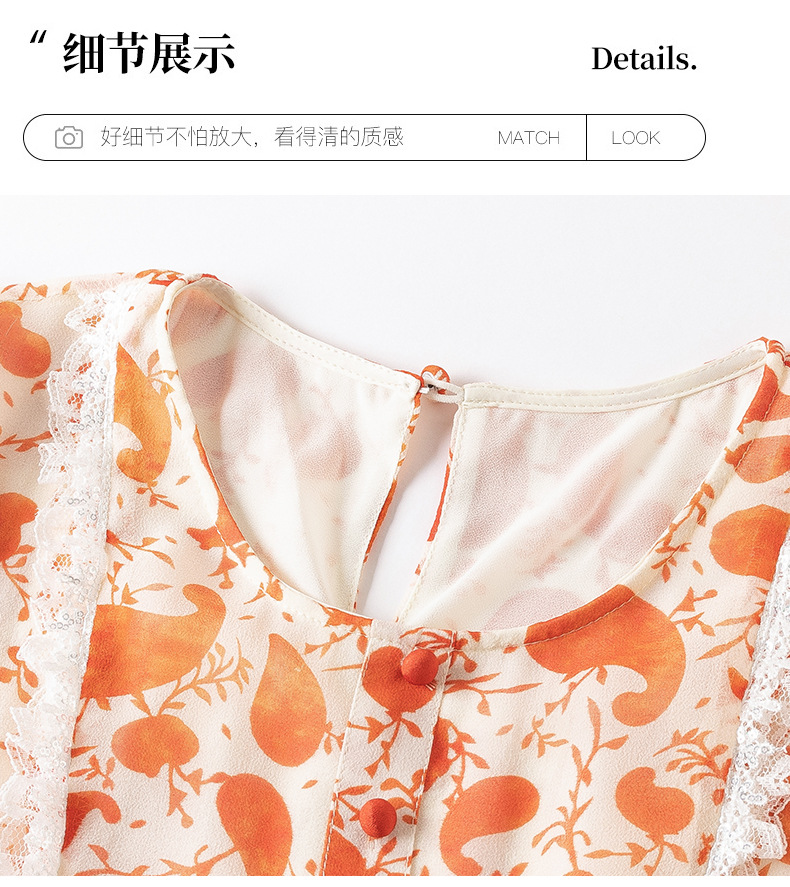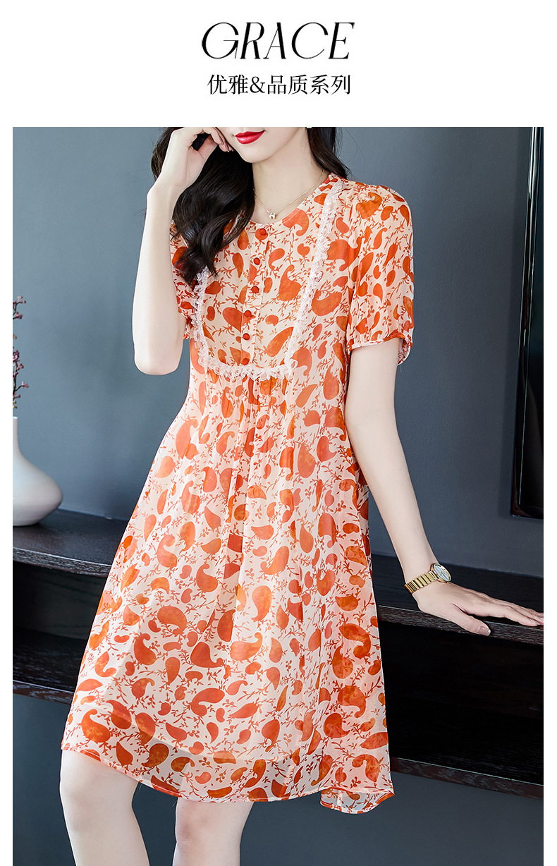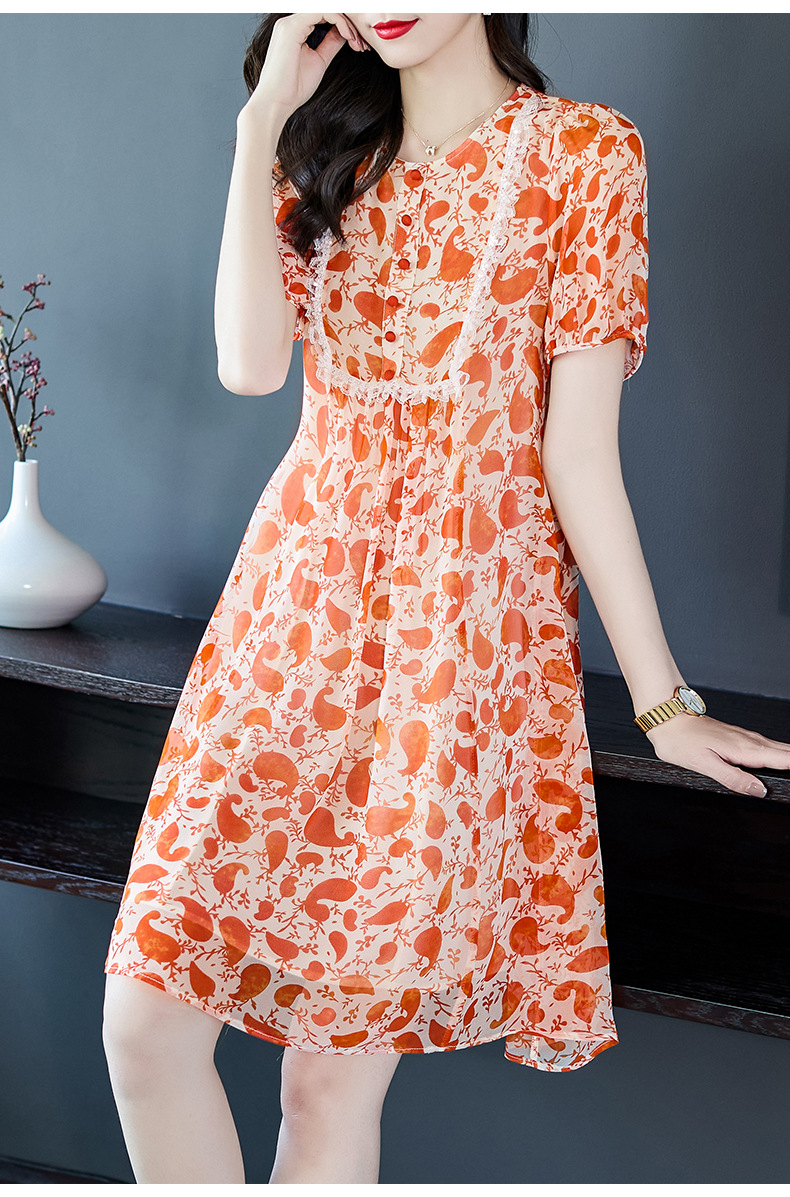 WWM-46705碎花裙46705蕾丝花边高腰显瘦真丝桑蚕丝连衣裙女夏