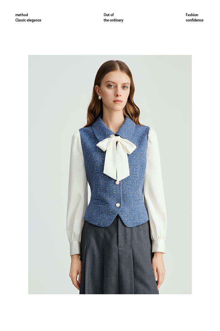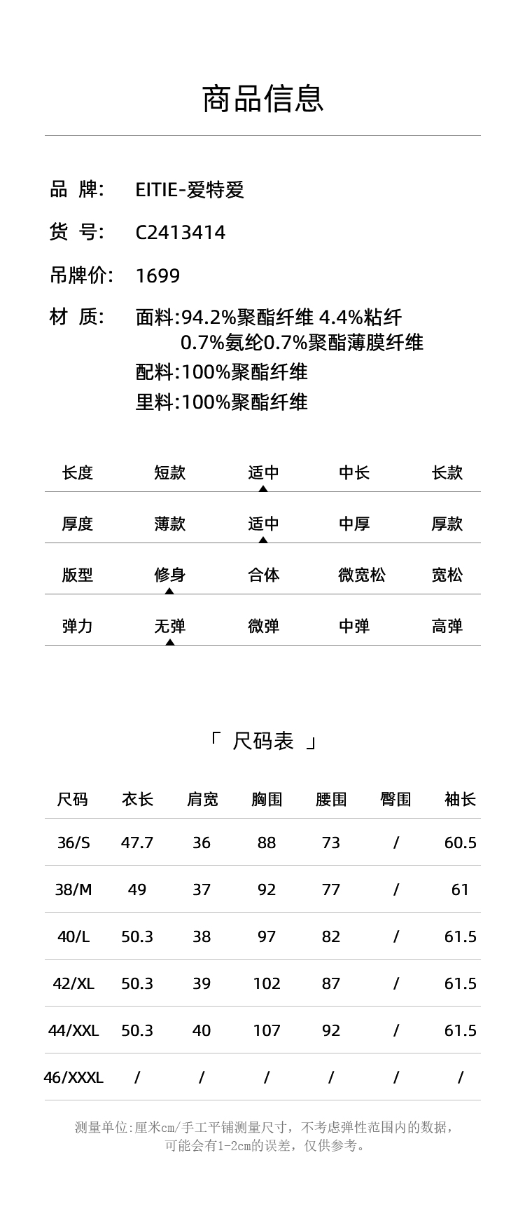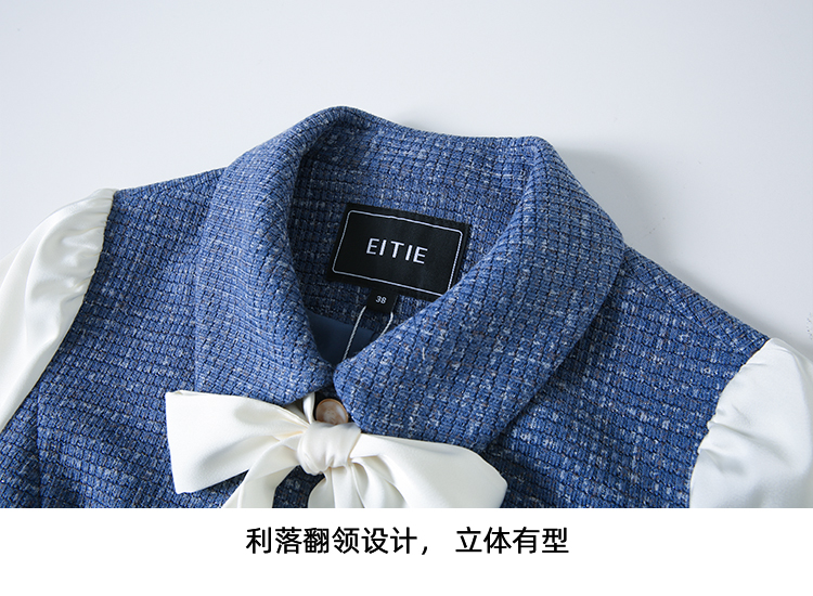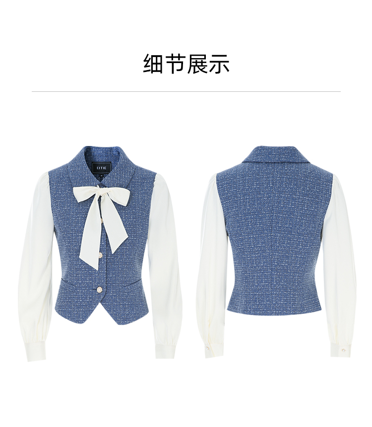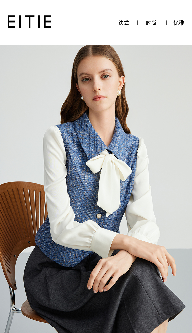 EITIE爱特爱复古假两件飘带翻领收腰显瘦气质香风小上衣新款C2413414