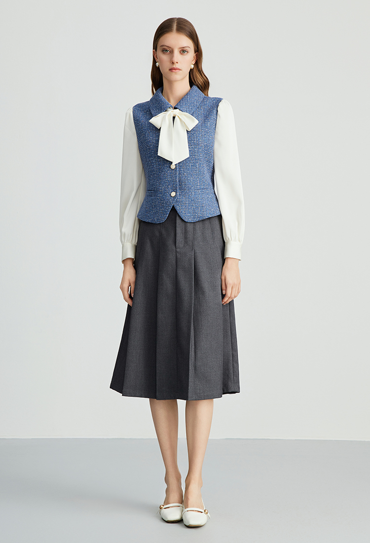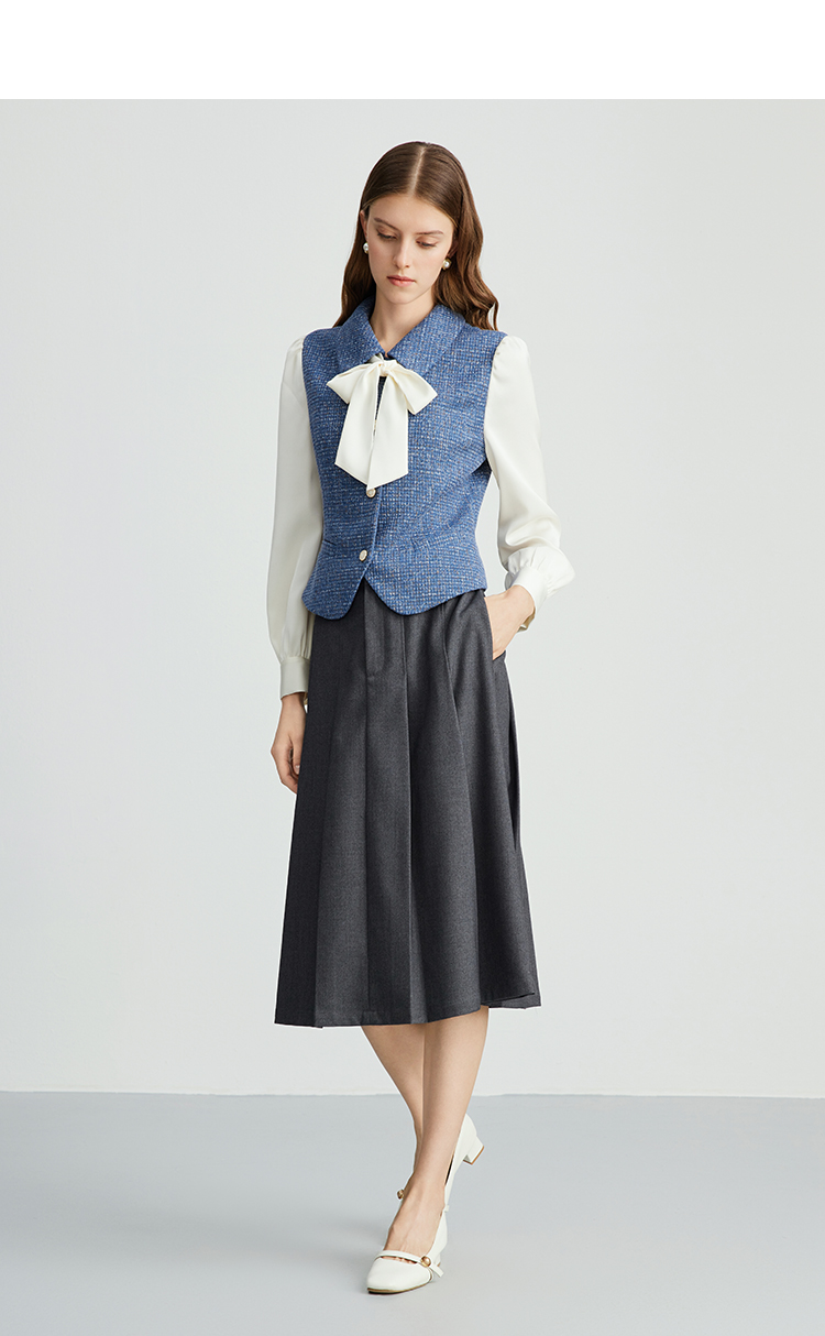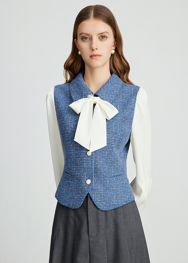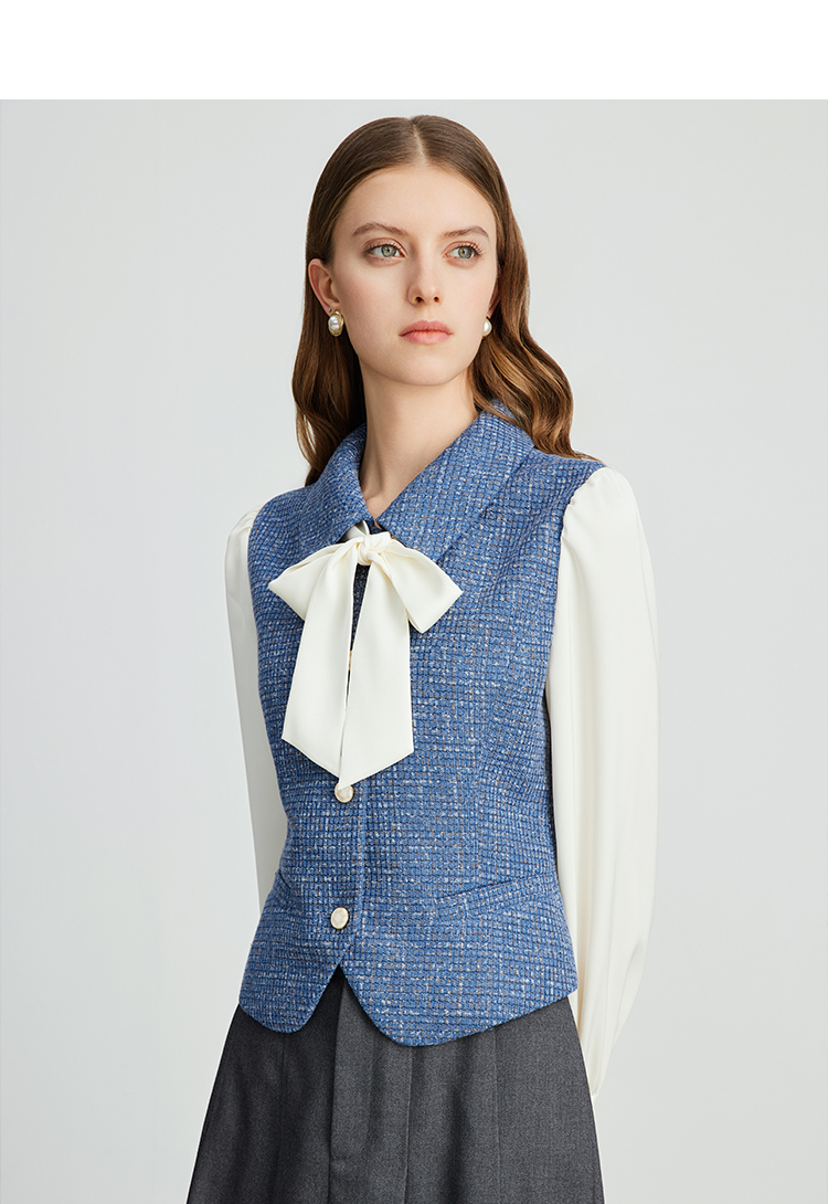 EITIE爱特爱复古假两件飘带翻领收腰显瘦气质香风小上衣新款C2413414